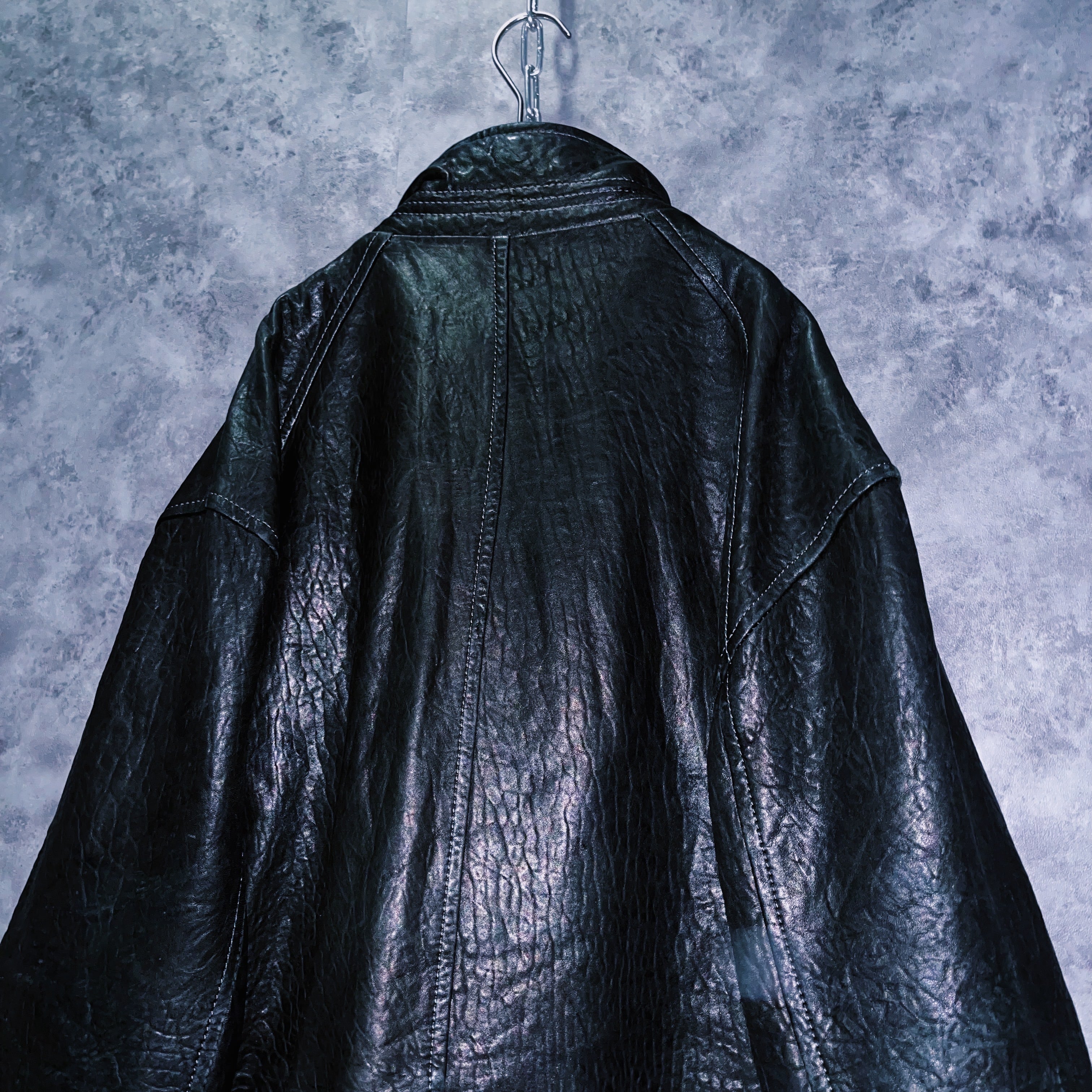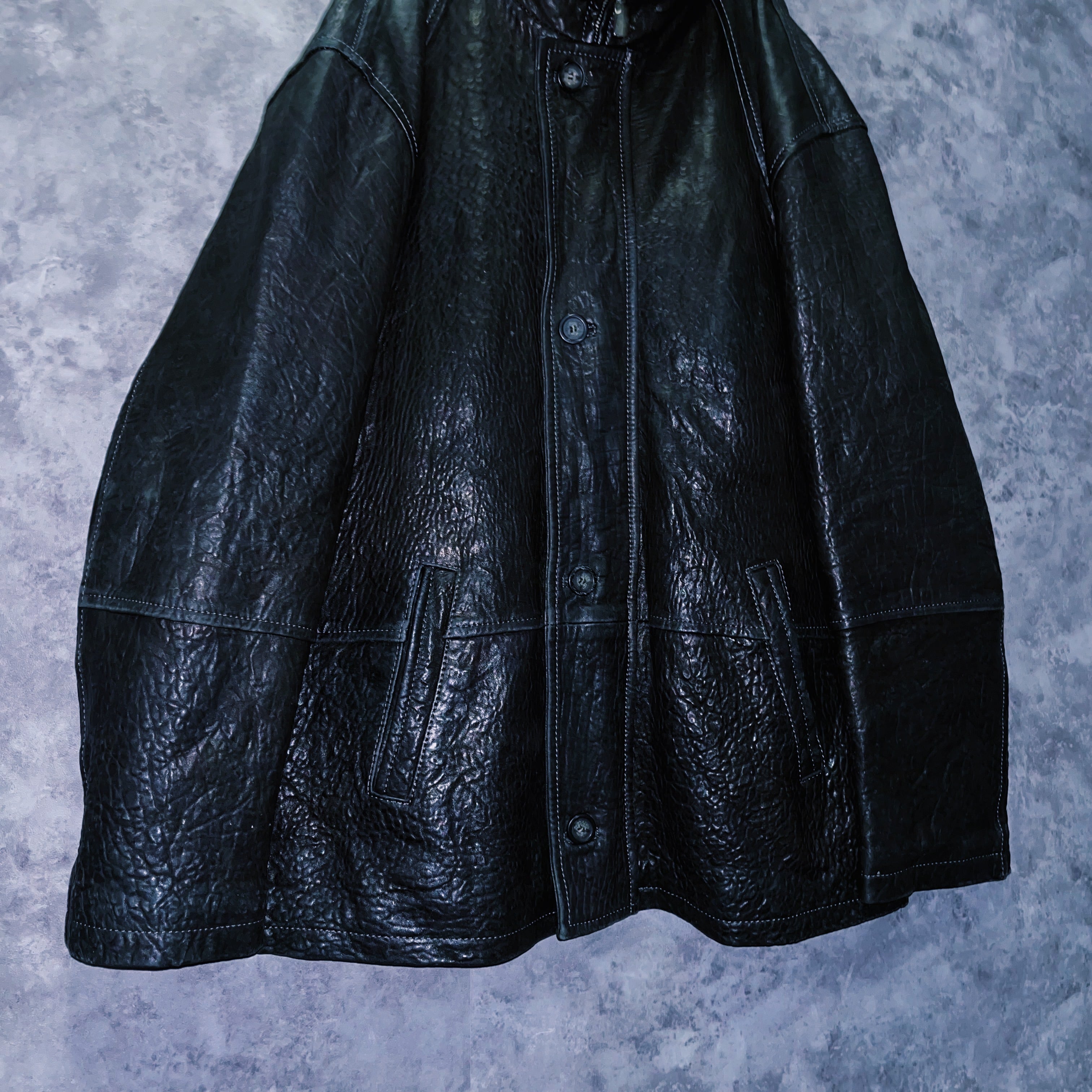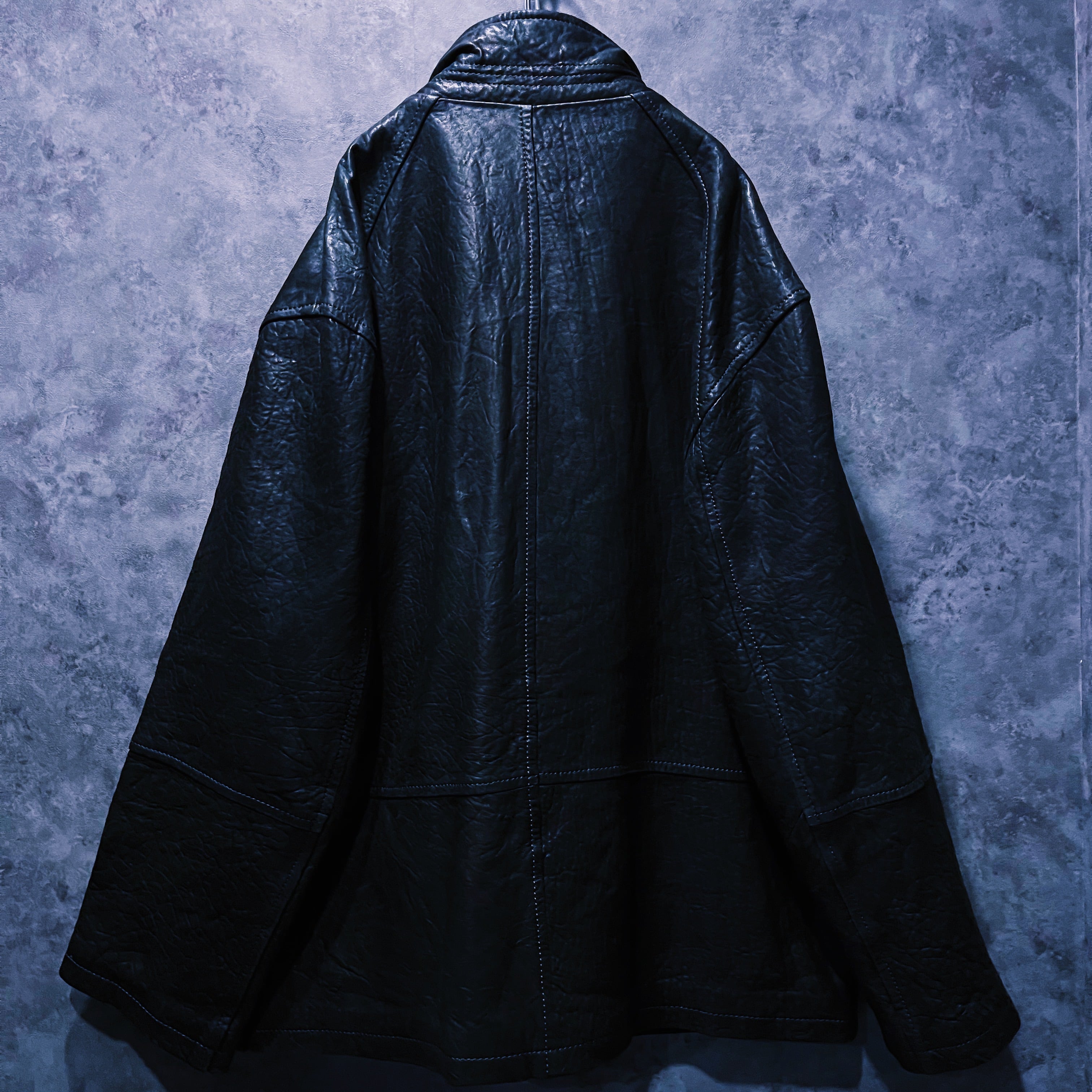 ヴィンテージブルレザークアトロボタンシングルブレストルーズジャケット