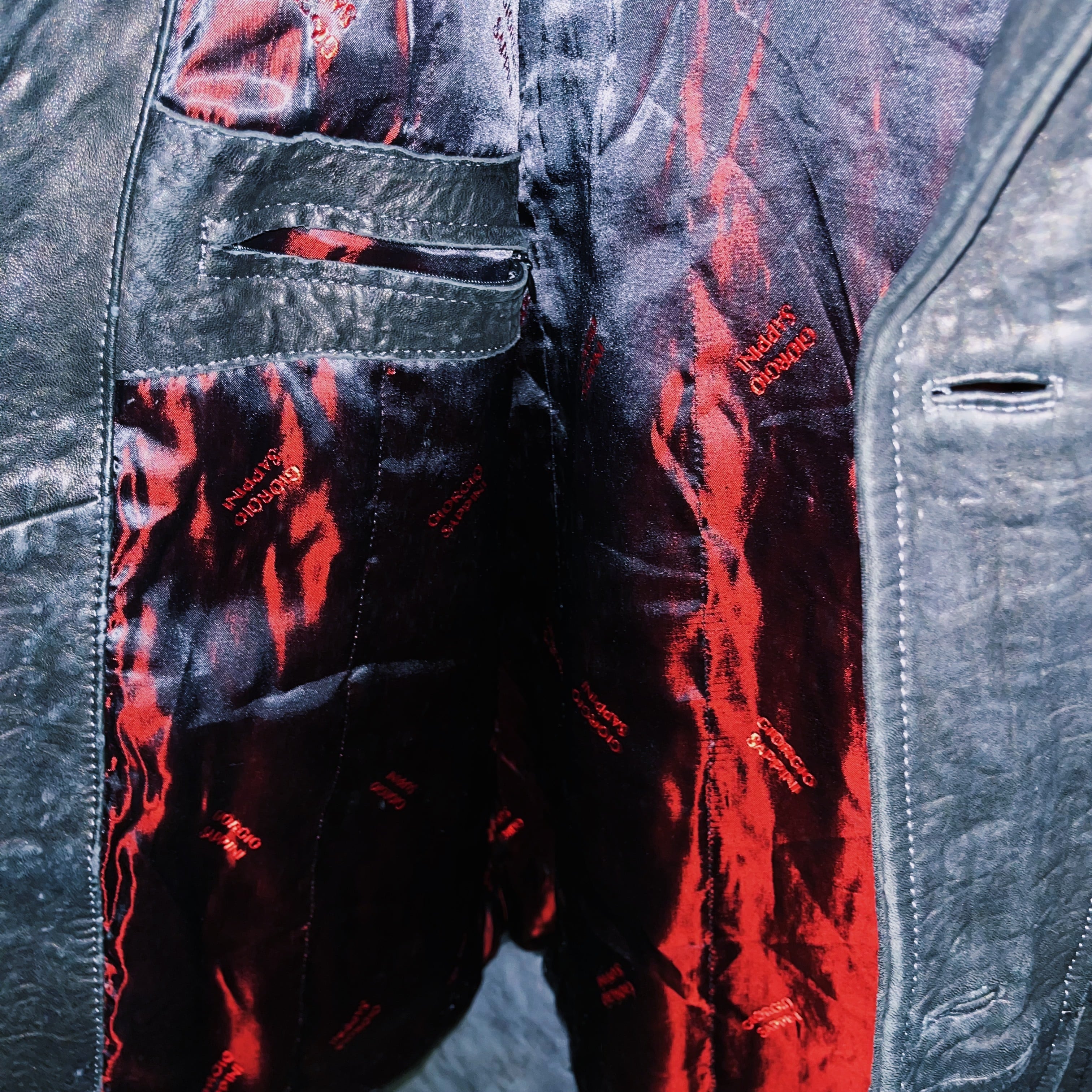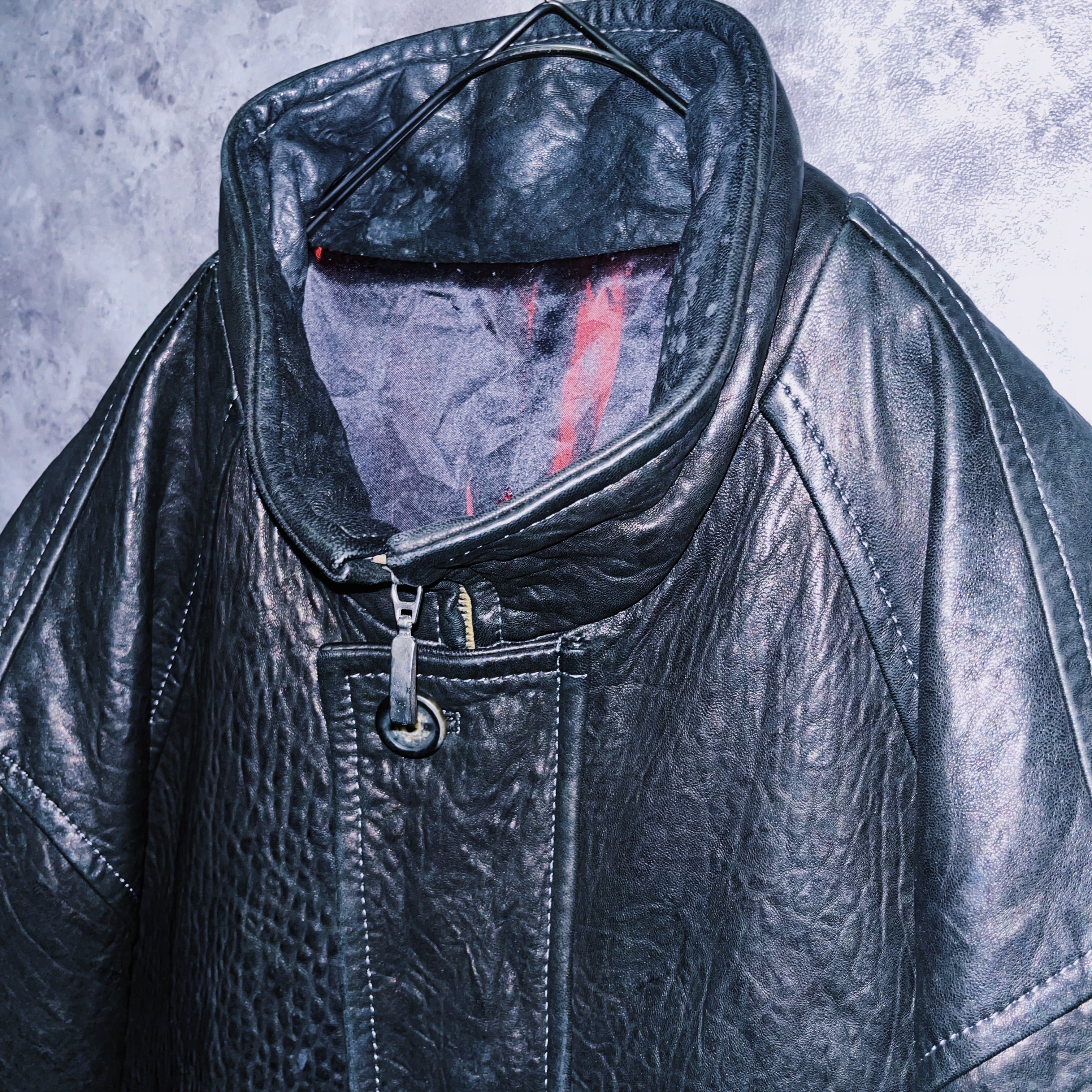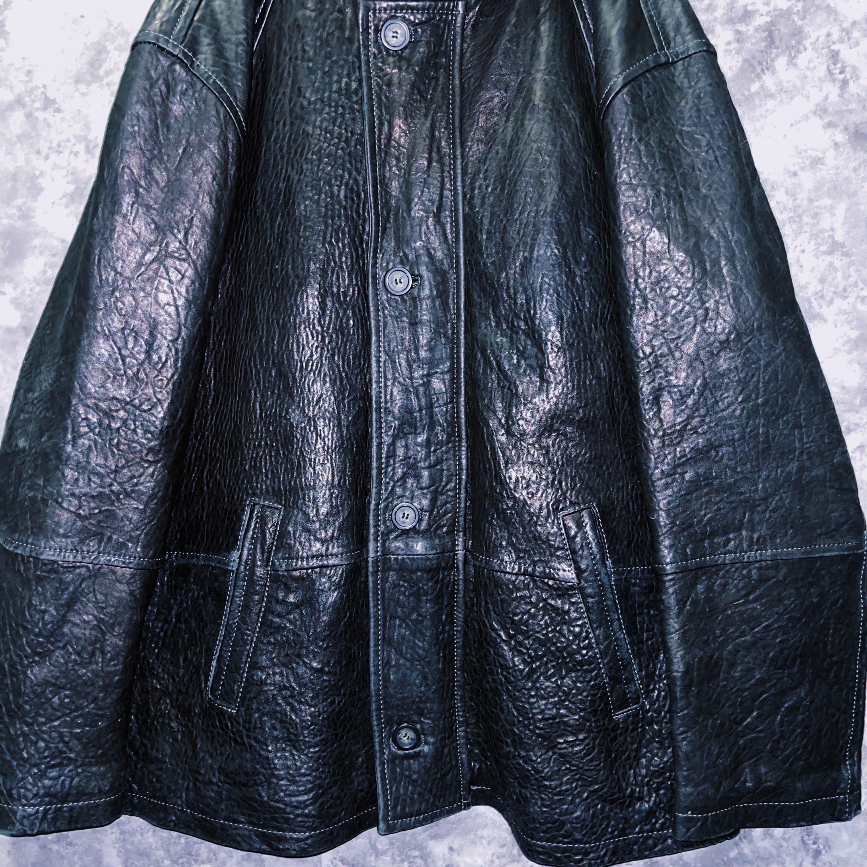 ヴィンテージブルレザークアトロボタンシングルブレストルーズジャケット