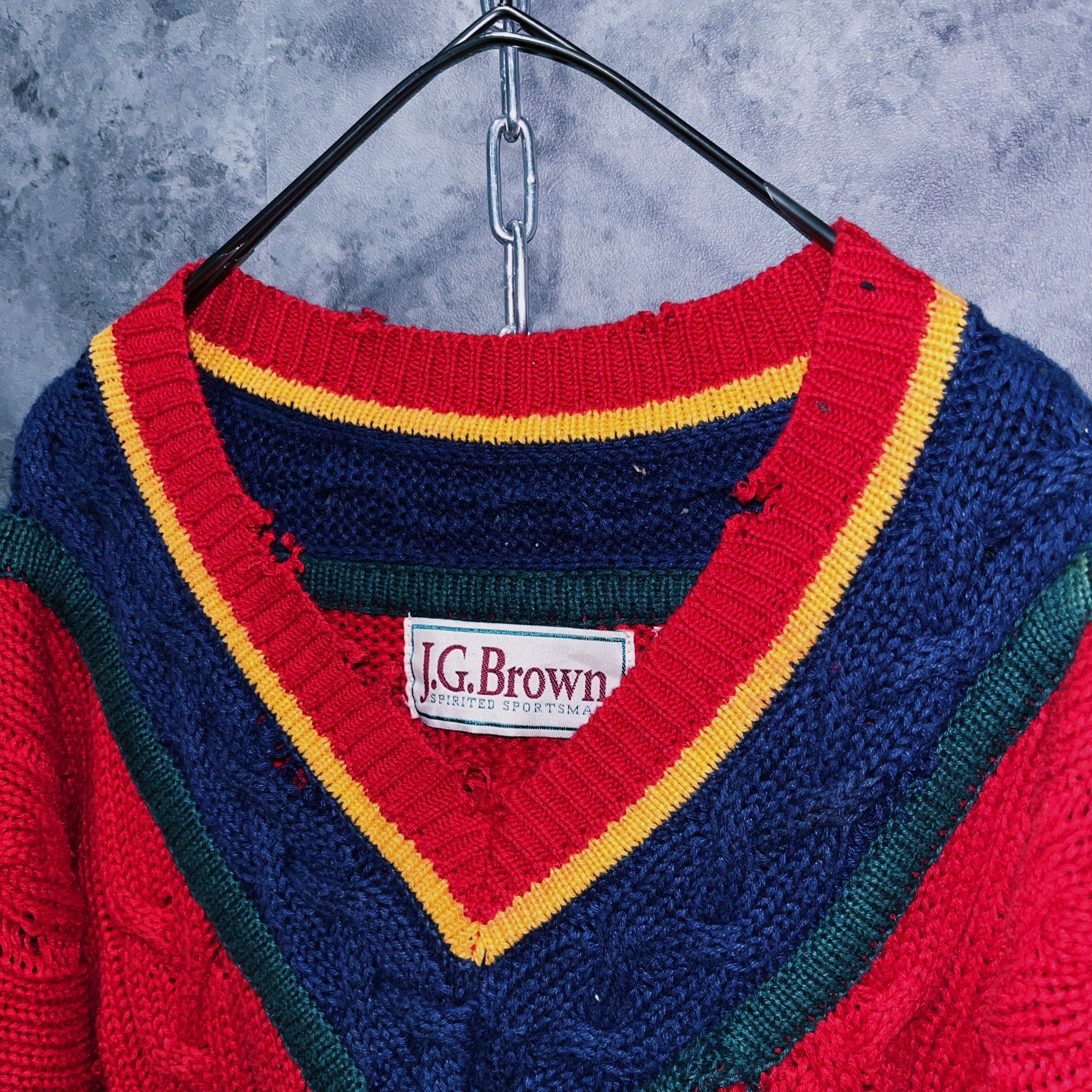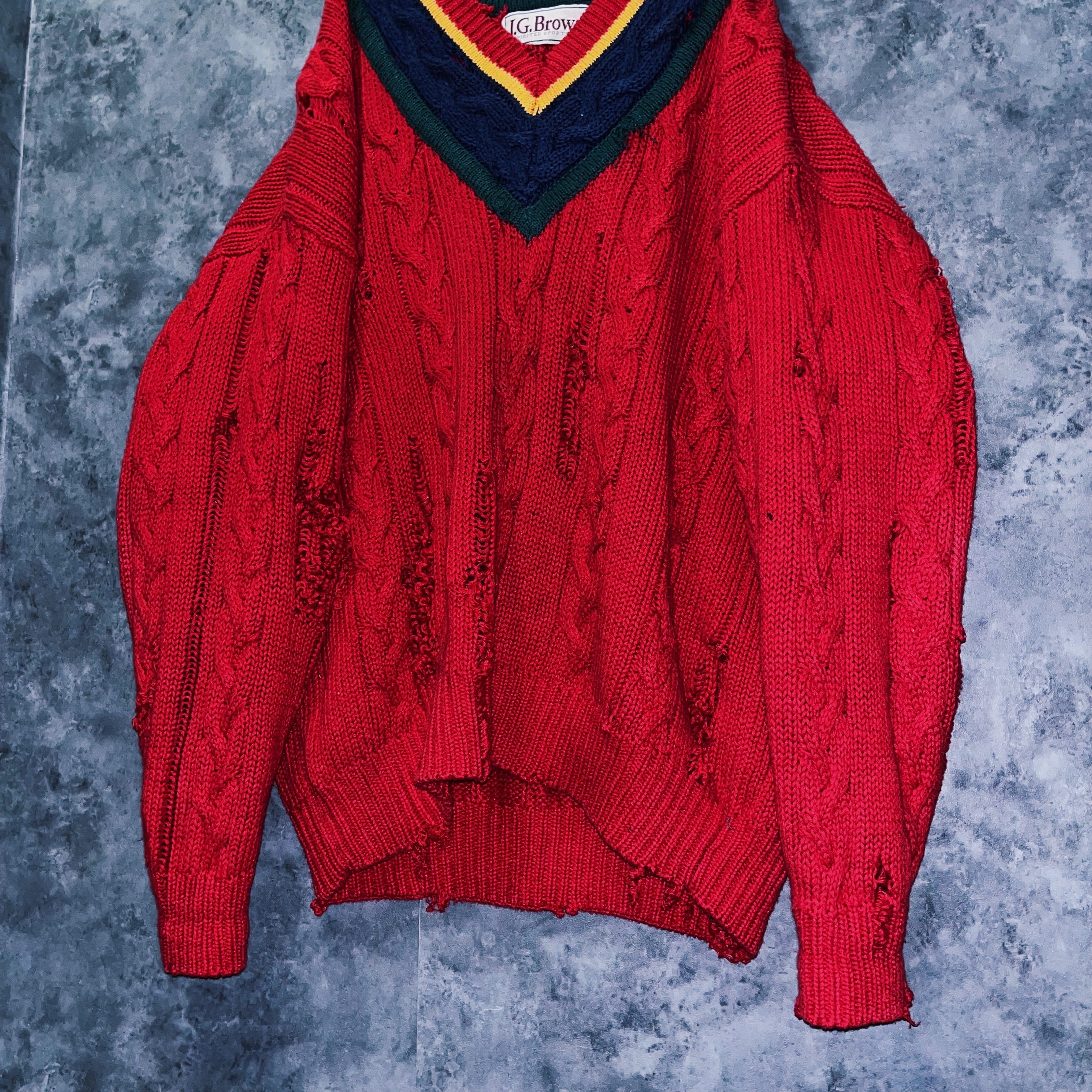 ヴィンテージスイッチングカラーデザインボロカスタムケーブルニットプルオーバー