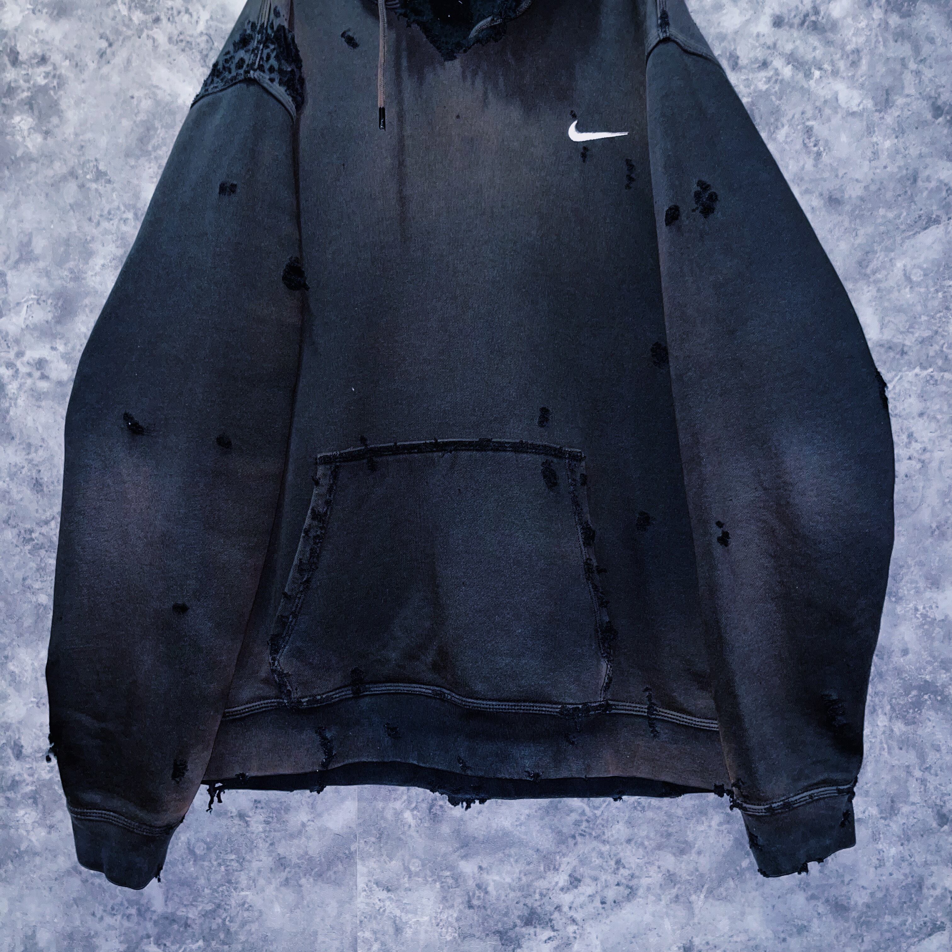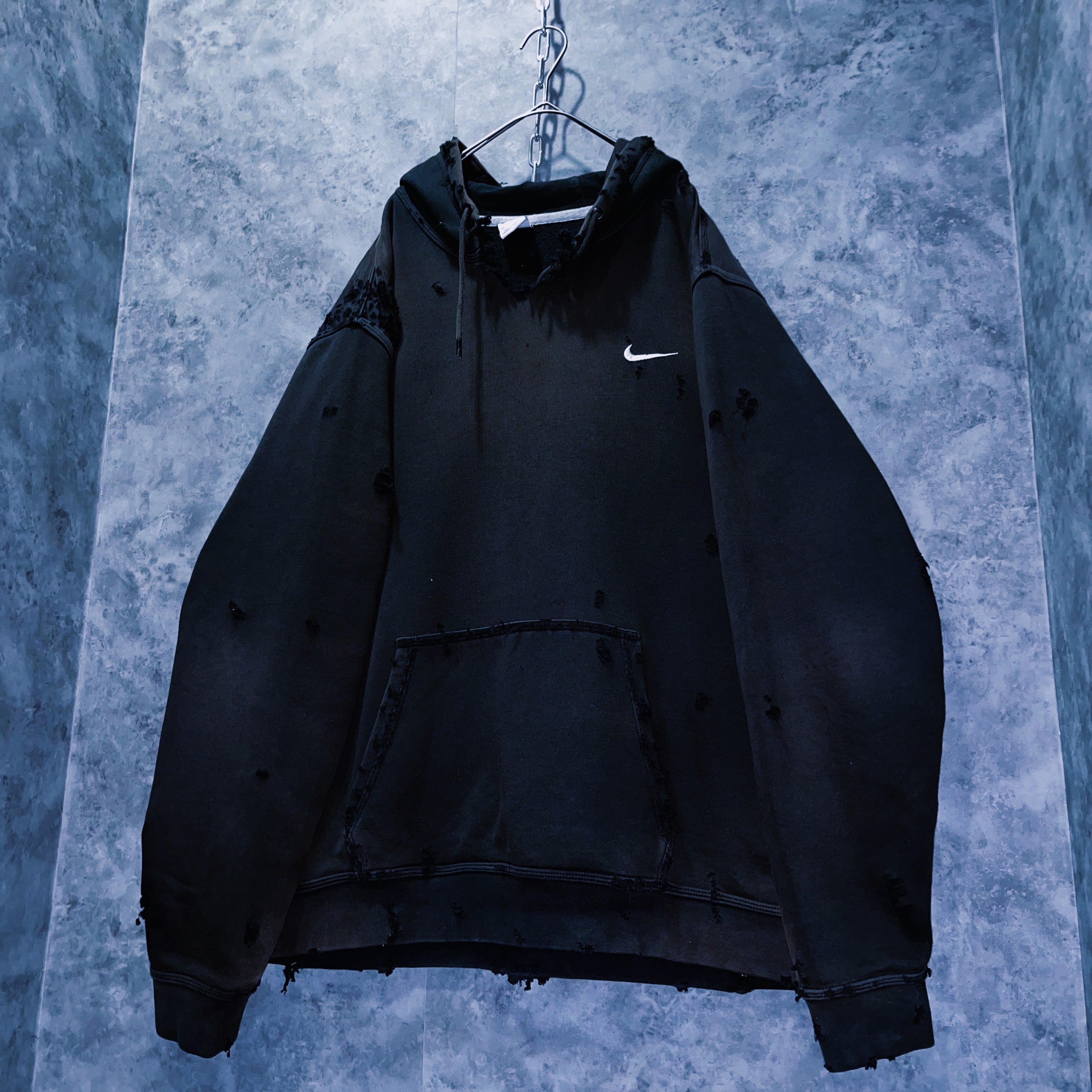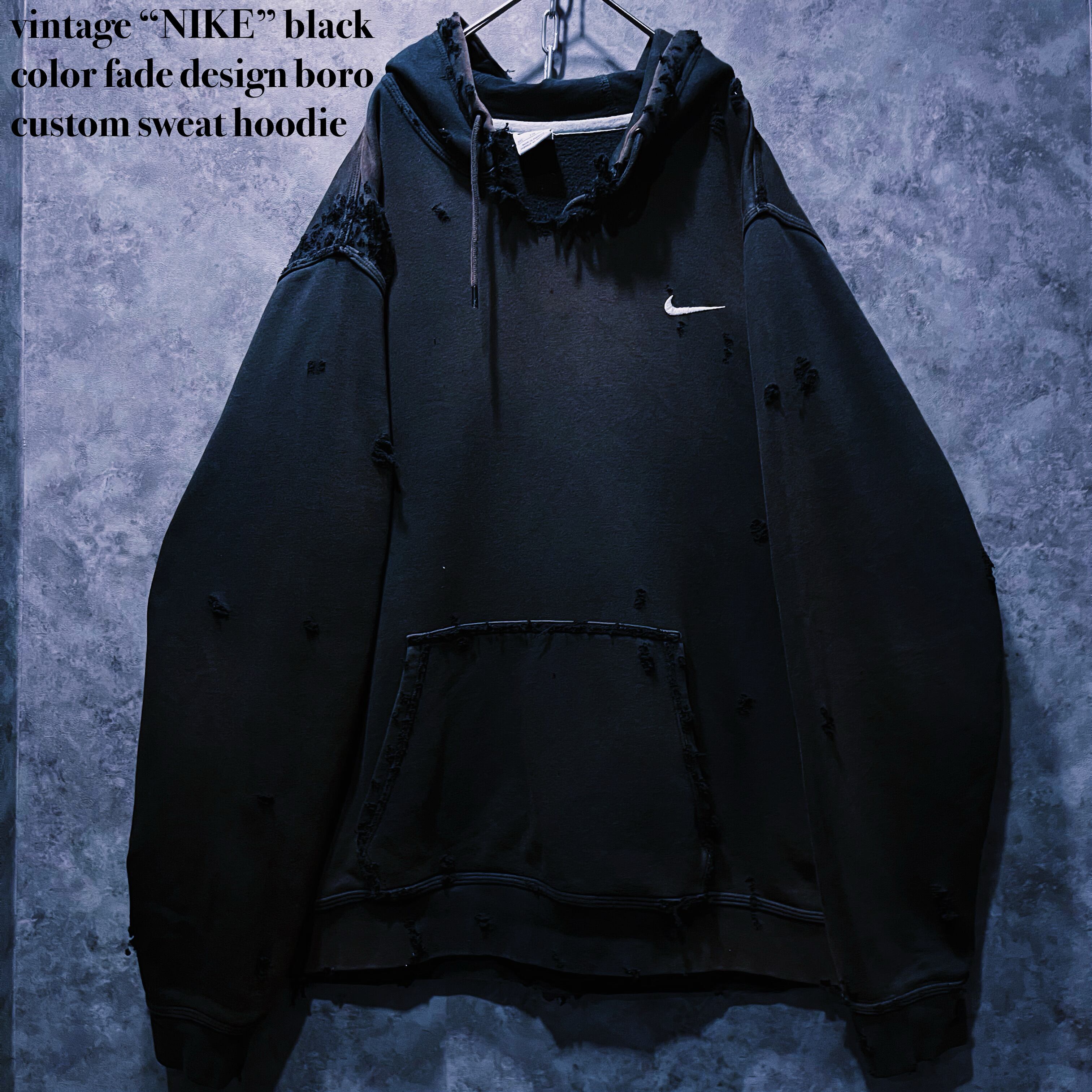 ヴィンテージ“NIKE”ブラックカラーフェードデザインボロカスタムスウェットフーディ