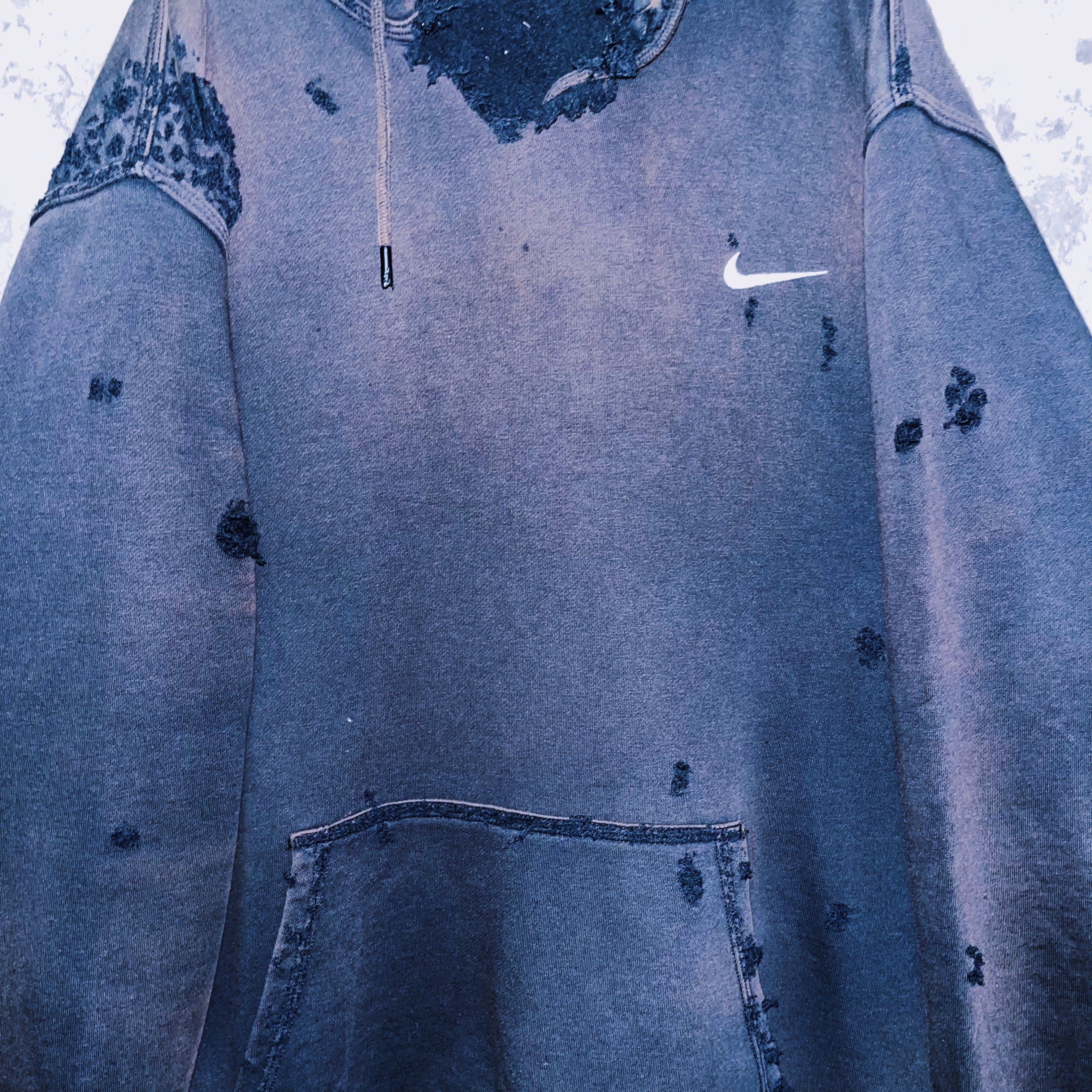 vintage “NIKE” black color fade design boro custom sweat hoodie