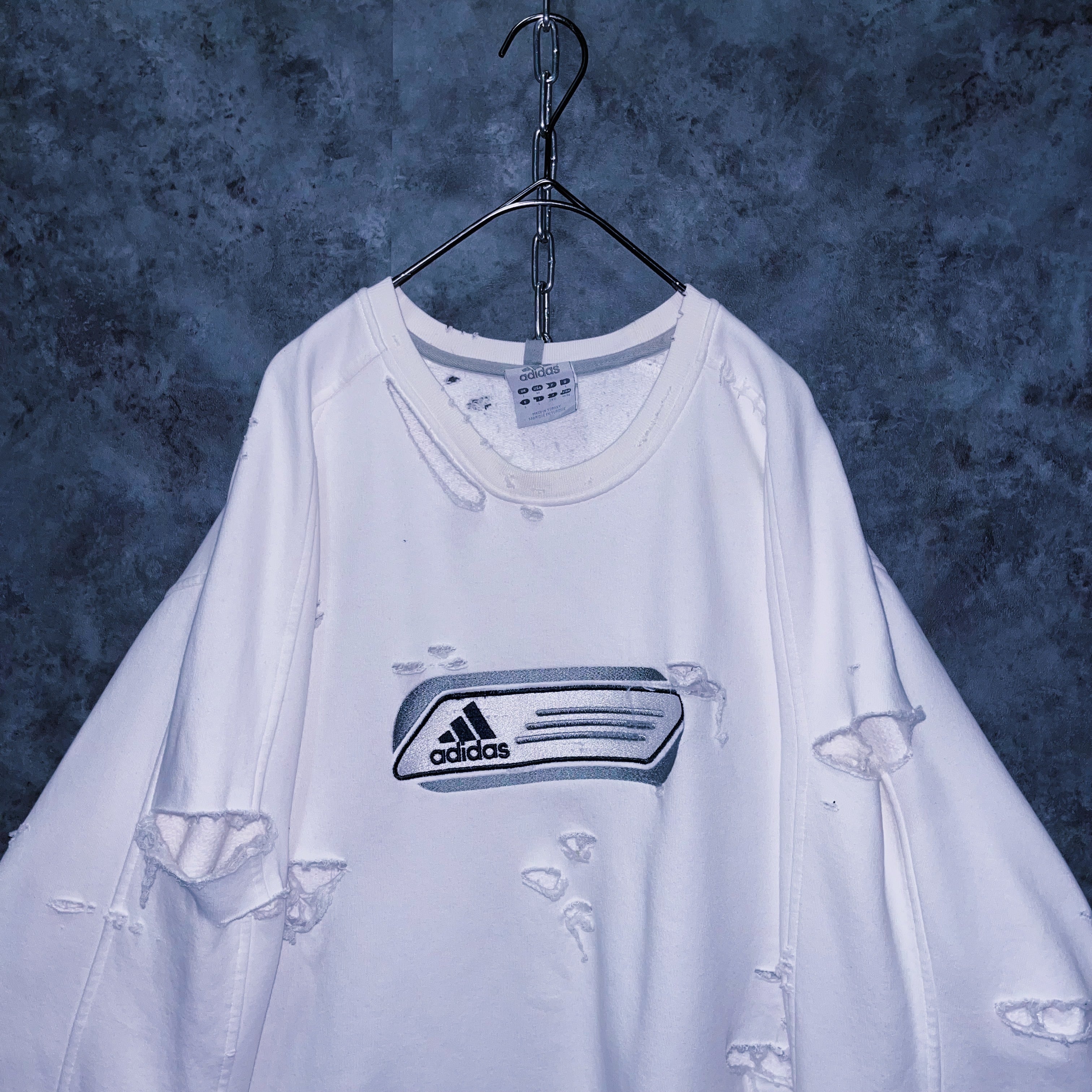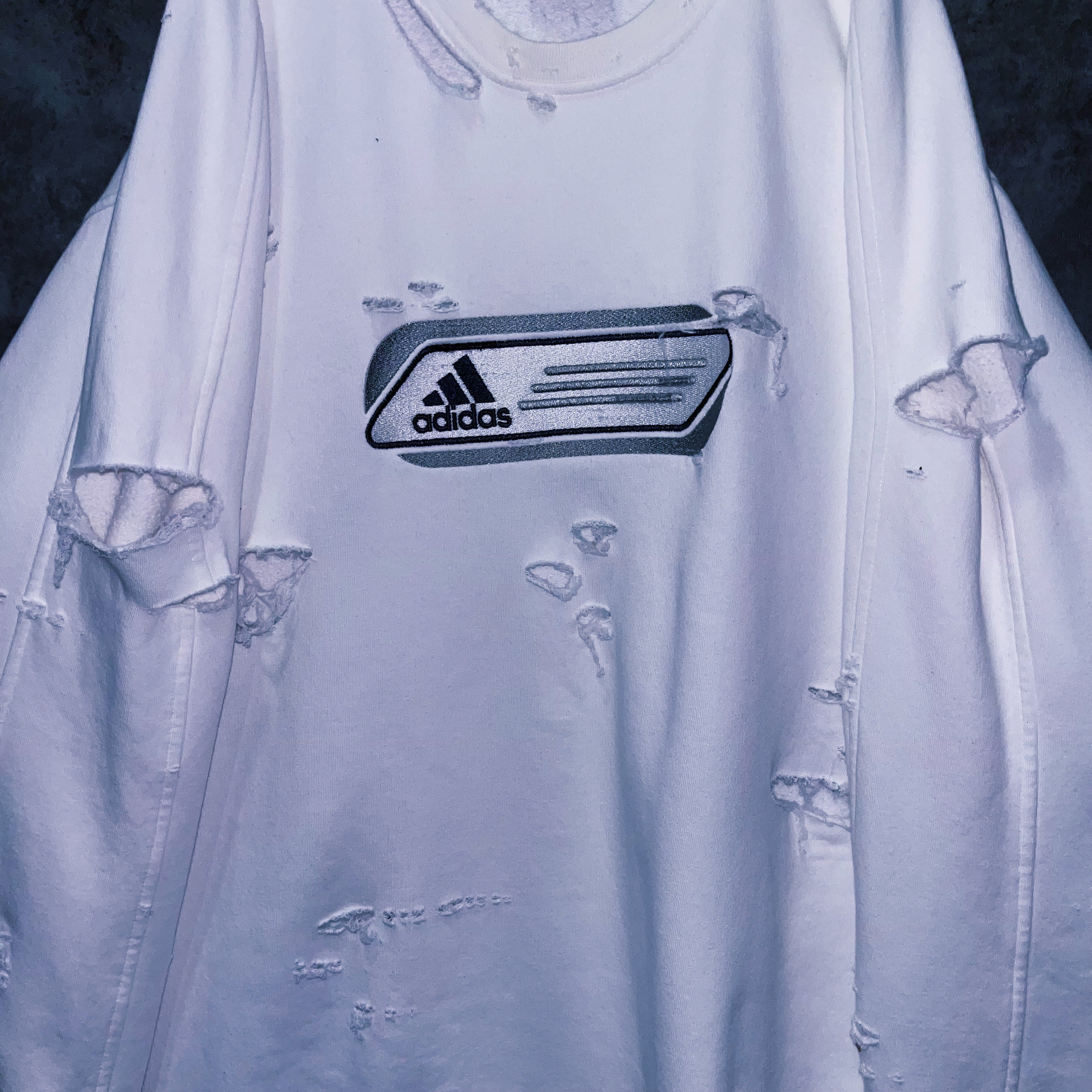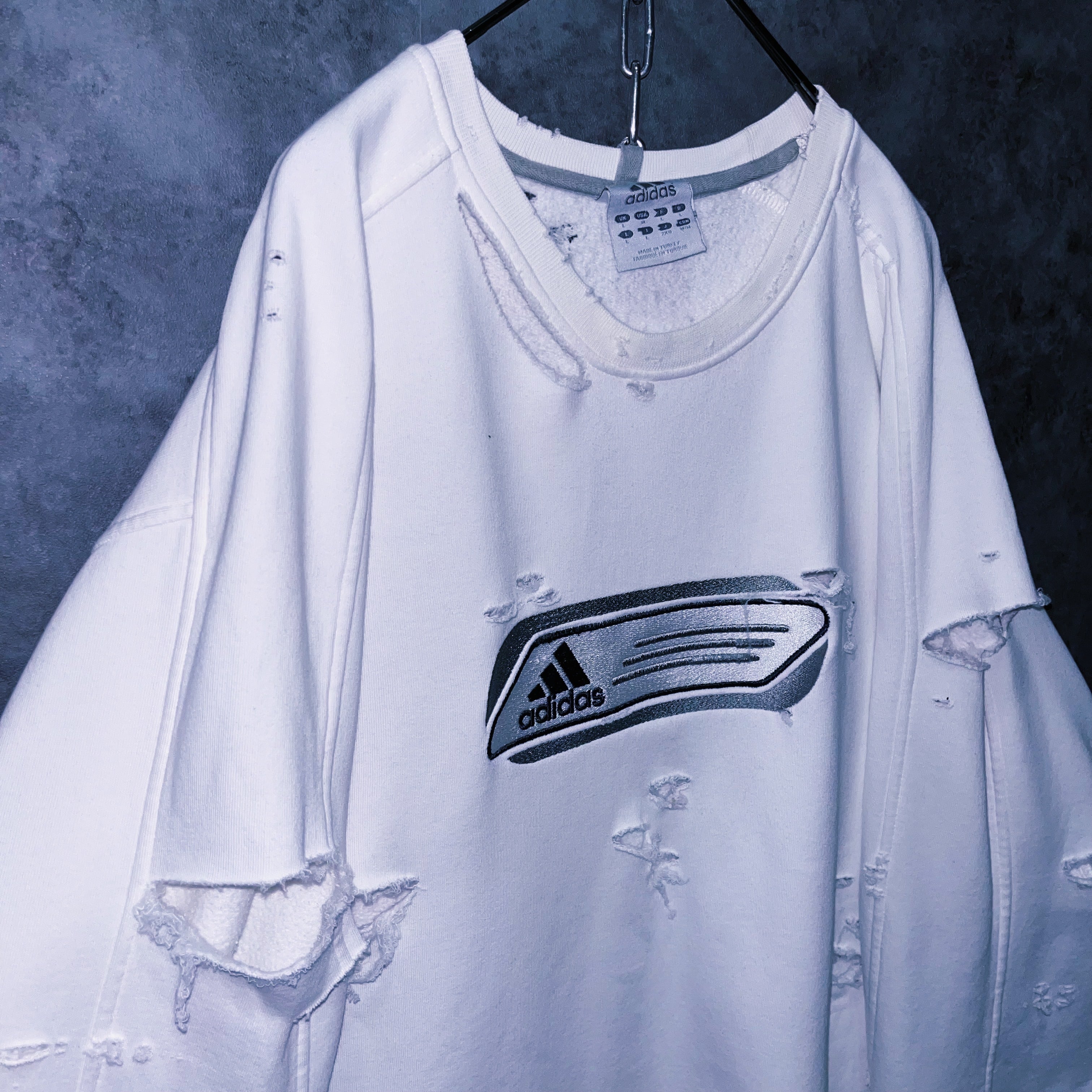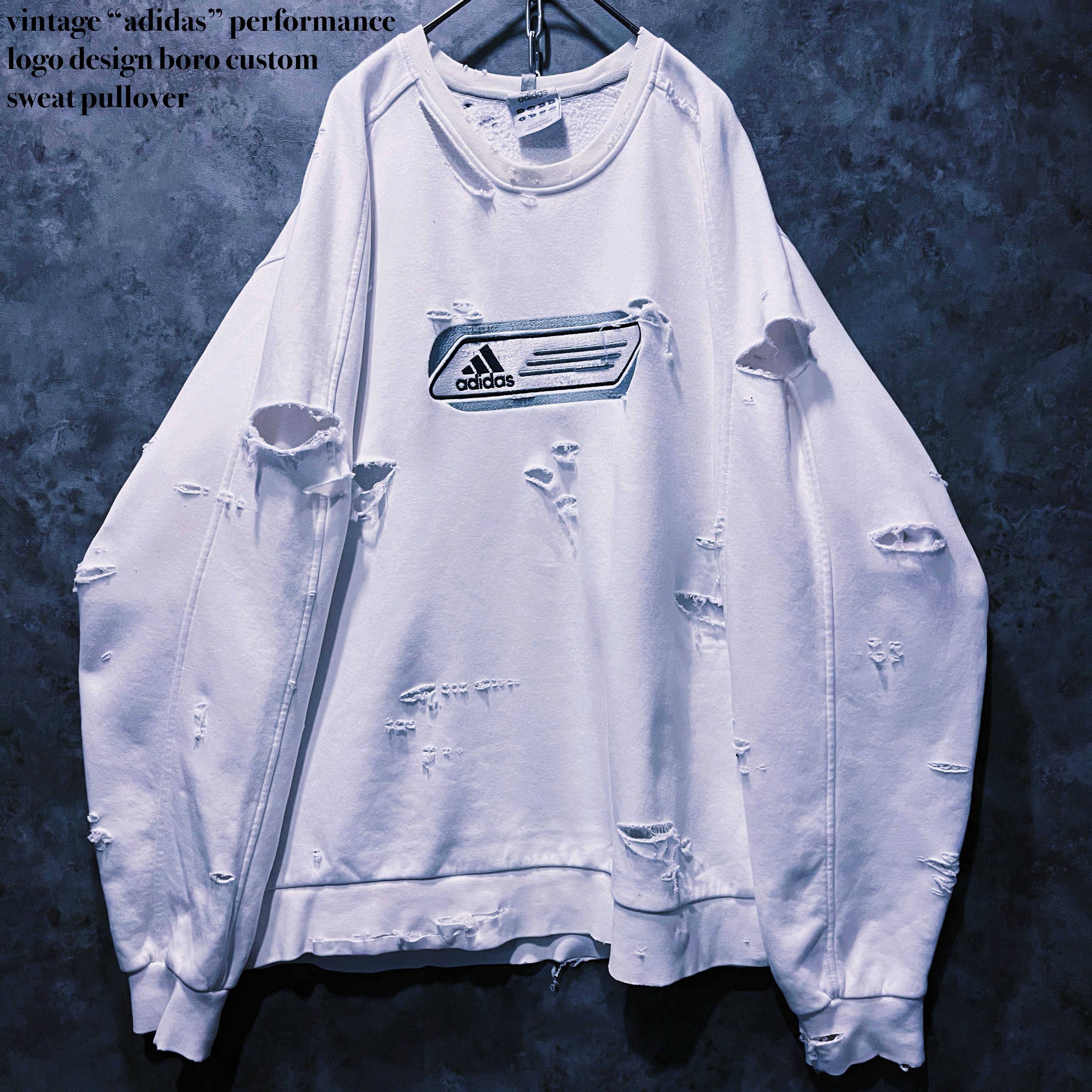 ヴィンテージ“adidas”パフォーマンスロゴデザインボロカスタムスウェットプルオーバー