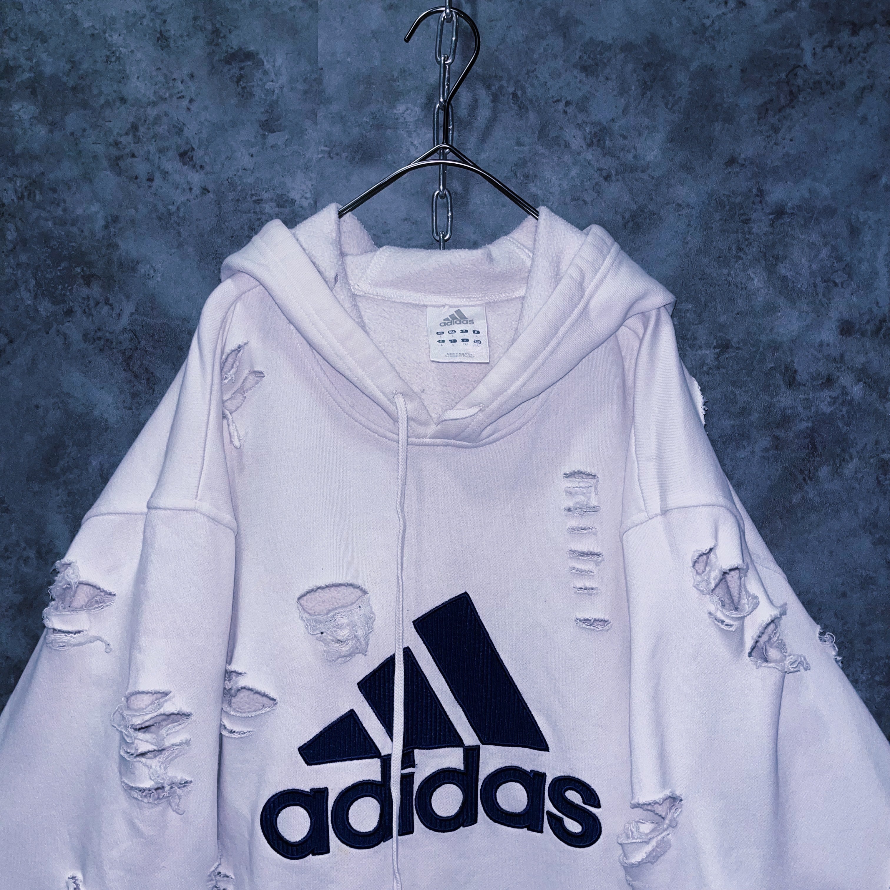ヴィンテージ“adidas”パフォーマンスロゴデザインボロカスタムスウェットフーディ