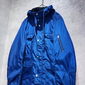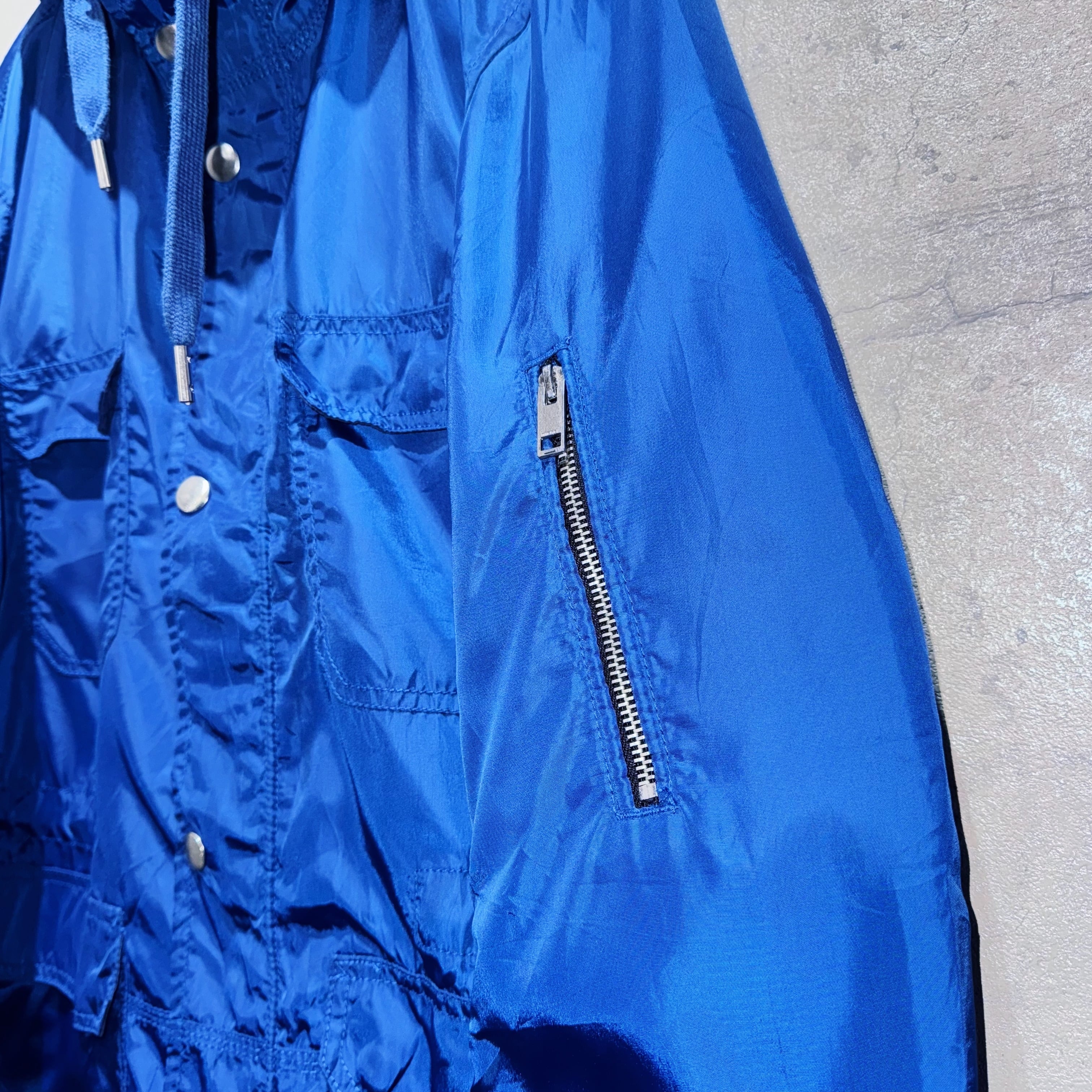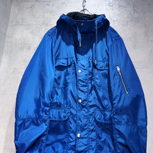 発色のいい鮮やかなブルーを見に纏い頼もしい存在感。フルジップ仕様から比翼仕立てのスナップボタンで、首元まで閉めることが可能です。