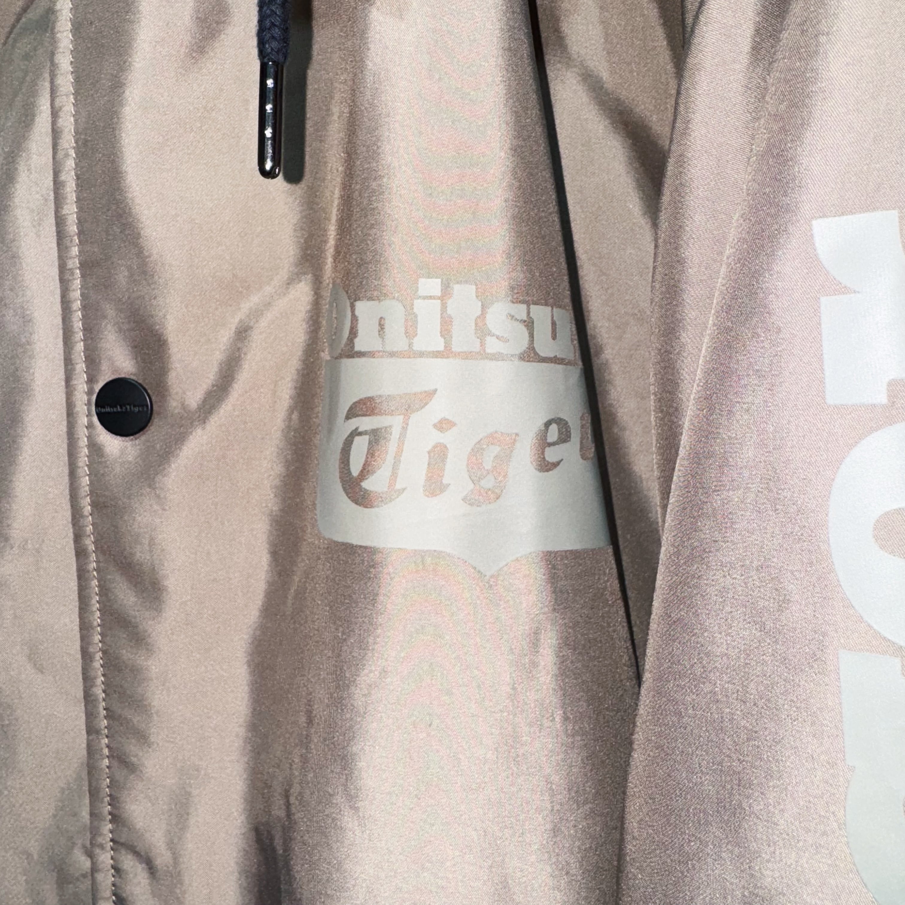 "オニツカタイガー"グラフィックデザインフーディーコーチジャケット