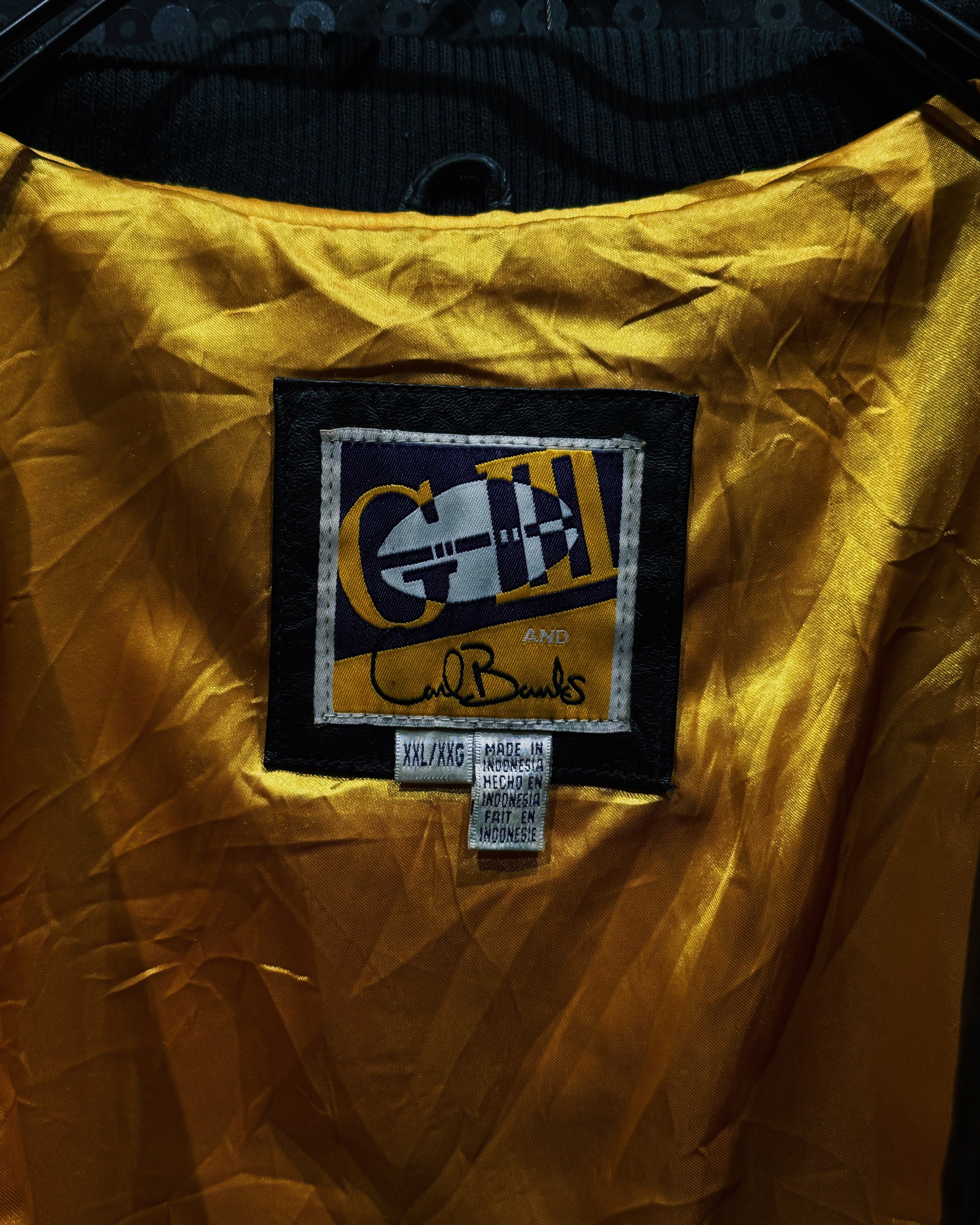 G-III by Carl BanksはNFL・NBAなど公式ライセンスアパレルを数多く手掛けたブランドで、90sヴィンテージ市場でも特に評価が高い。重厚感あるレザーと大胆なカラーコントラストが融合した、アメカジ×ストリートの王道を体現する一着。