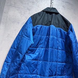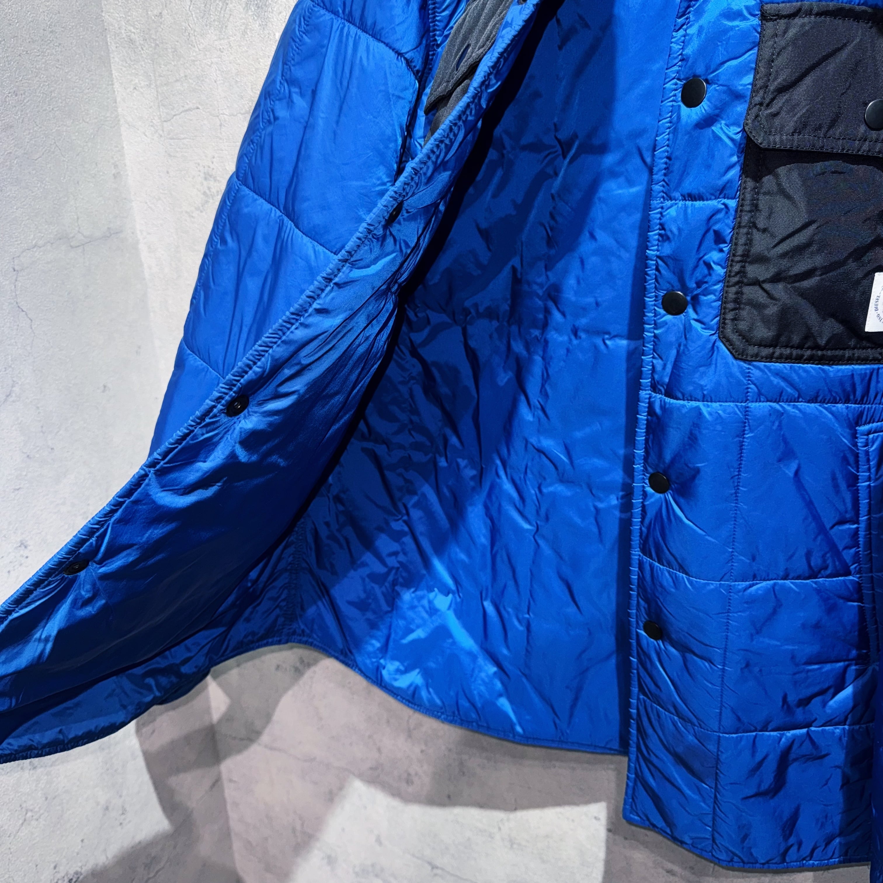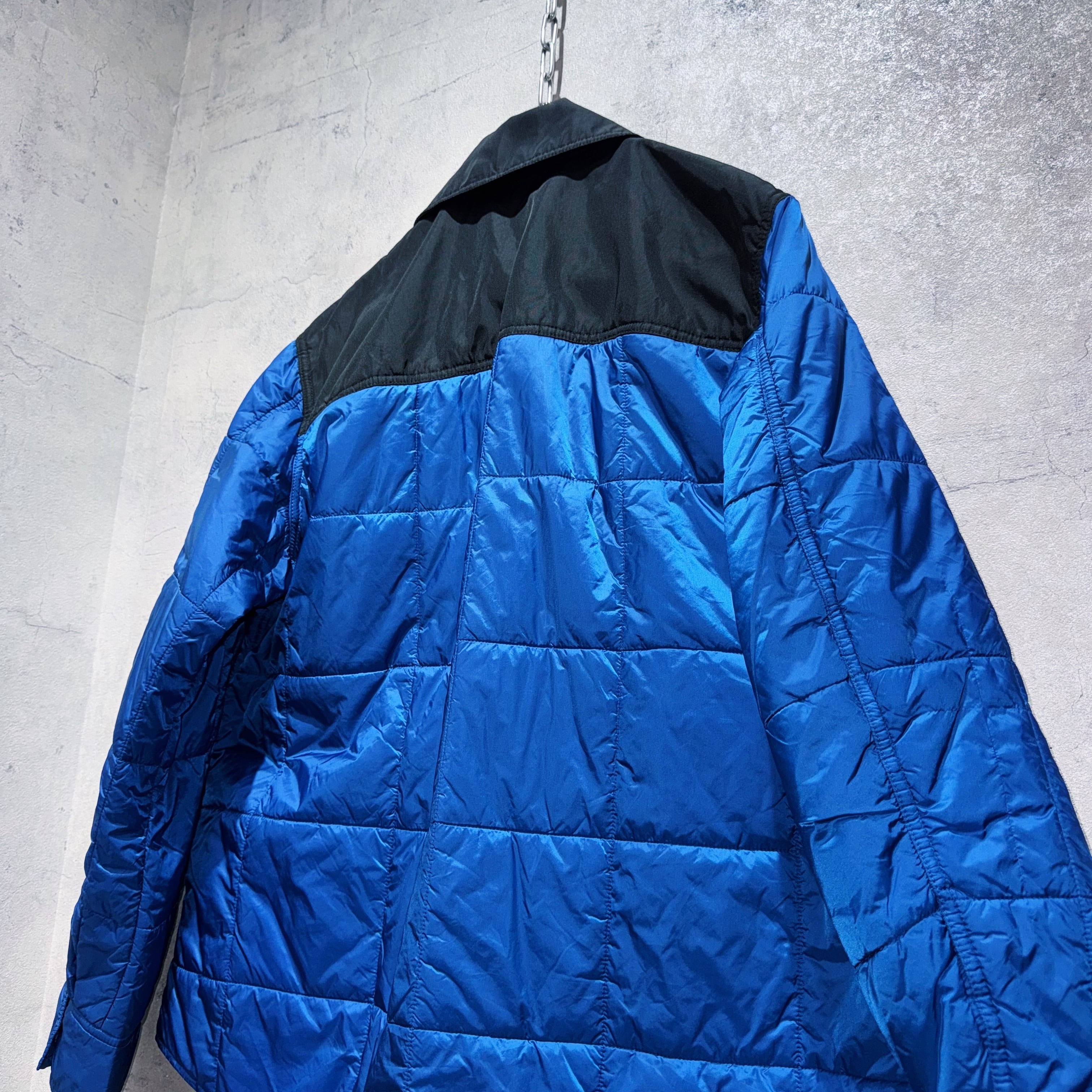 写真からでも伝わってくる鮮やかなブルーとブラックカラーがスイッチングしたライトダウンジャケット。