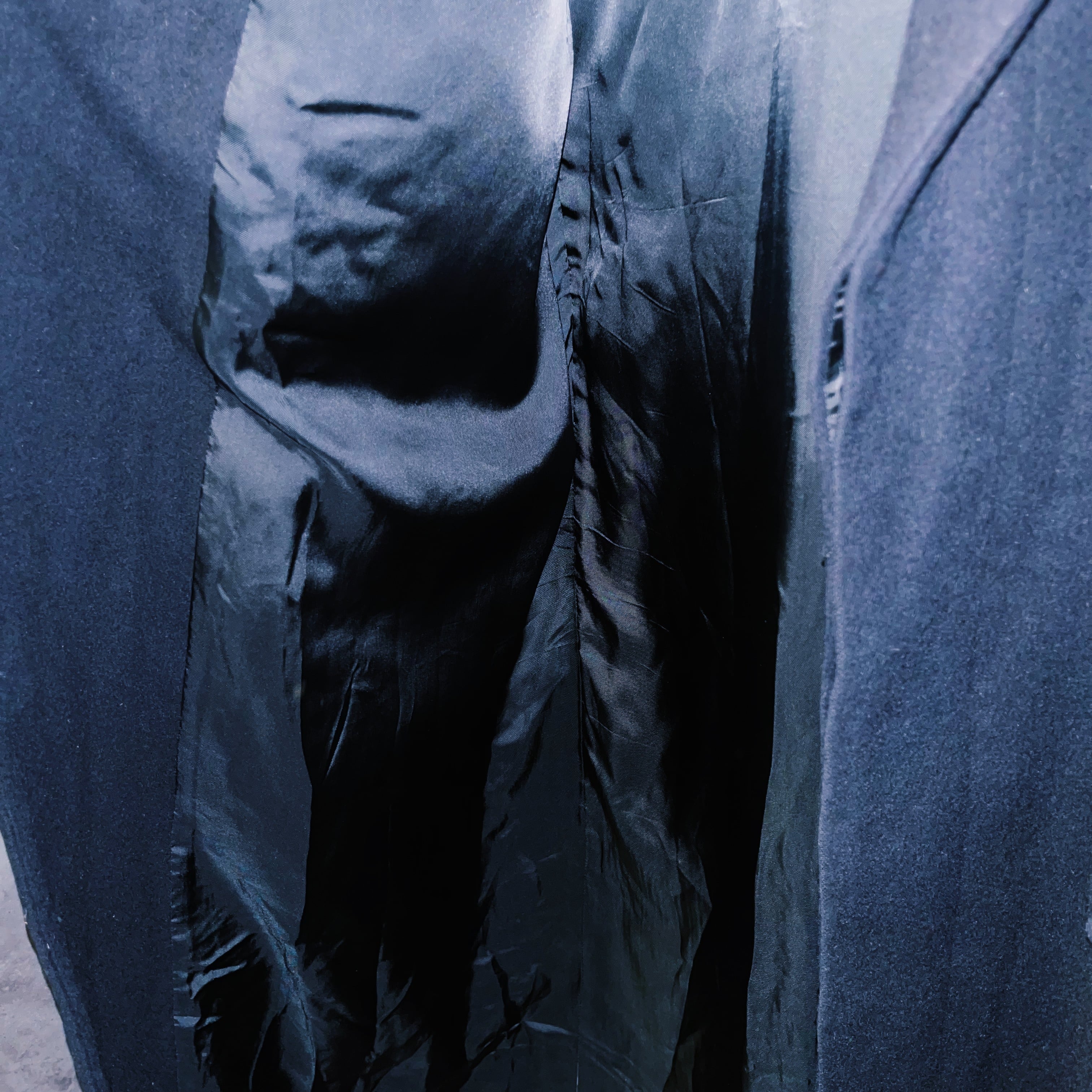 パワーショルダーでロング丈、比翼仕立てとまるでハイブランドかのような高貴な存在感がありハイモードな仕上がりに。