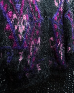 Heavy Brushed Mohair Art Pattern Cardigan