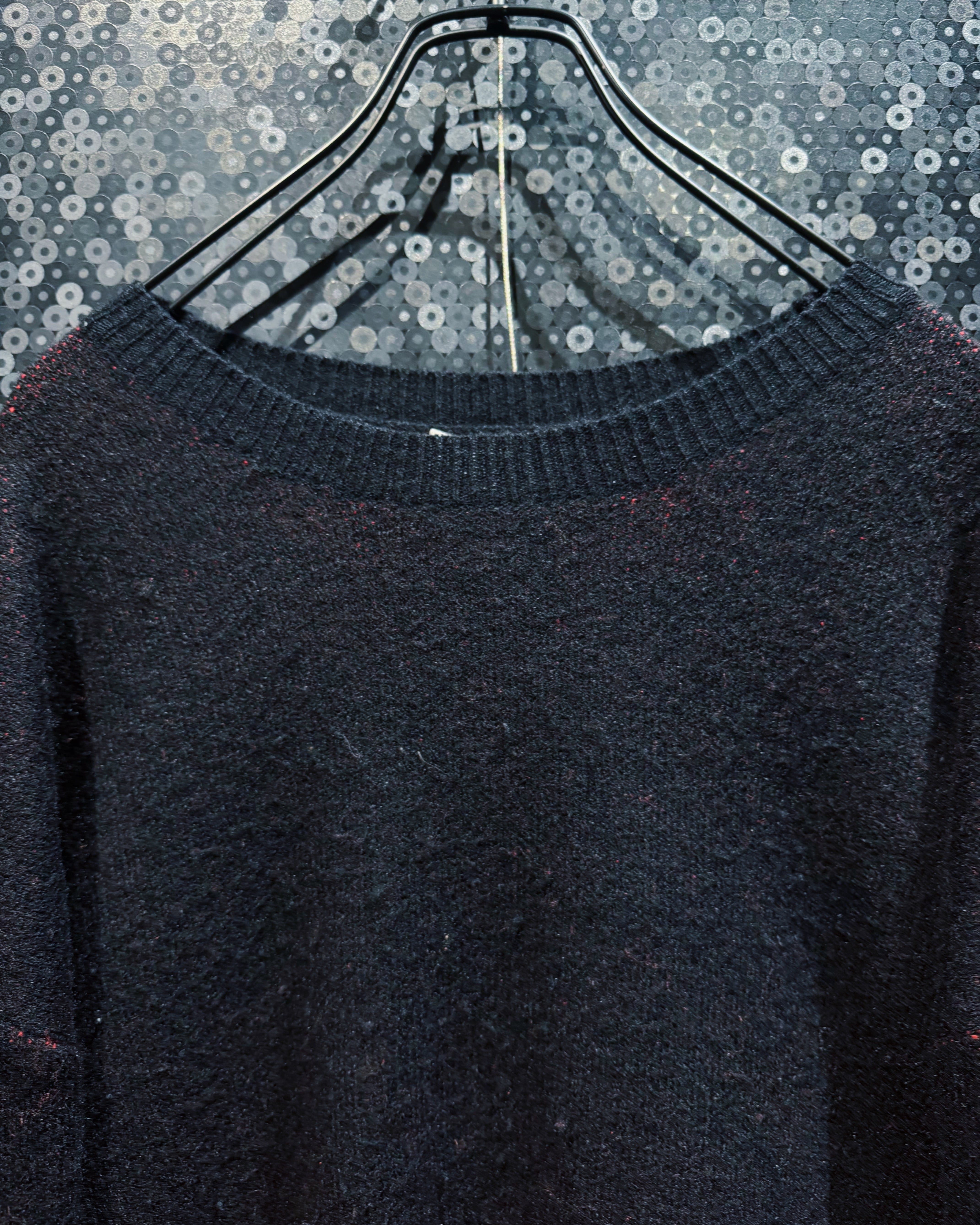 深いブラックボディに、裾〜袖先へと燃え上がるように広がる“インフェルノレッド”のファイヤーパターンが圧倒的な存在感を放つ一着。毛足のある柔らかなニット素材で仕立てられ、着心地は軽やかで柔らかいのに、見た目は抜群に攻撃的。