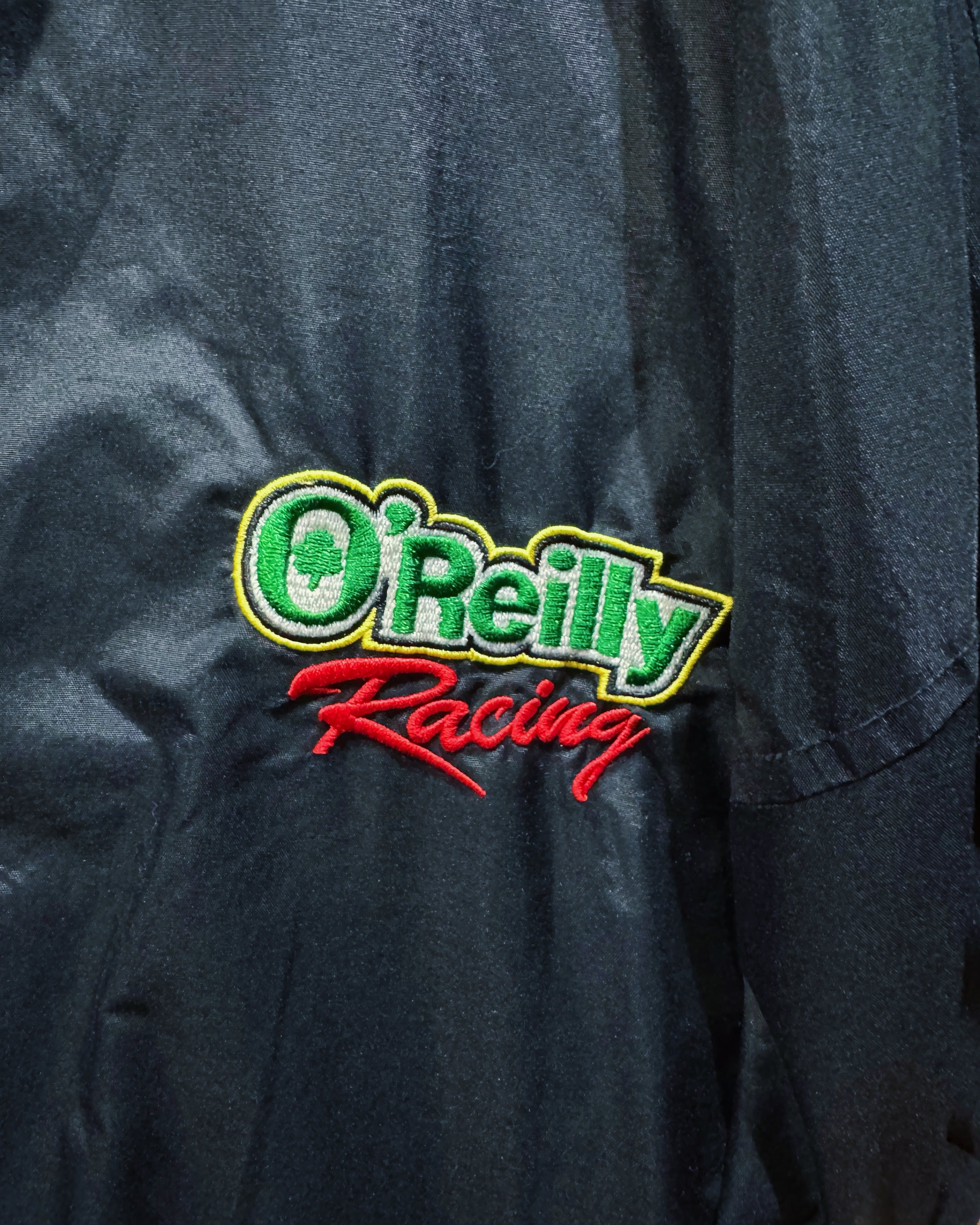 O’Reilly(オライリー) はアメリカの巨大カー用品チェーンで、NASCARやドラッグレースなどモータースポーツ系のスポンサーとしても有名。店舗スタッフやイベント関係者向けに作られた“プロモ系ウェア”は一般流通が少なく、特に刺繍でここまで豪快に仕上げたモデルは希少度高め。