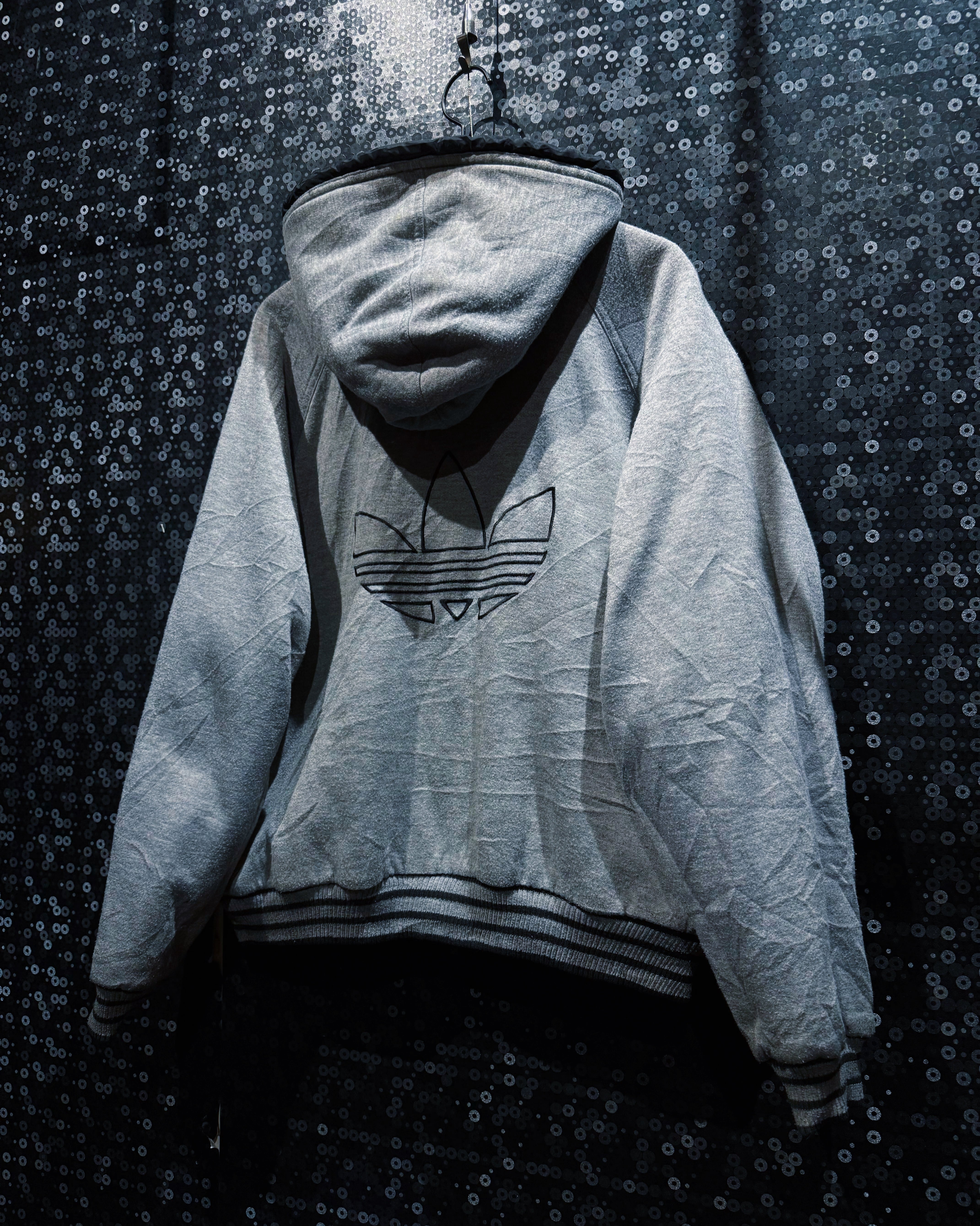 スウェット面は、杢グレーの柔らかい雰囲気にブラックロゴワッペンを添えたシンプルな表情で、よりカジュアル・デイリーに振れる雰囲気。袖リブや裾リブもしっかりしており、裏返したときの“着た感”が違和感なく成立する完成度の高さは、ヴィンテージアディダスの中でも珍しい完成度。