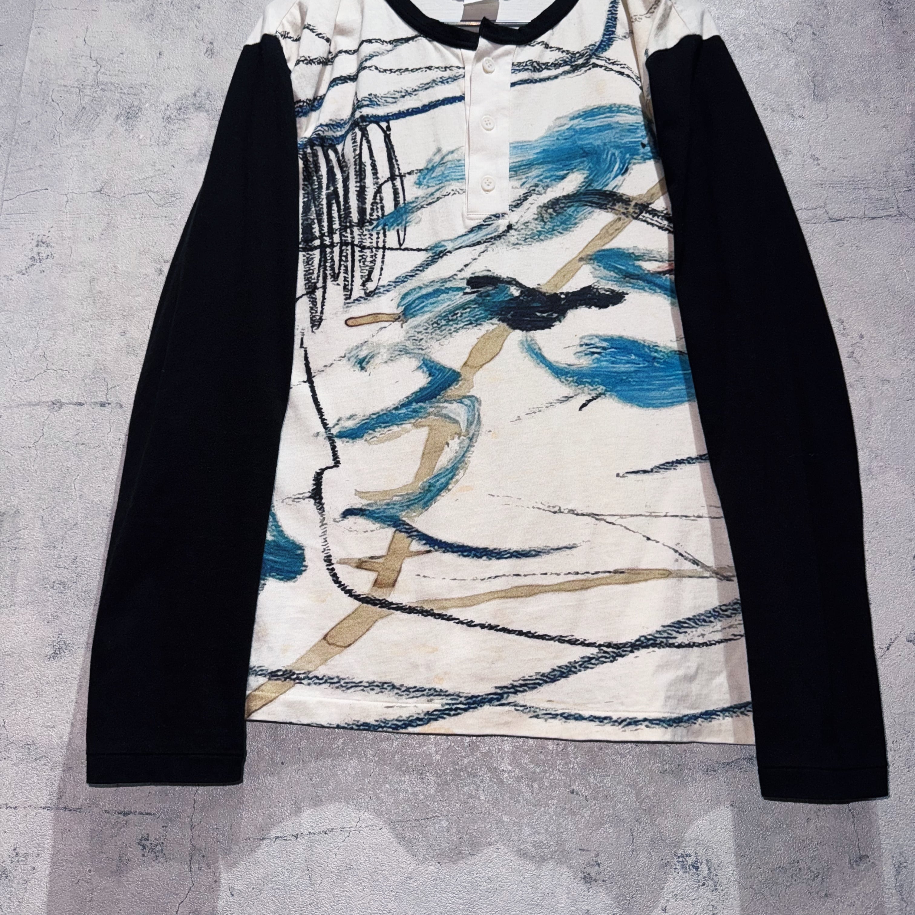 23SS"yohji yamamoto POUR HOMME"inkjet design henry neck long sleeve T shirt
