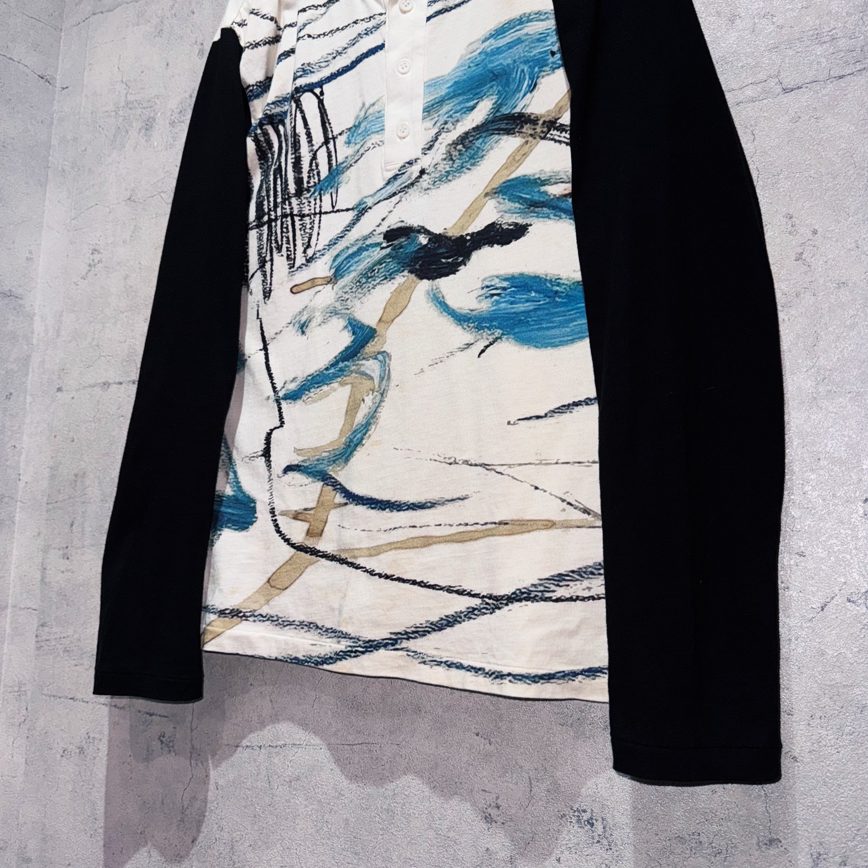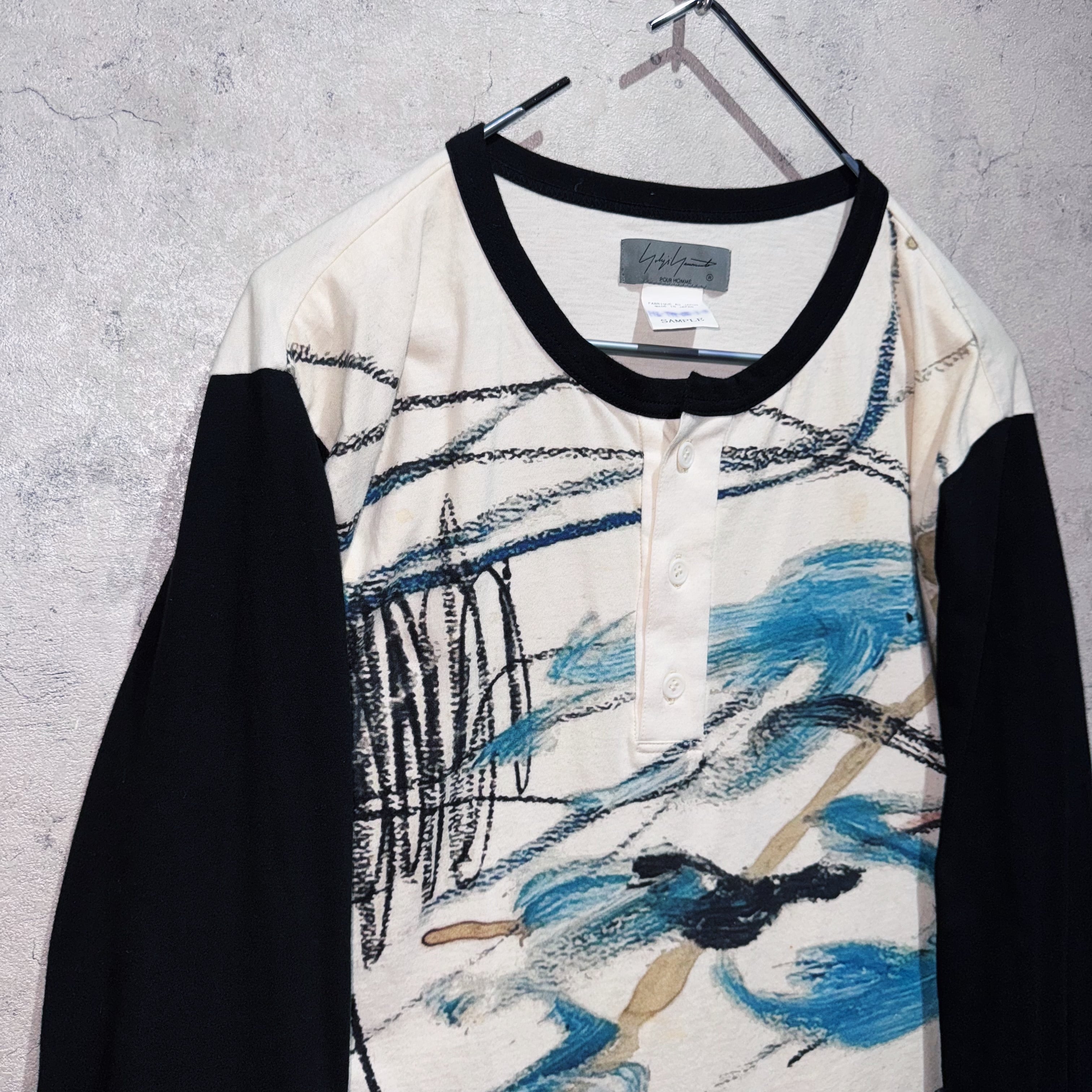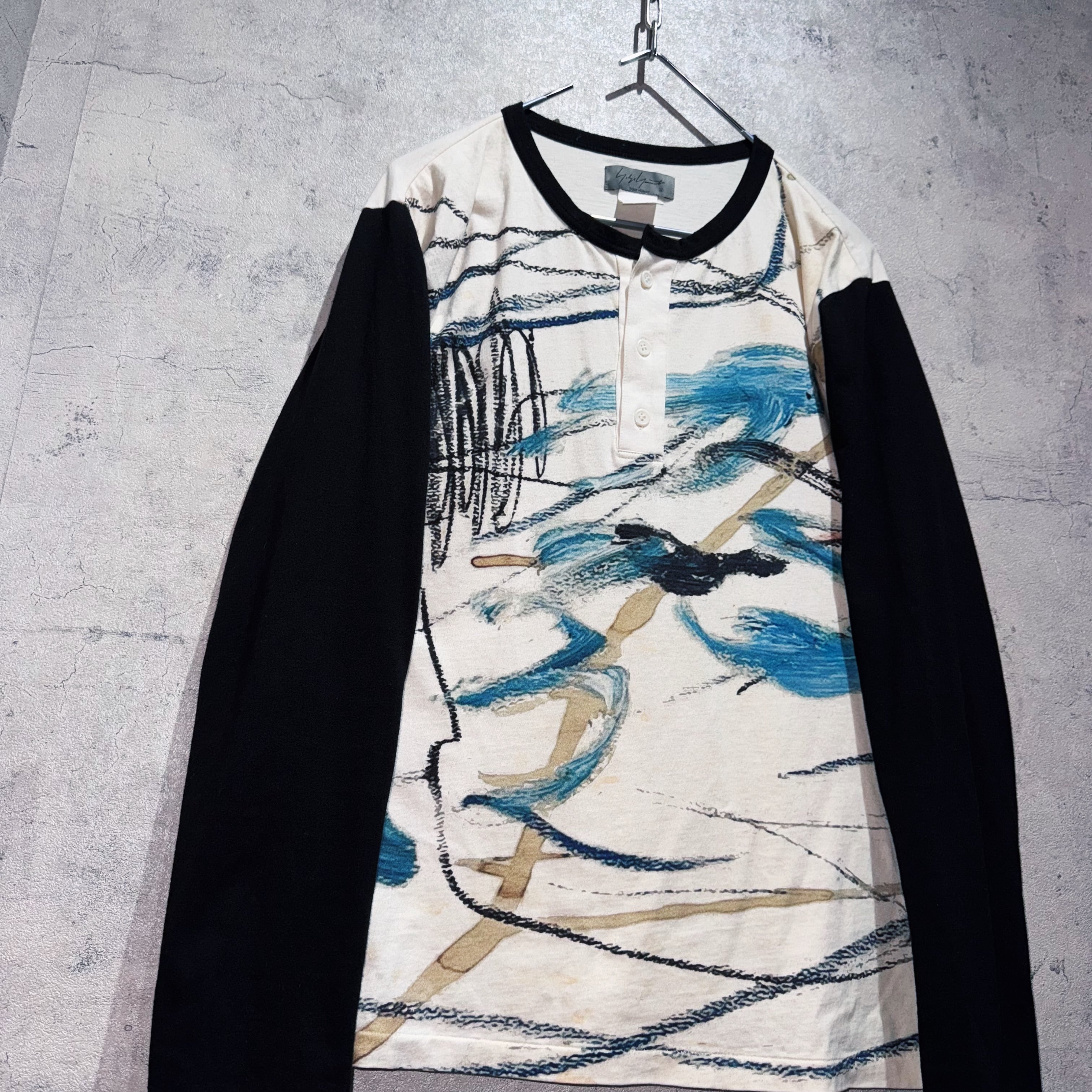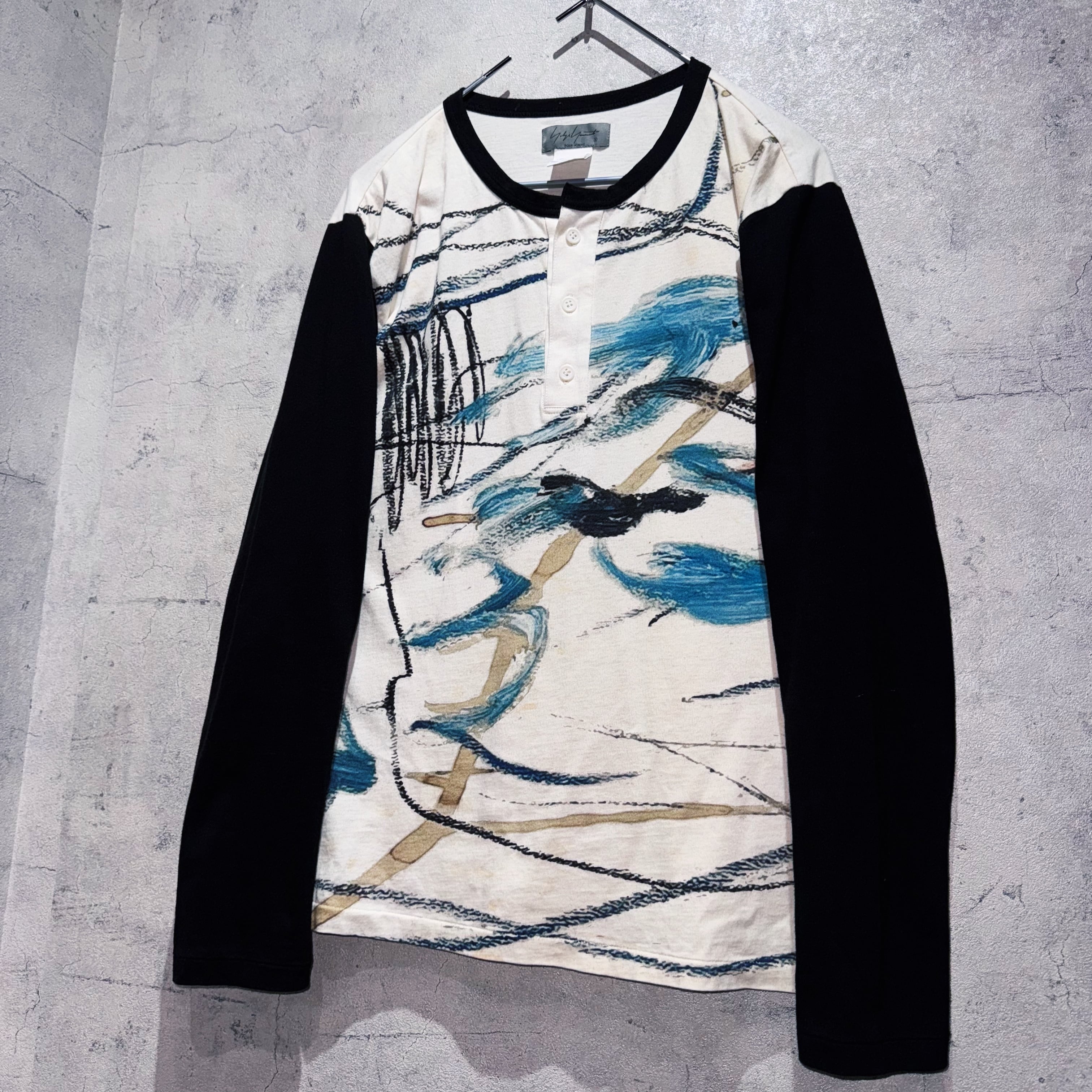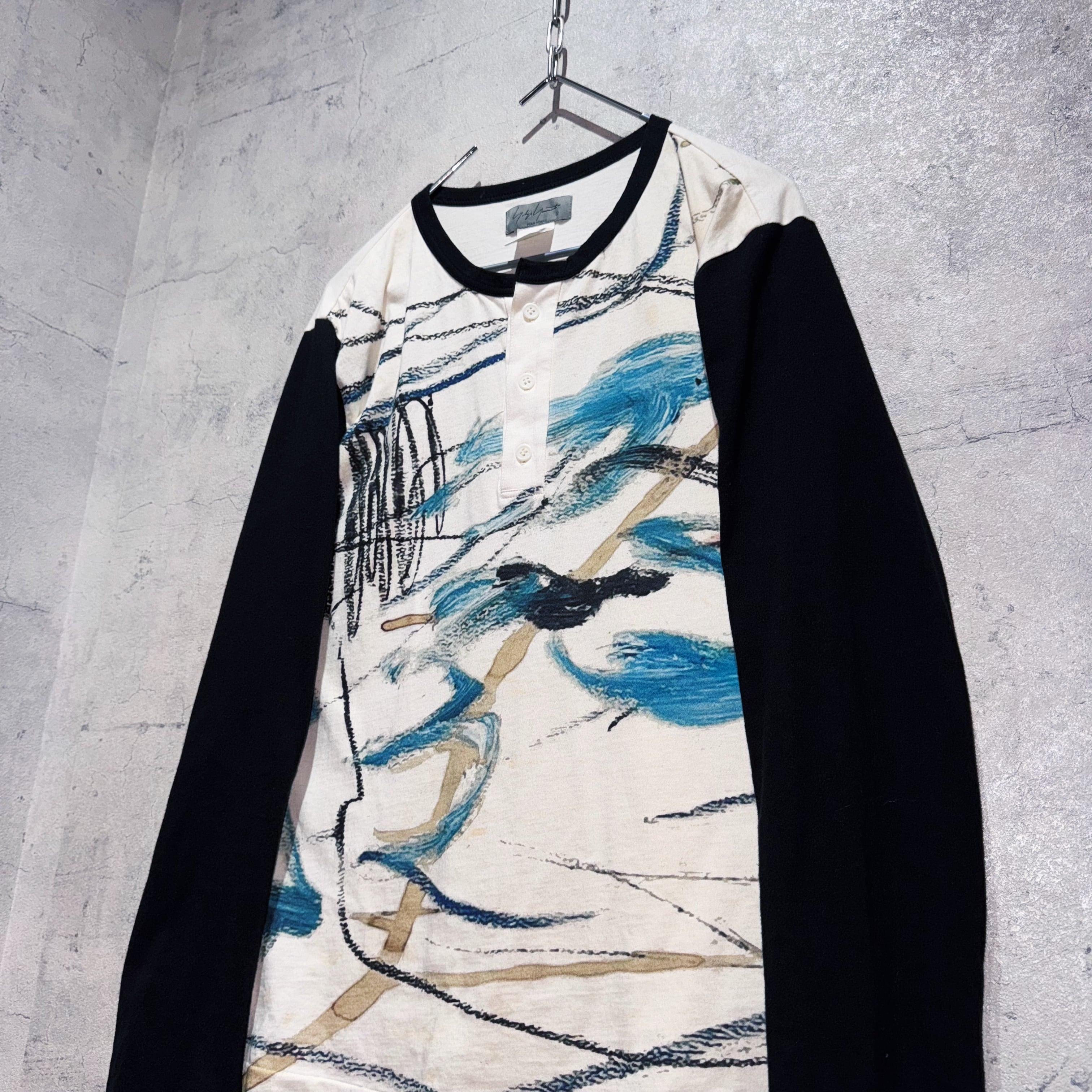 23春夏"ヨウジヤマモトプールオム"インクジェットデザインヘンリーネックロングスリーブTシャツ