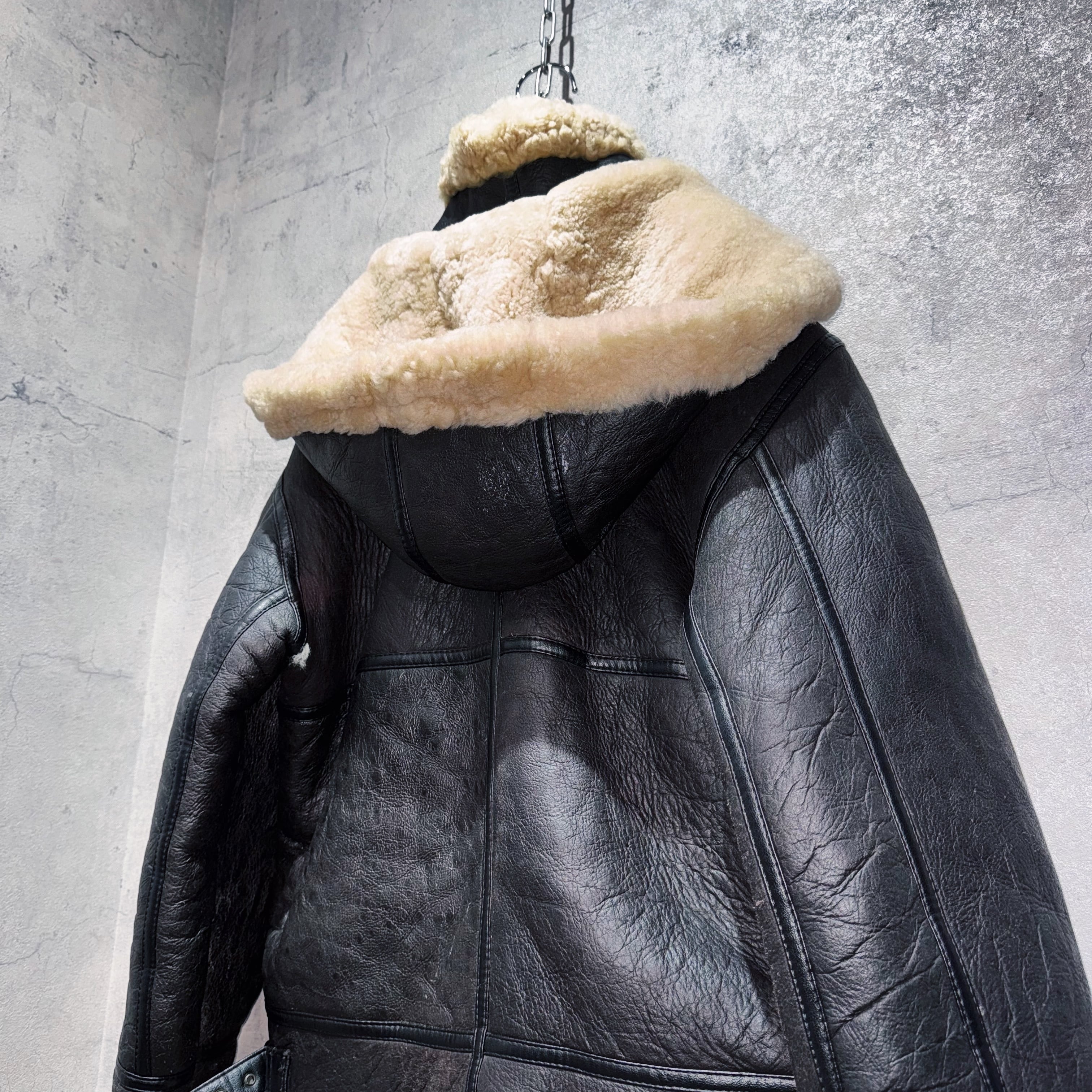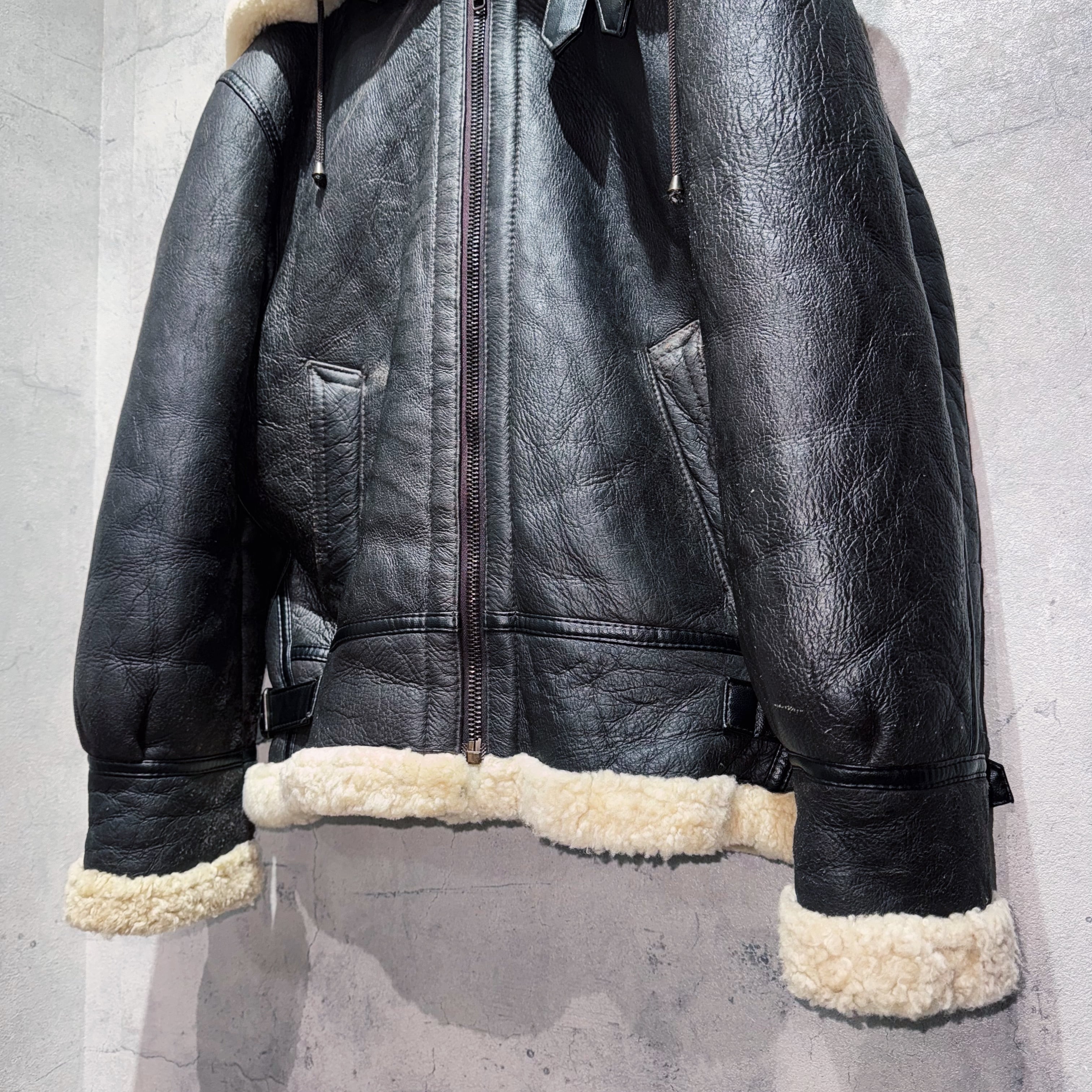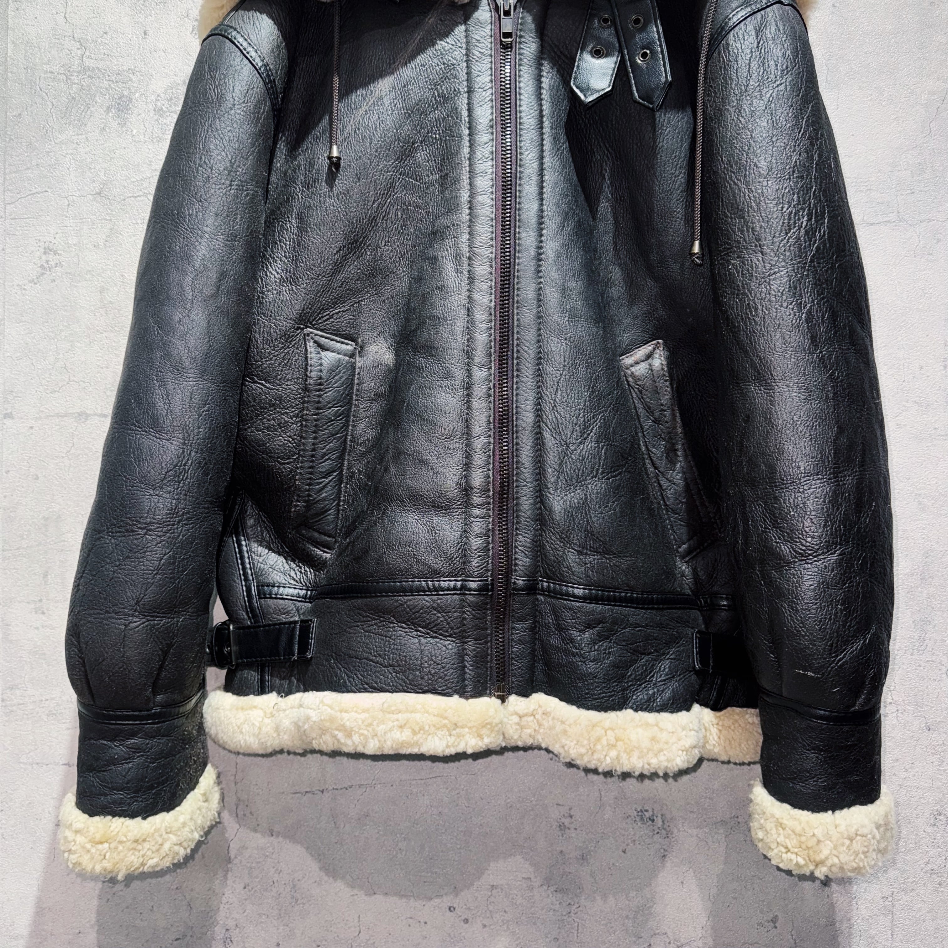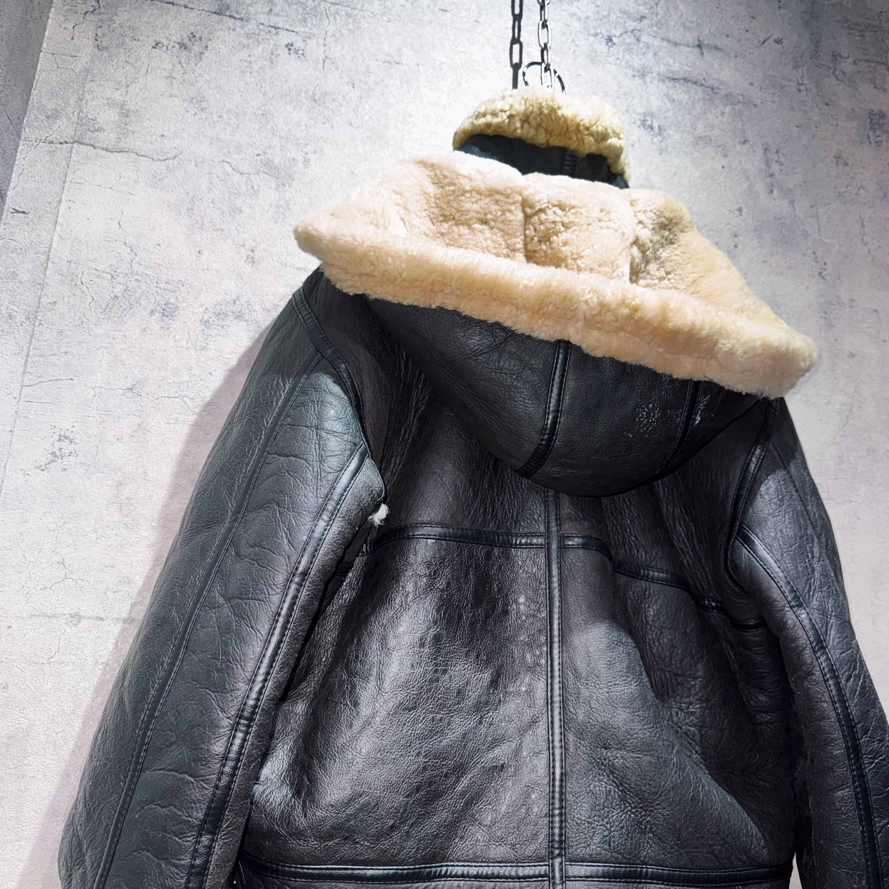 special 90's"B-3 type"mouton leather hoodie Flight jacket