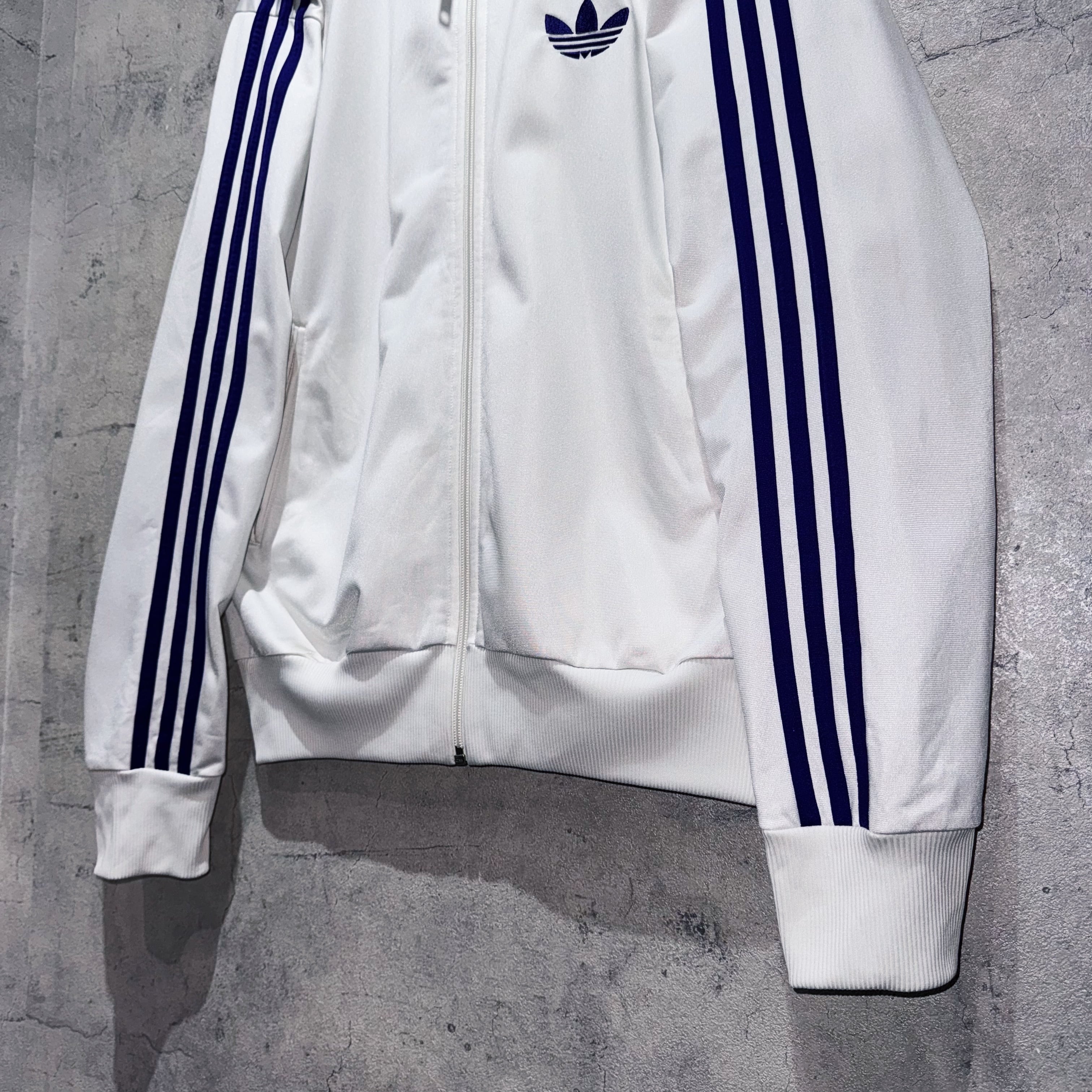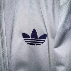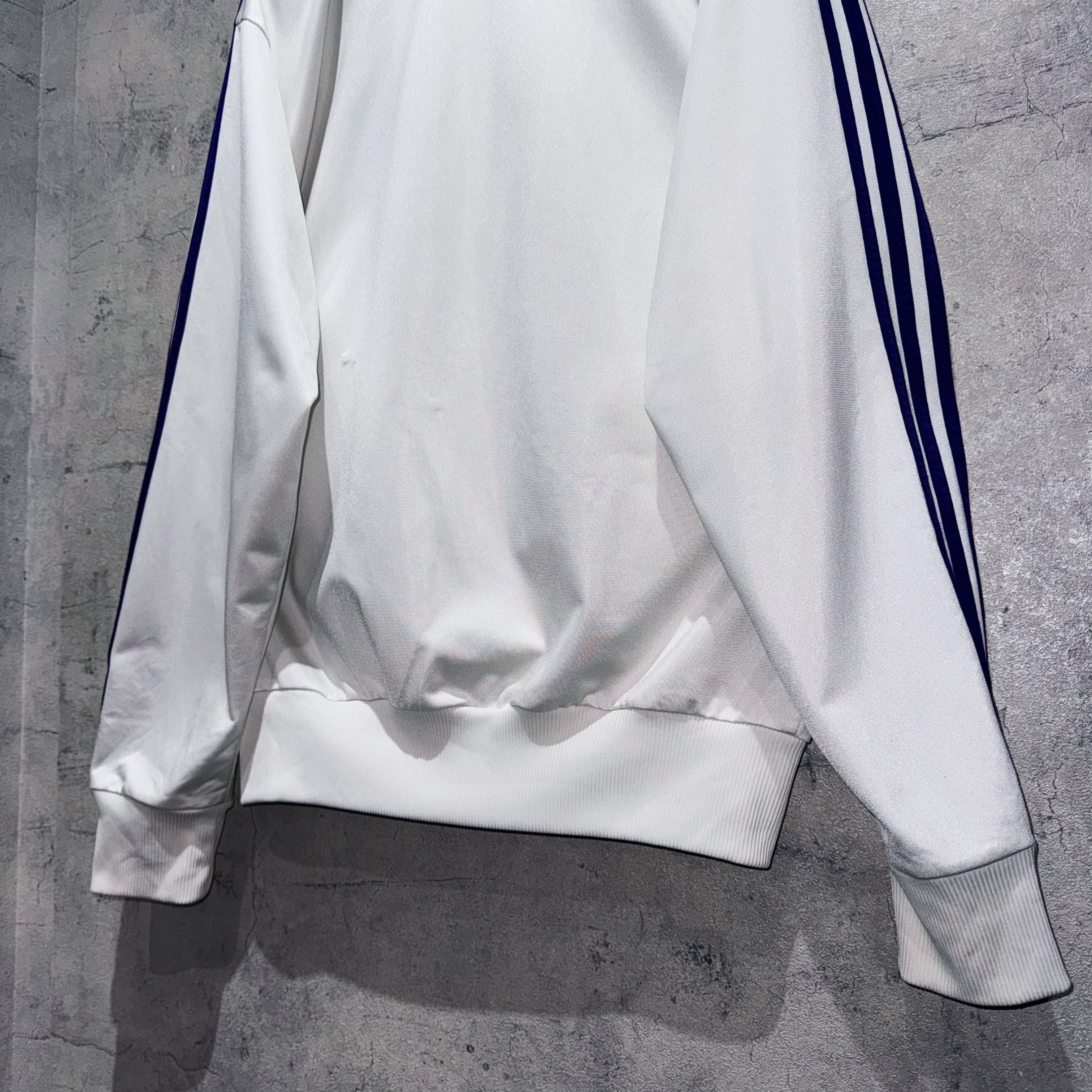人気の高いホワイトのボディにパープルカラーでトレフォイルと3ストライプスをあしらったトラックジャケット。この手のカラーリングはかなり人気高いですね。