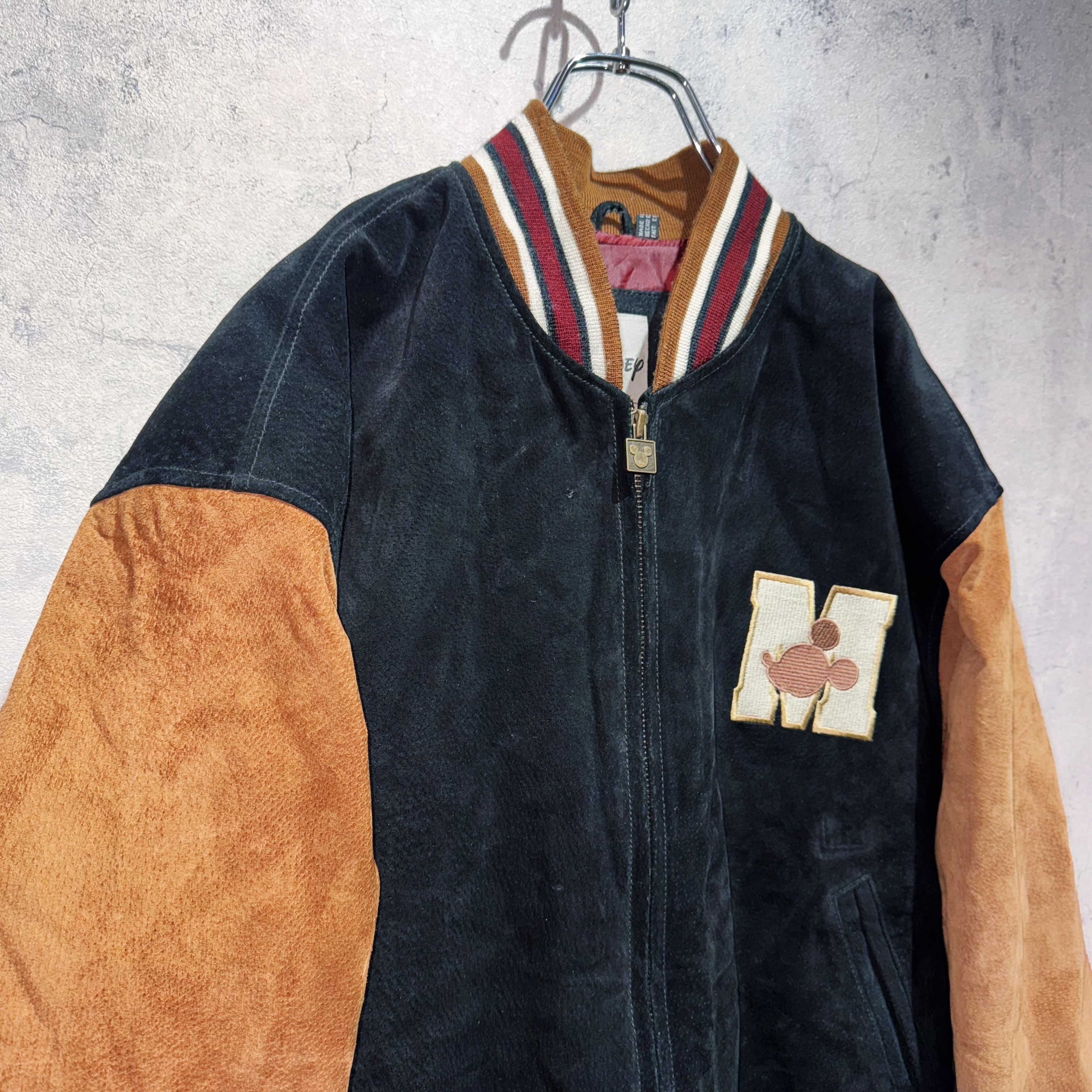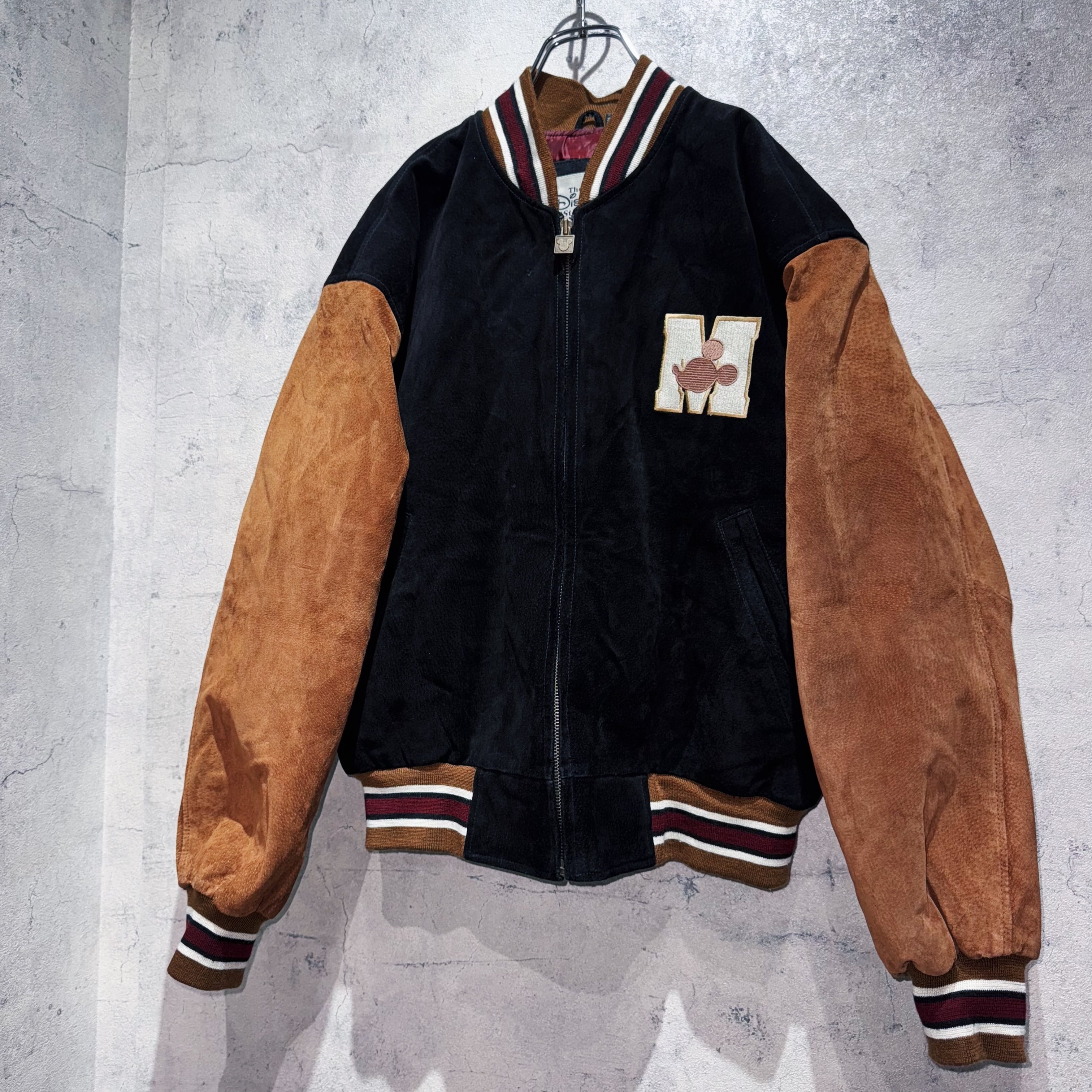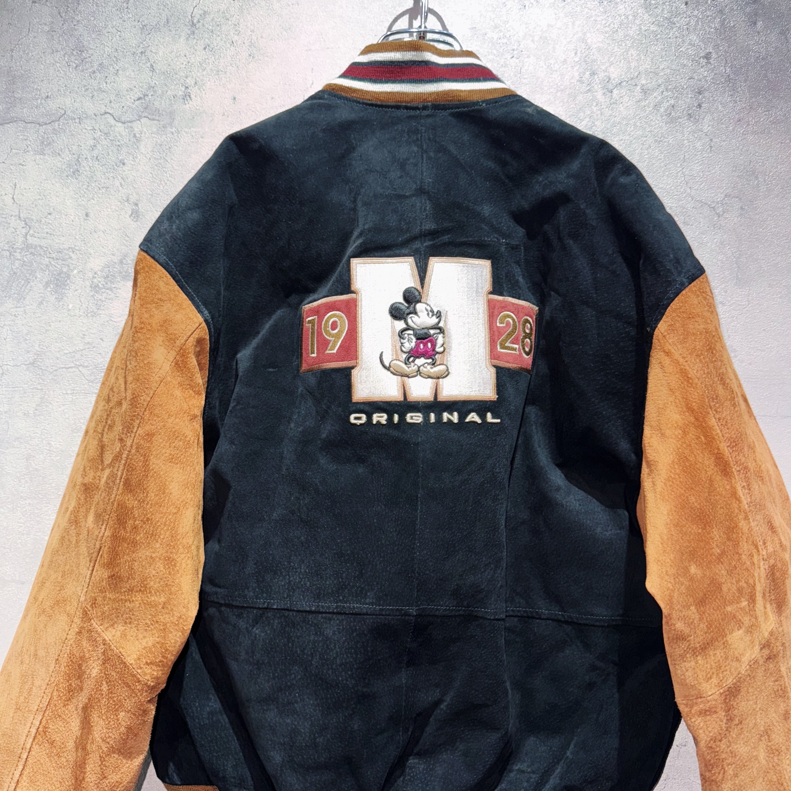 90年代"ディズニー"ミッキーマウスエンブロイダリーデザインスエードスタジアムジャケット