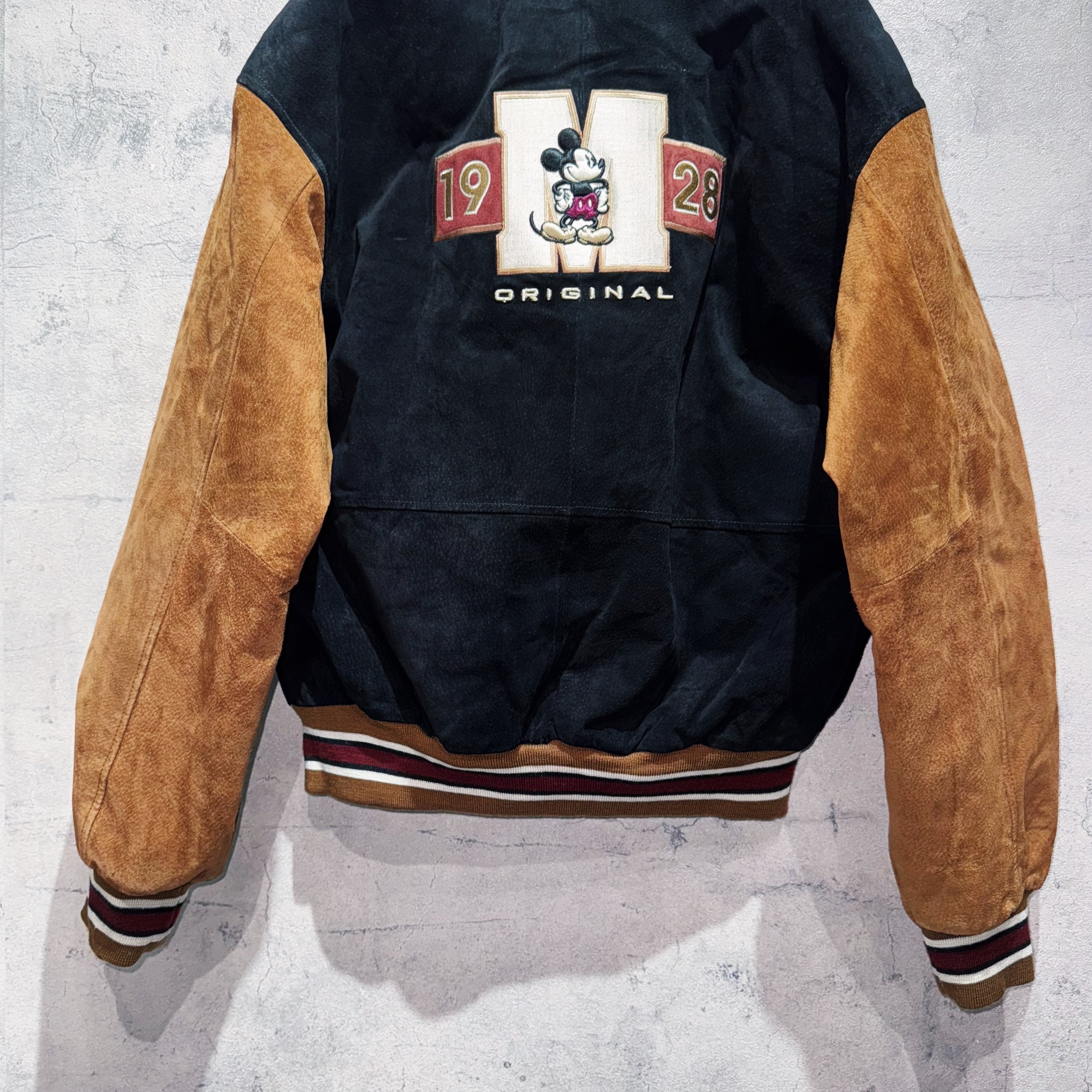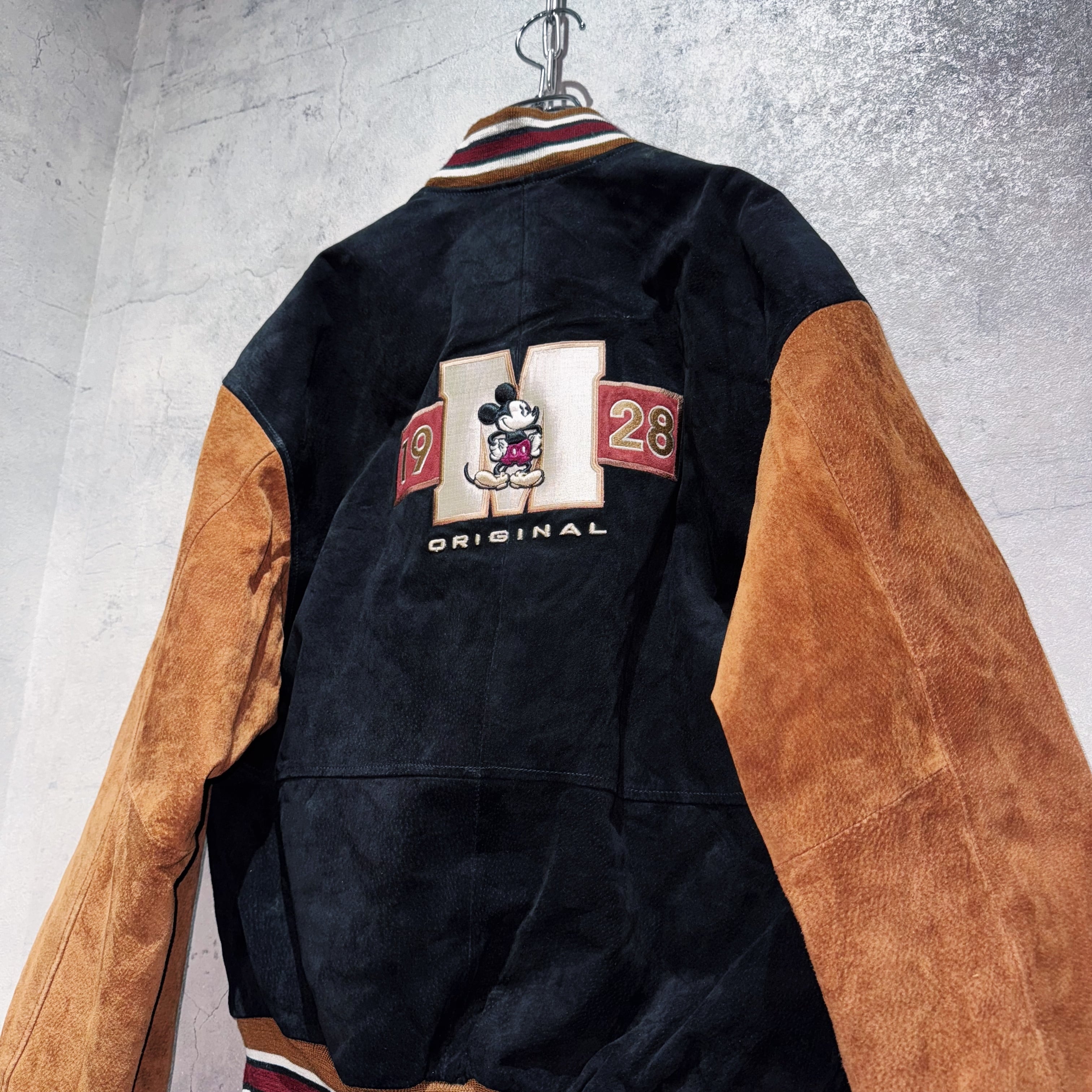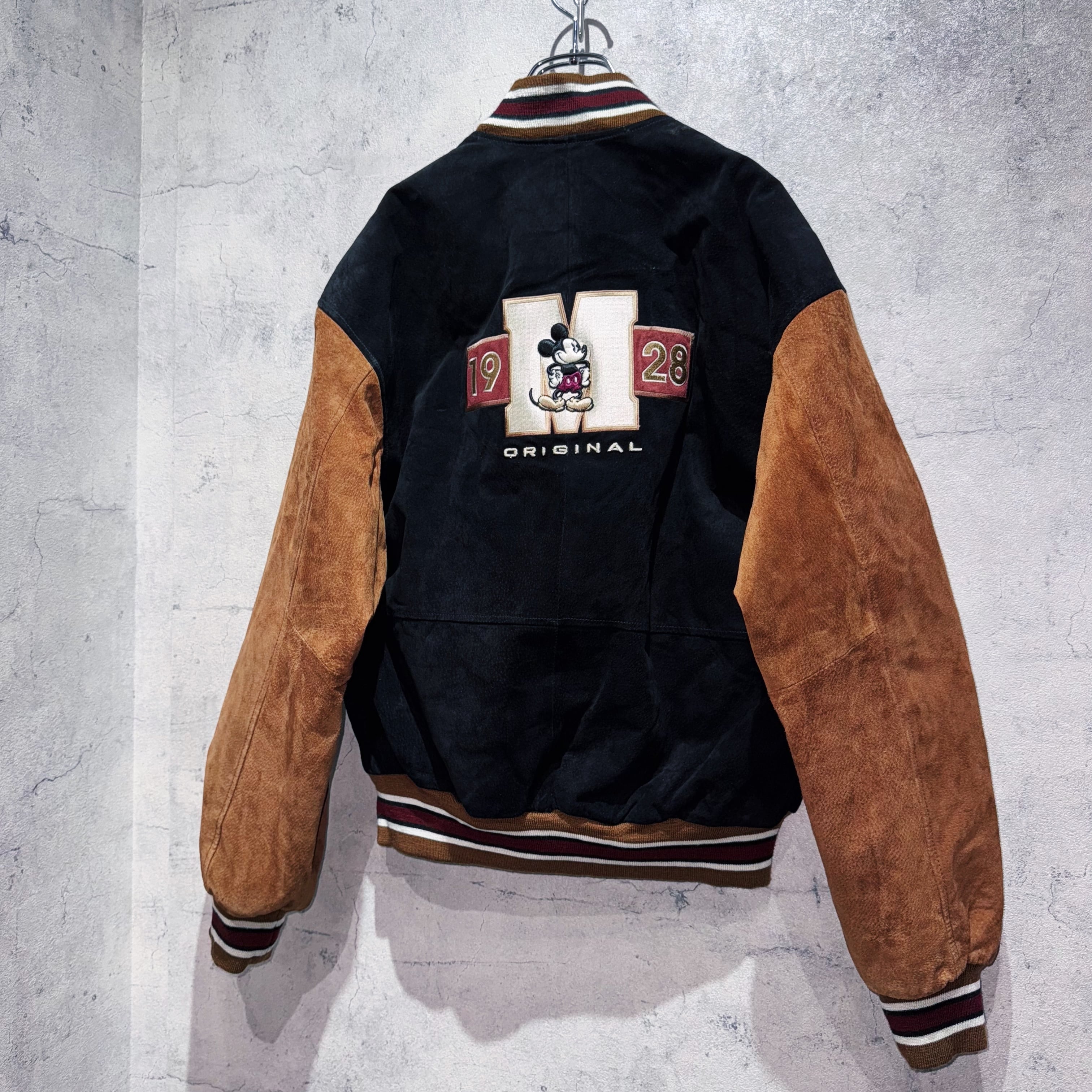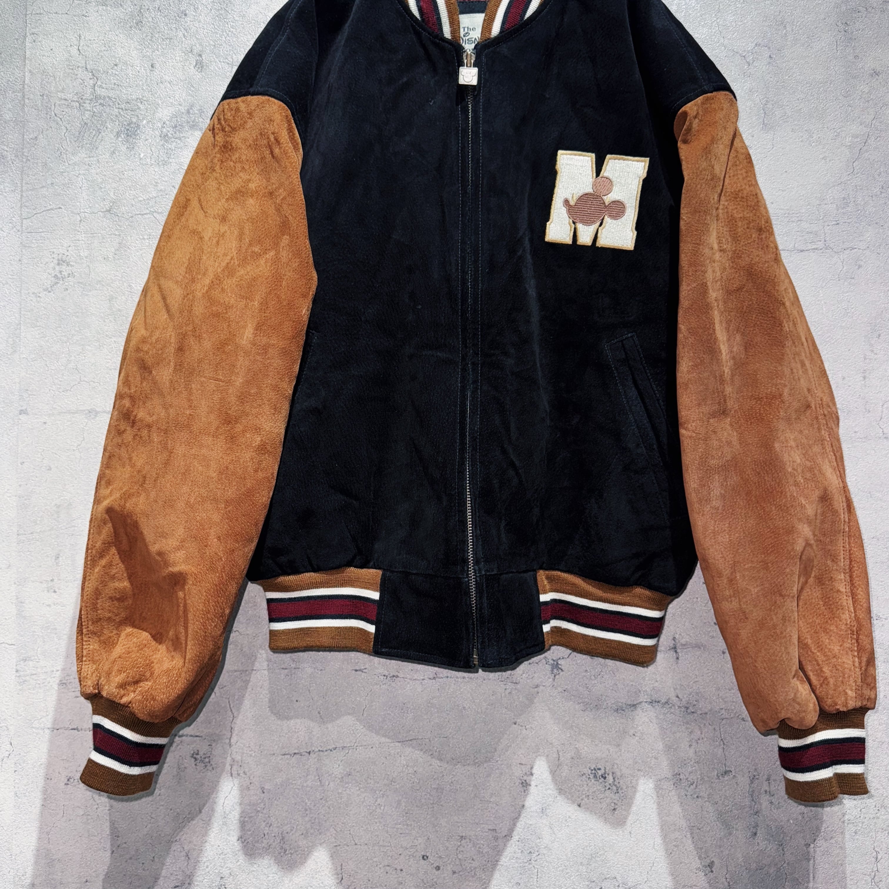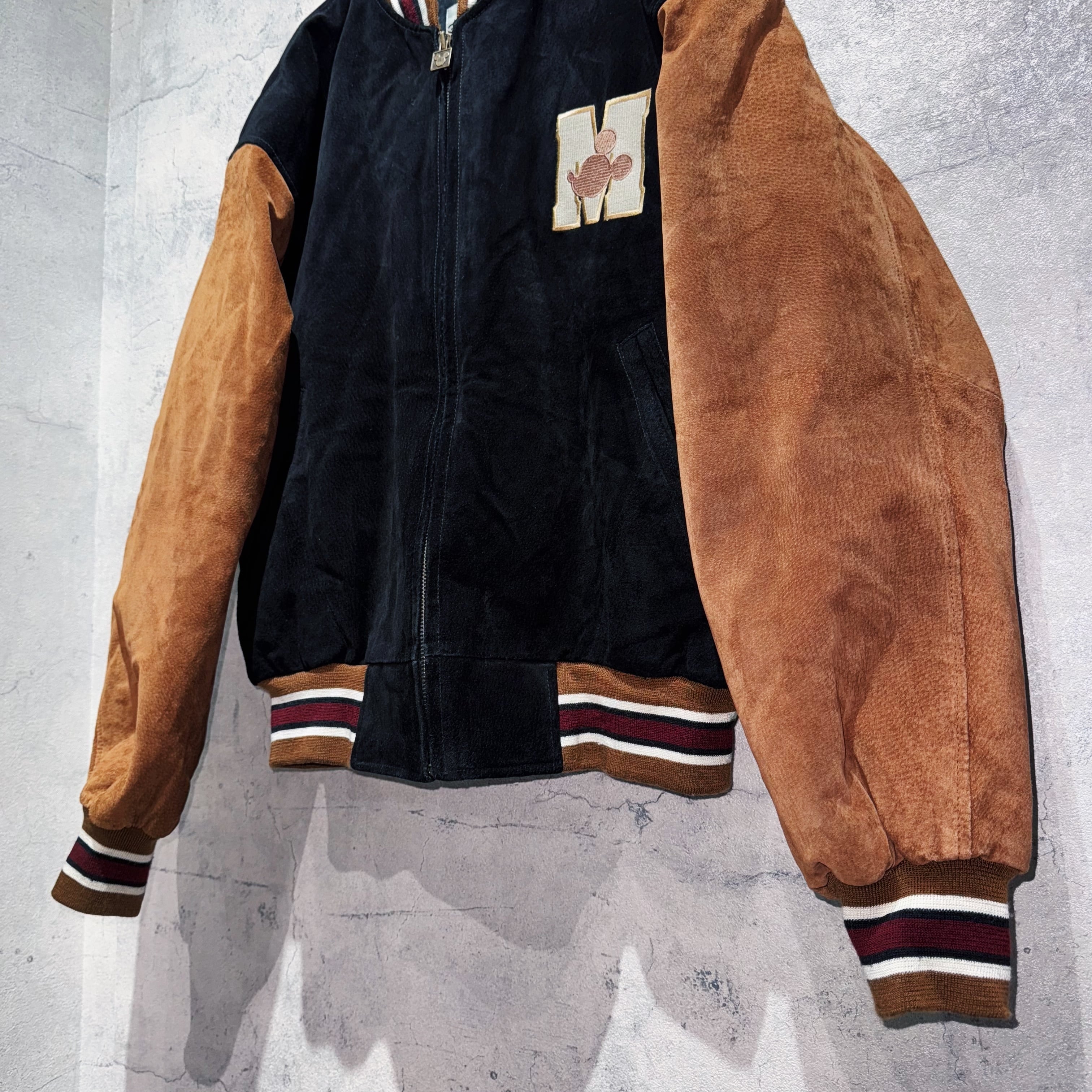 90's"Disney"Mickey Mouse embroidery design suède stadium jacket