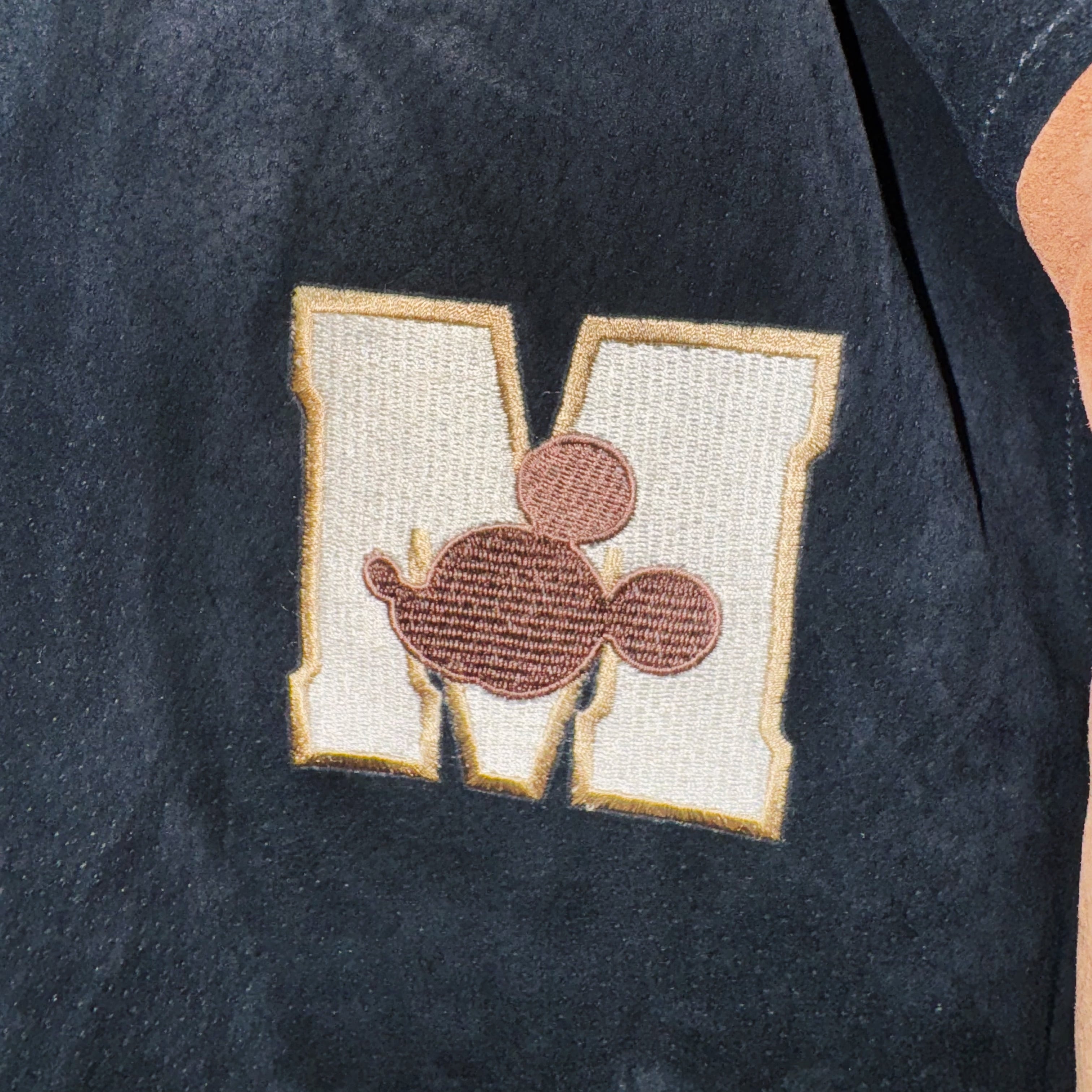 こちら90年代頃にディズニーストアから販売されていたスエード素材のスタジアムジャケット。ディズニー公式から本革が販売されていたなんて、今では考えられないですね。