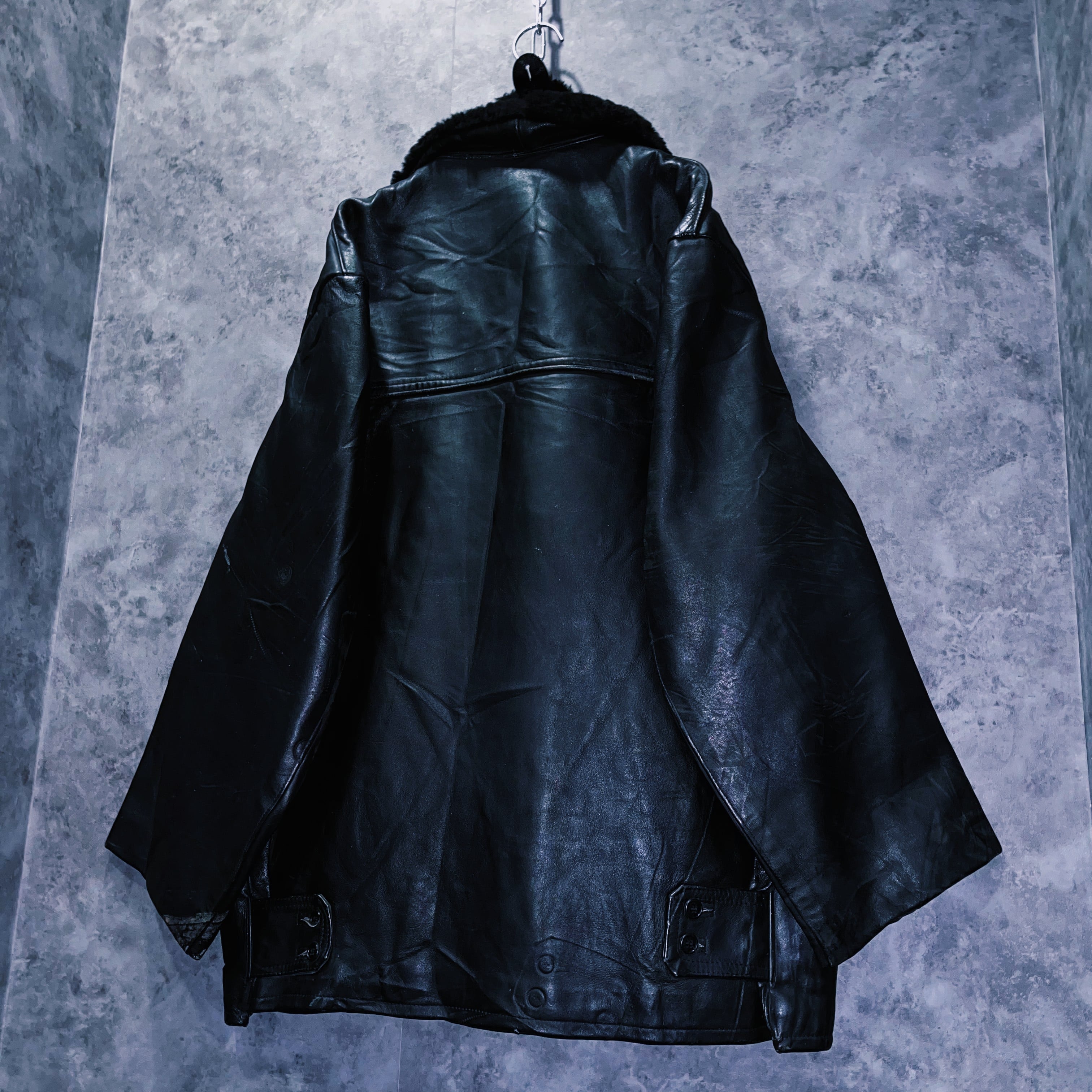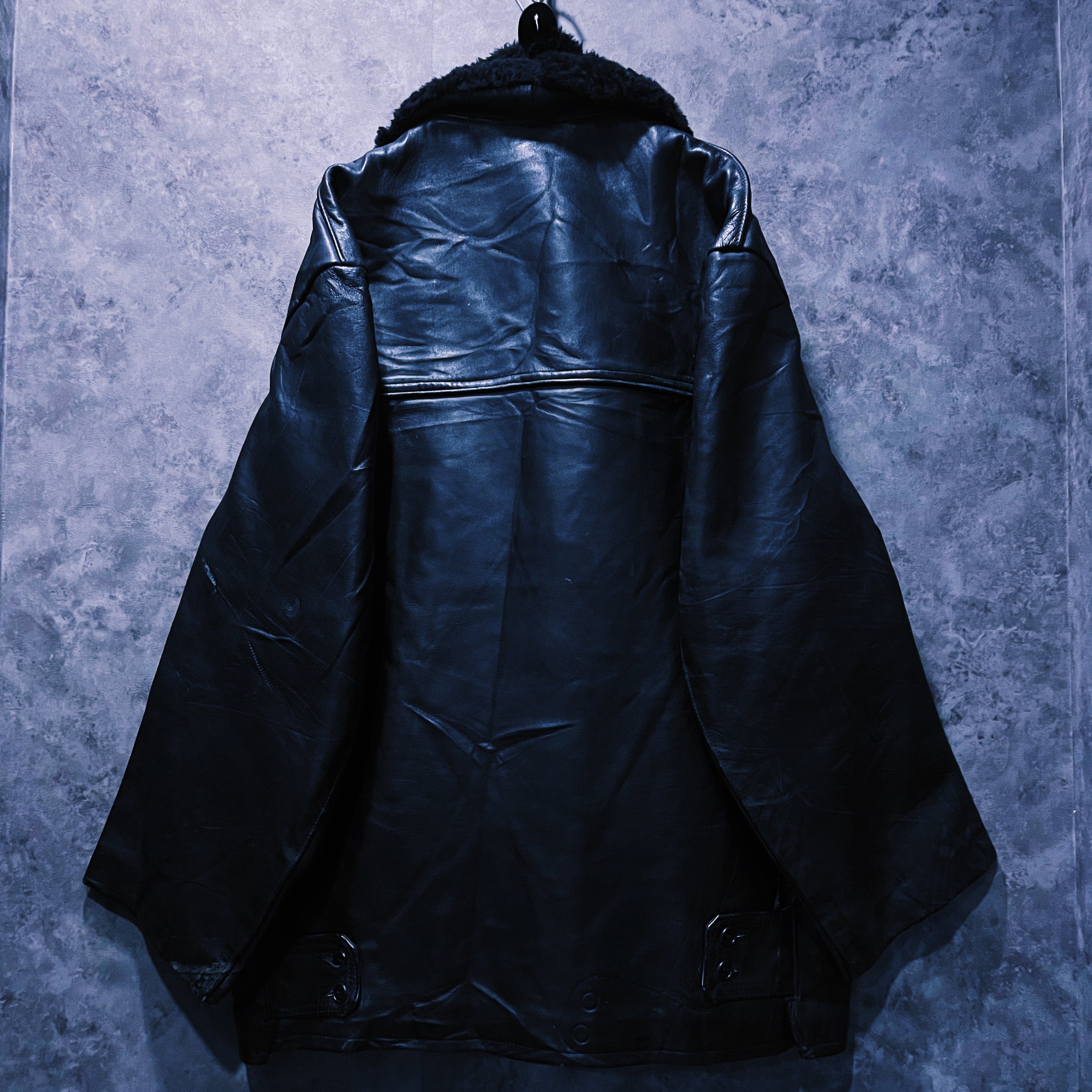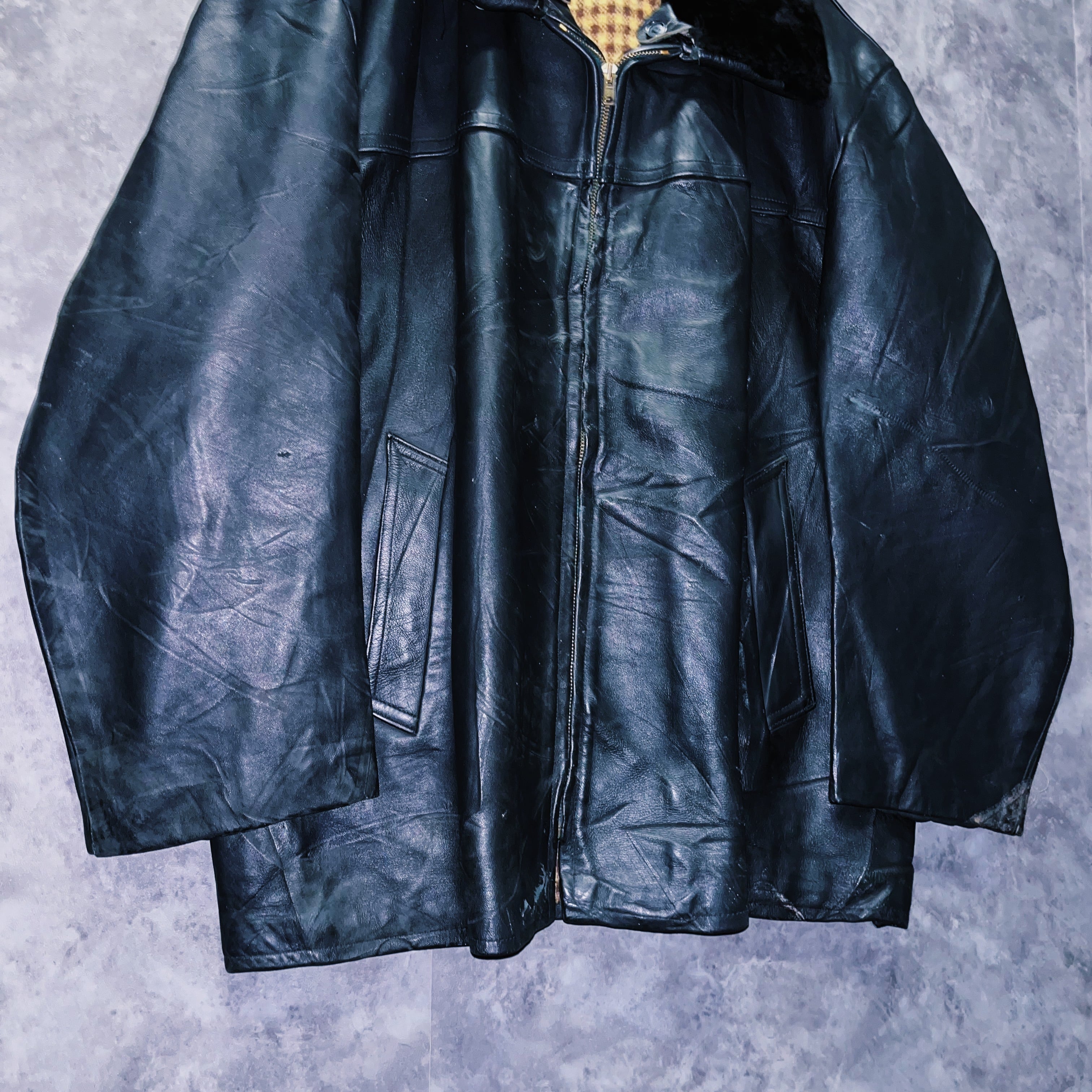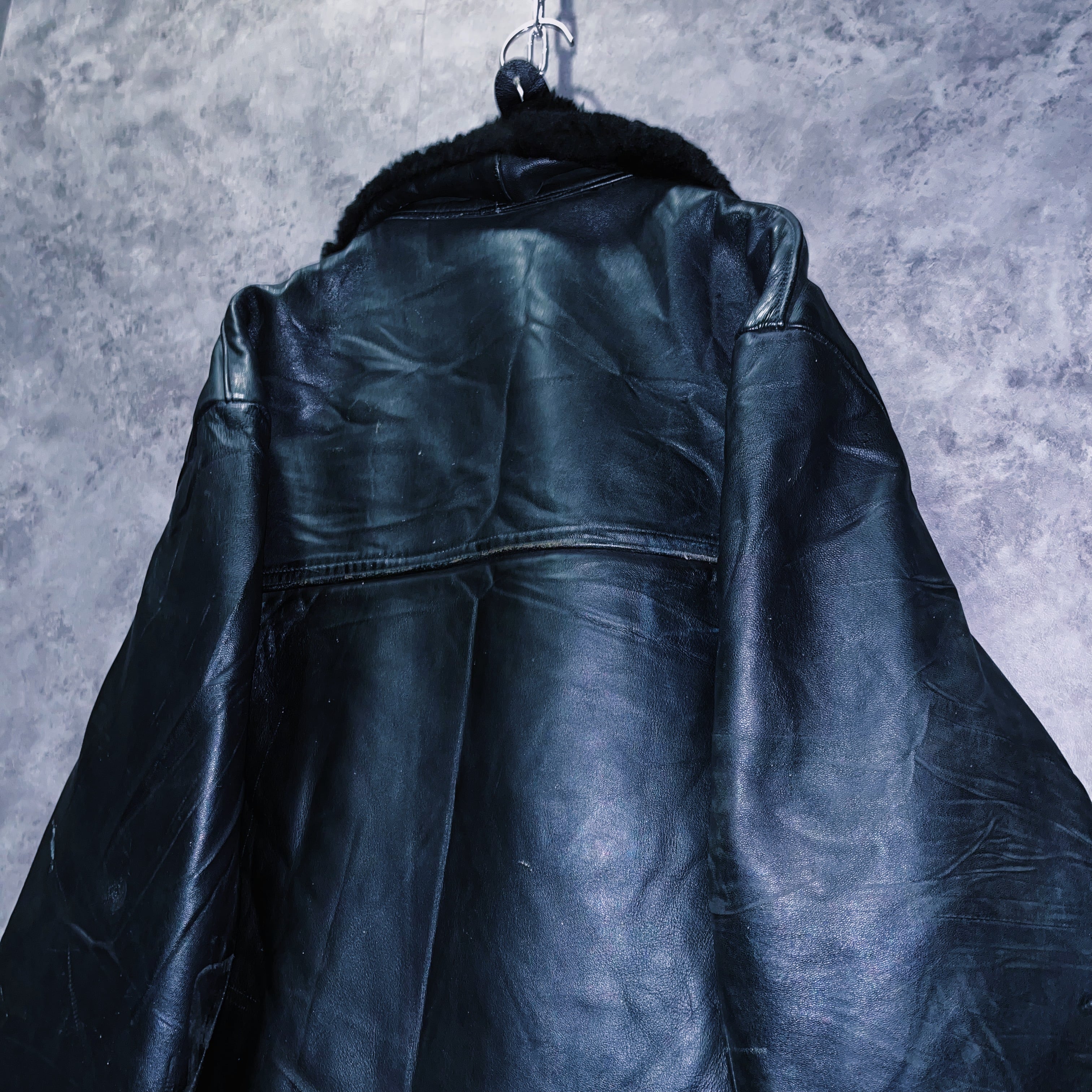 ヴィンテージボアラペルデザインジップアップレザージャケット