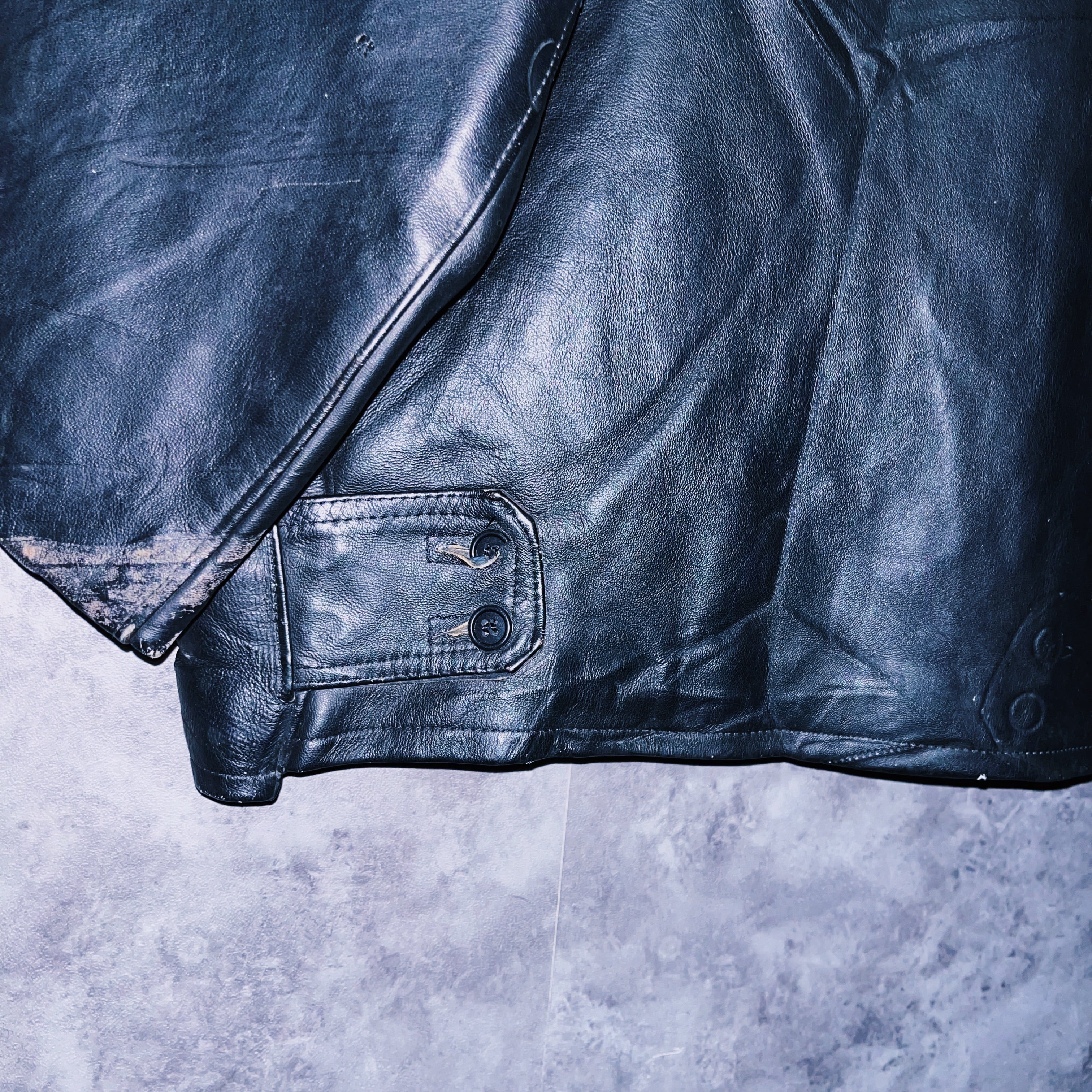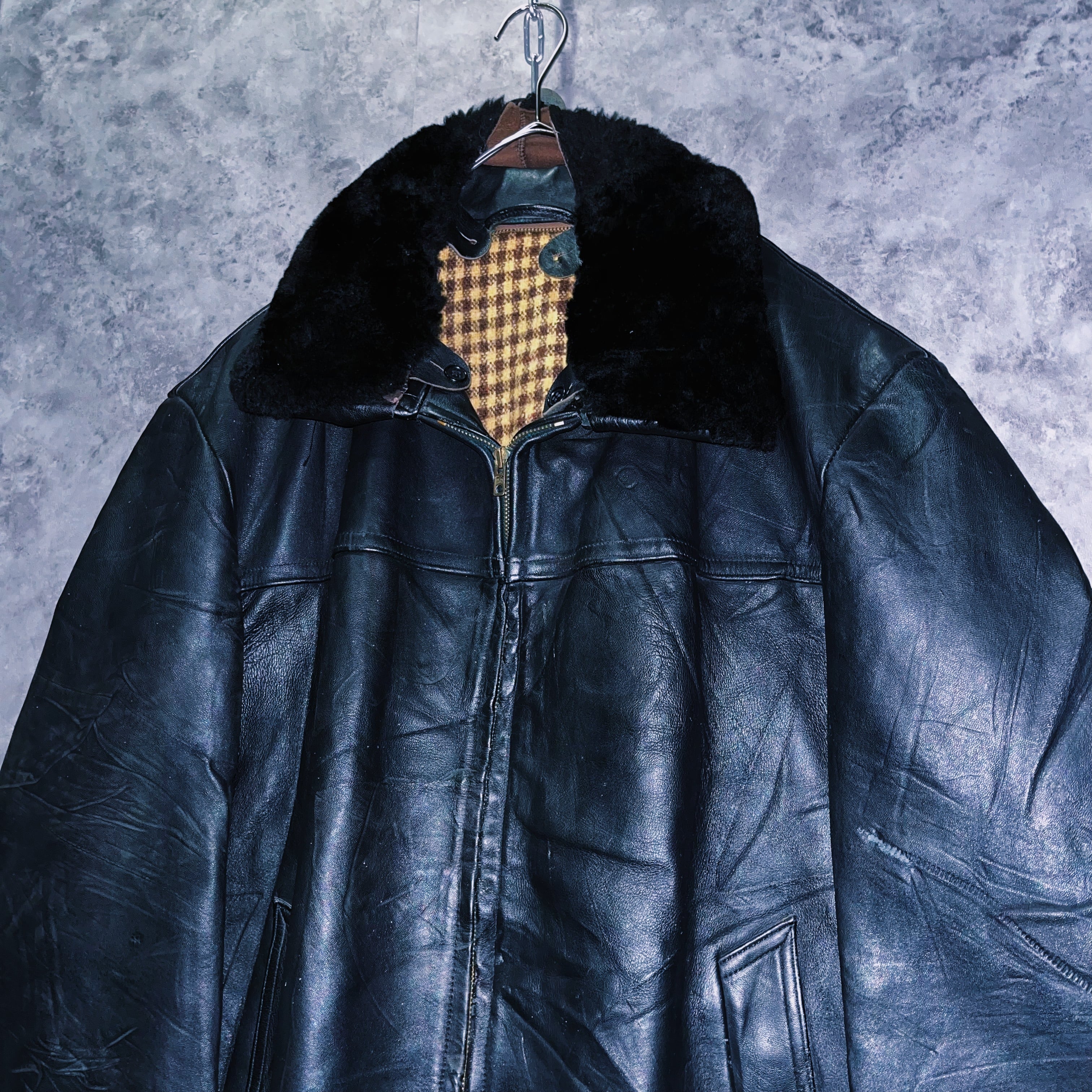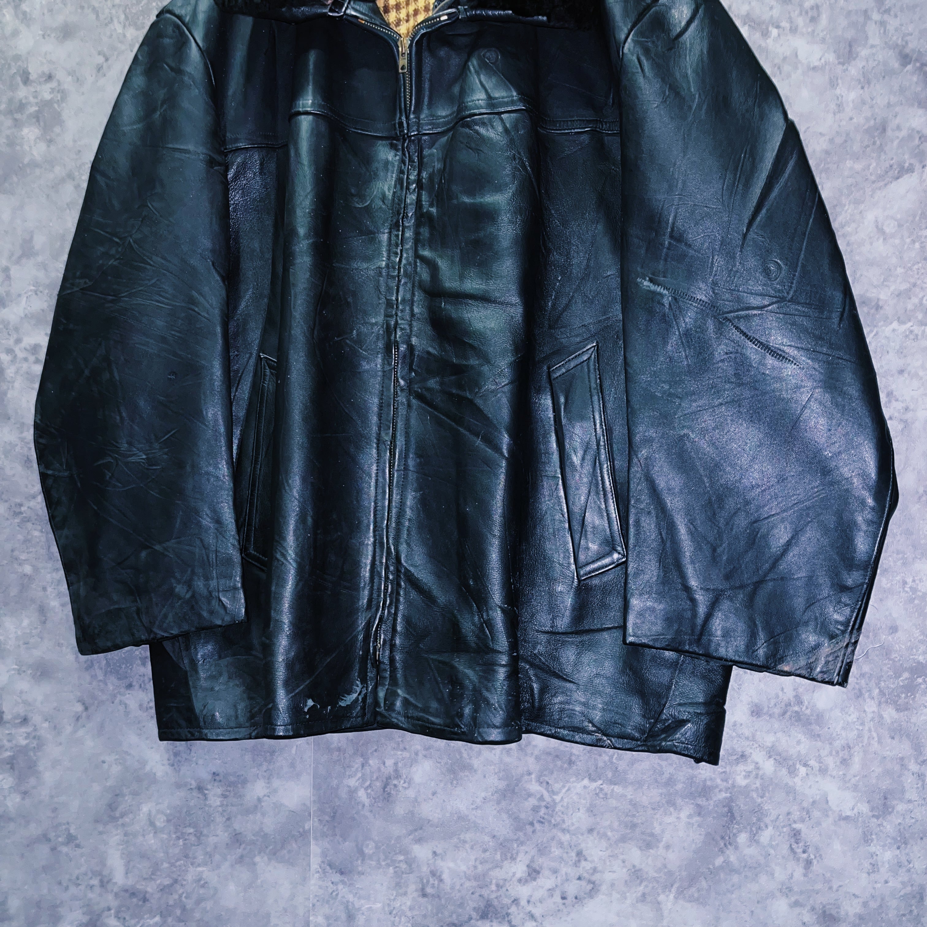 ヴィンテージボアラペルデザインジップアップレザージャケット