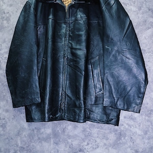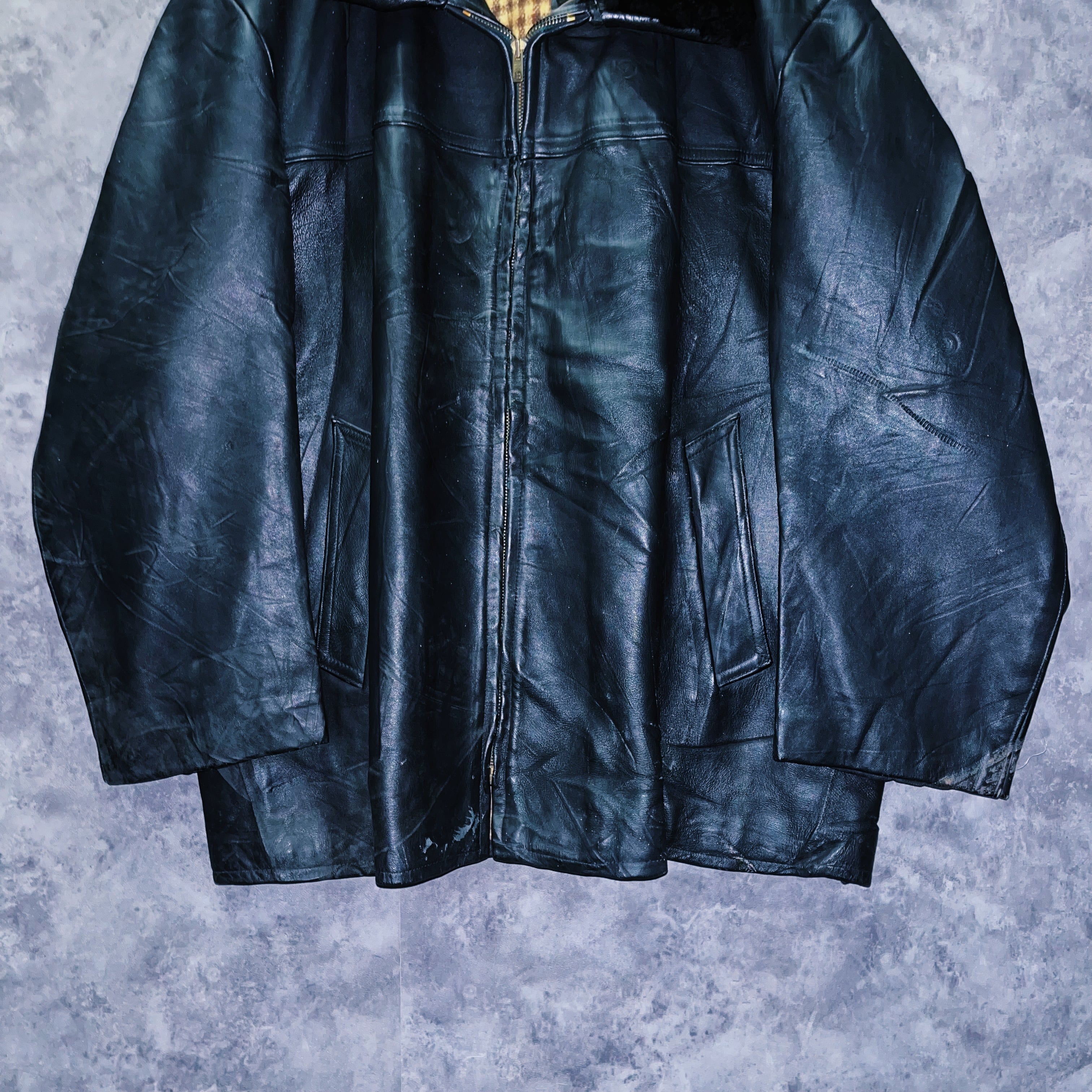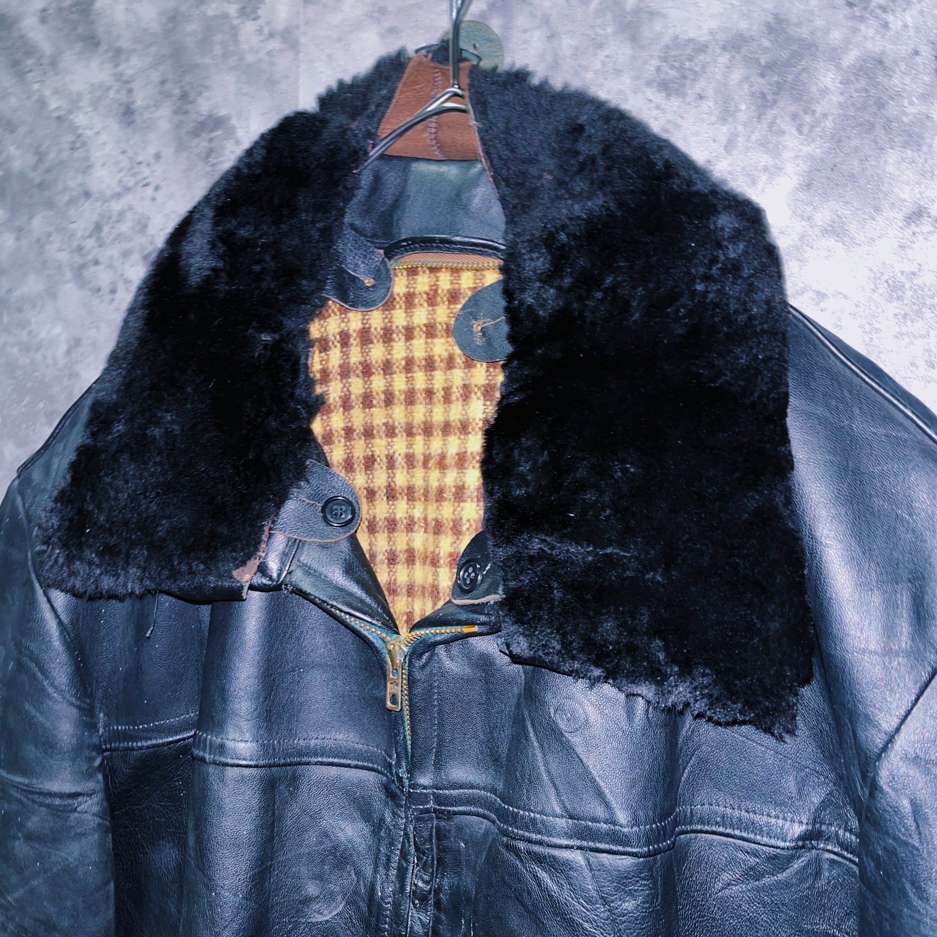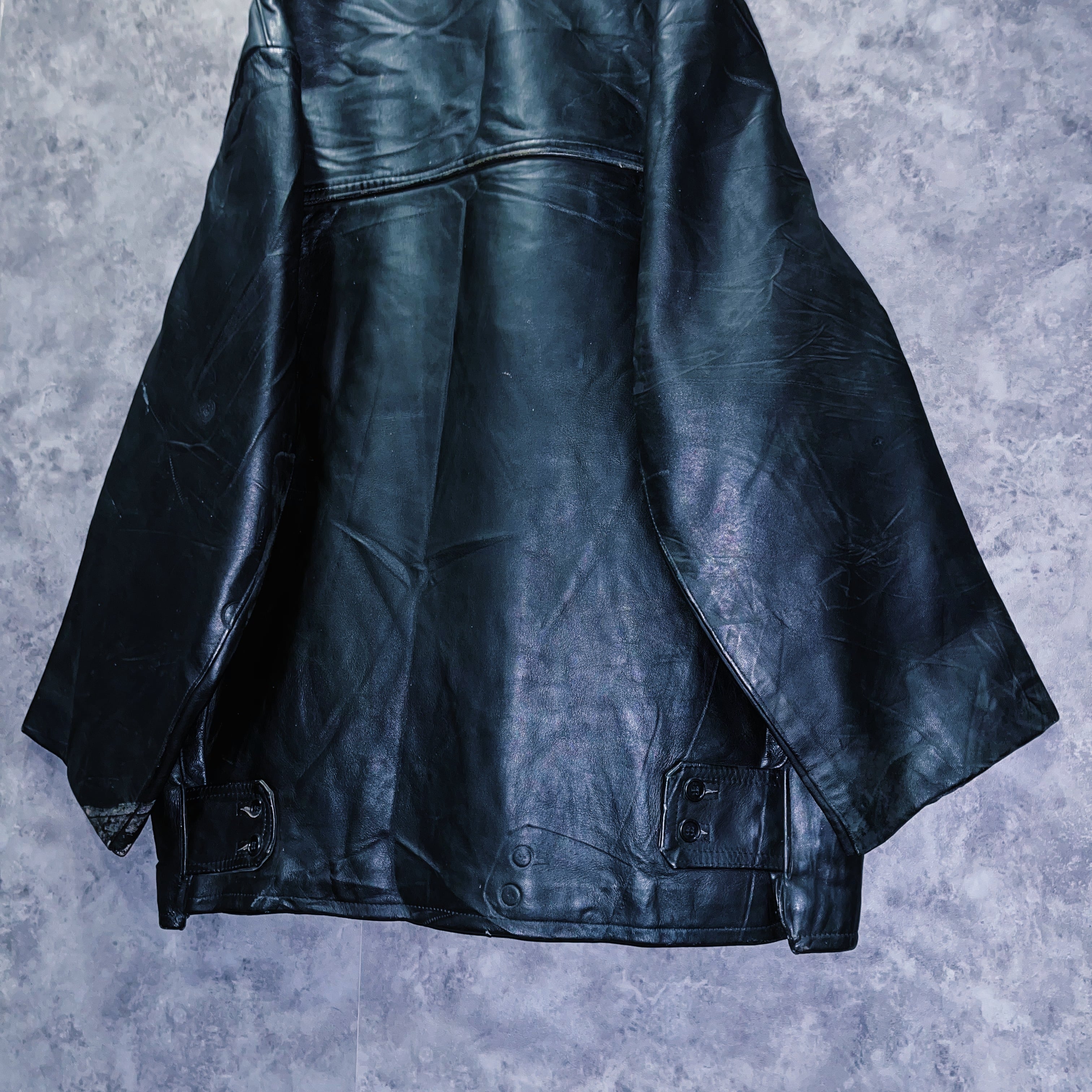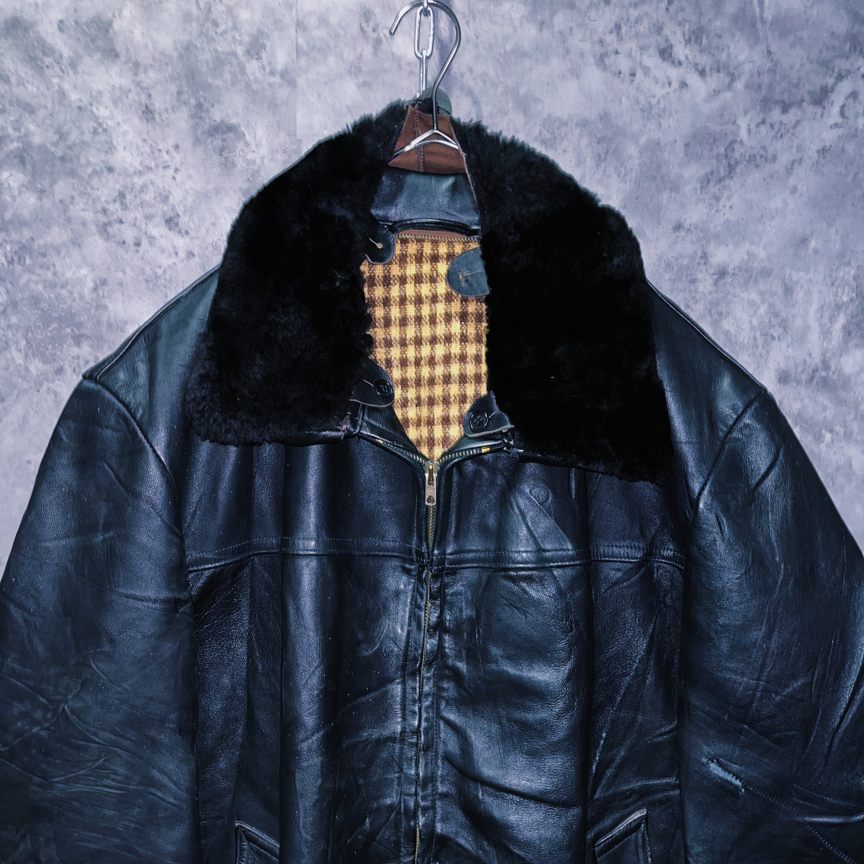 ヴィンテージボアラペルデザインジップアップレザージャケット