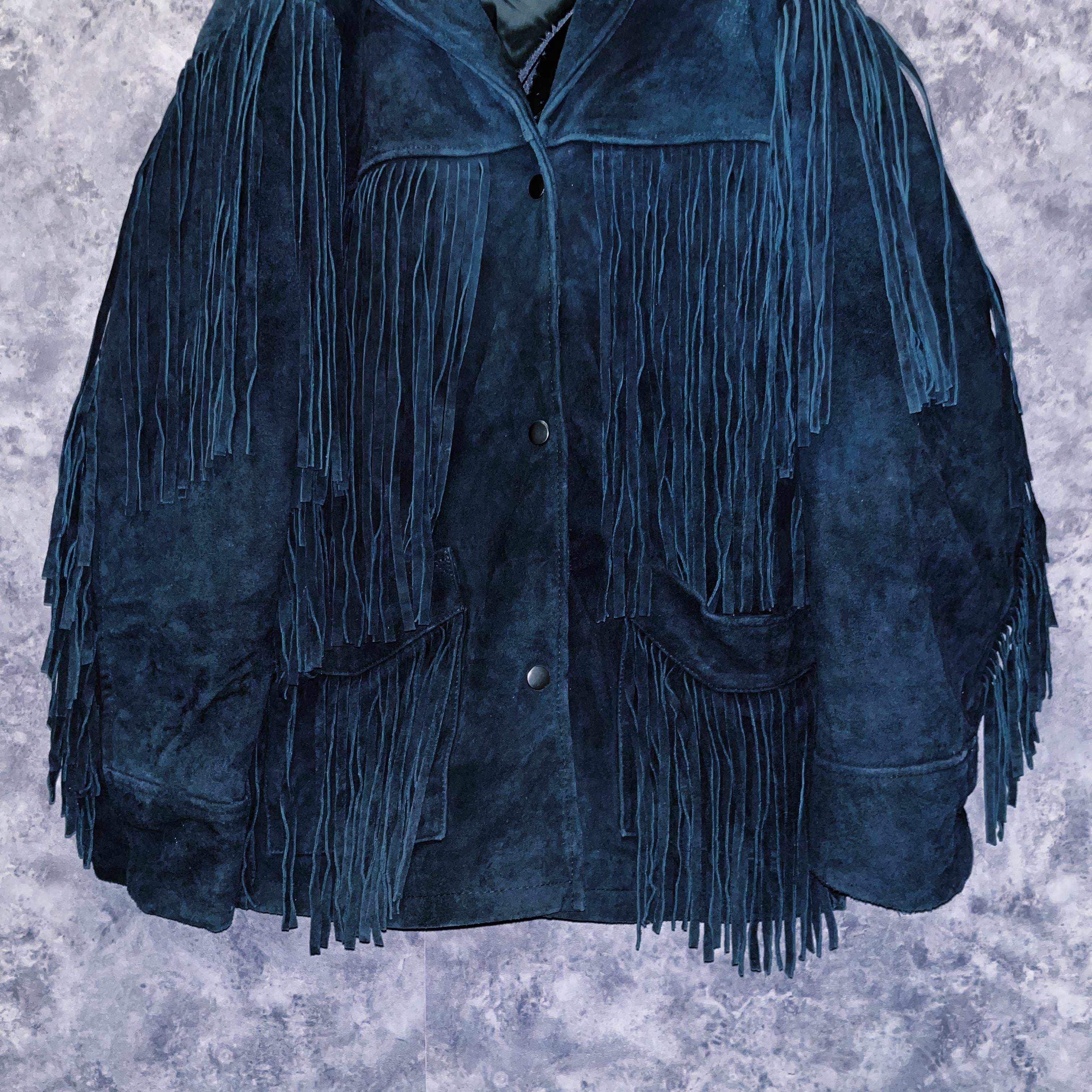 フリンジがデザインされたことでジャケット全体に華やかさがプラスされ、当時人気になったことがわかる70‘sの質感を楽しめます。