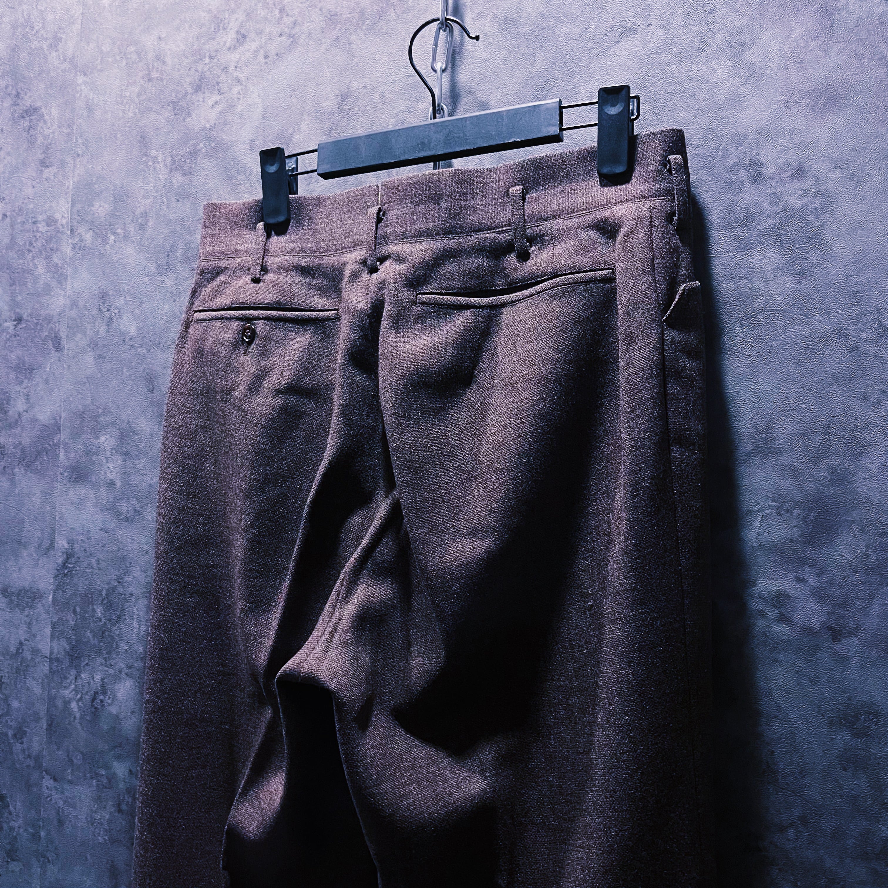 重みのあるブラウンカラーのセットアップ。重厚感漂うカラーは独特な質感を帯びており、カラーはシンプルながらも着る人の格を上げてくれるような引き締まった仕上がり。
