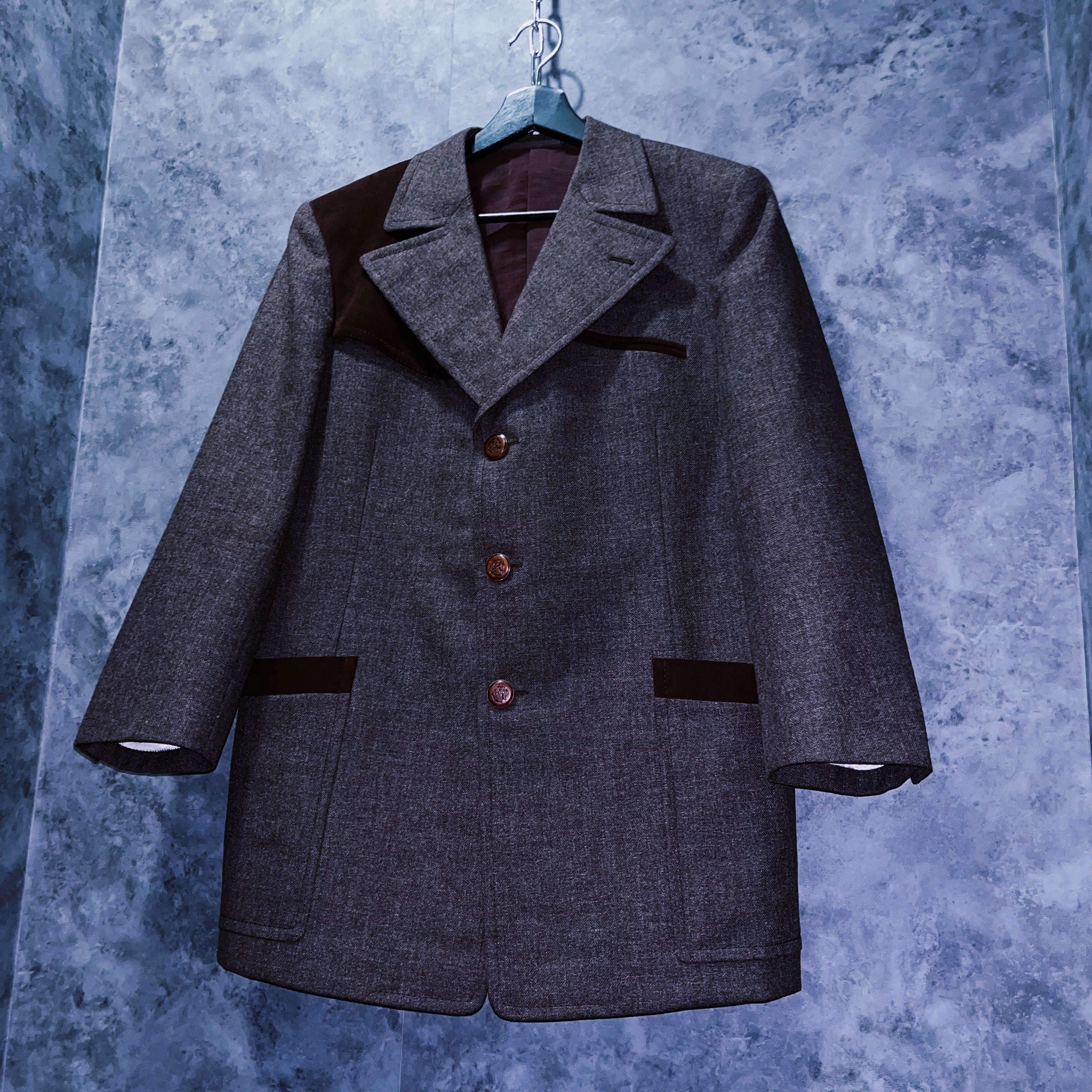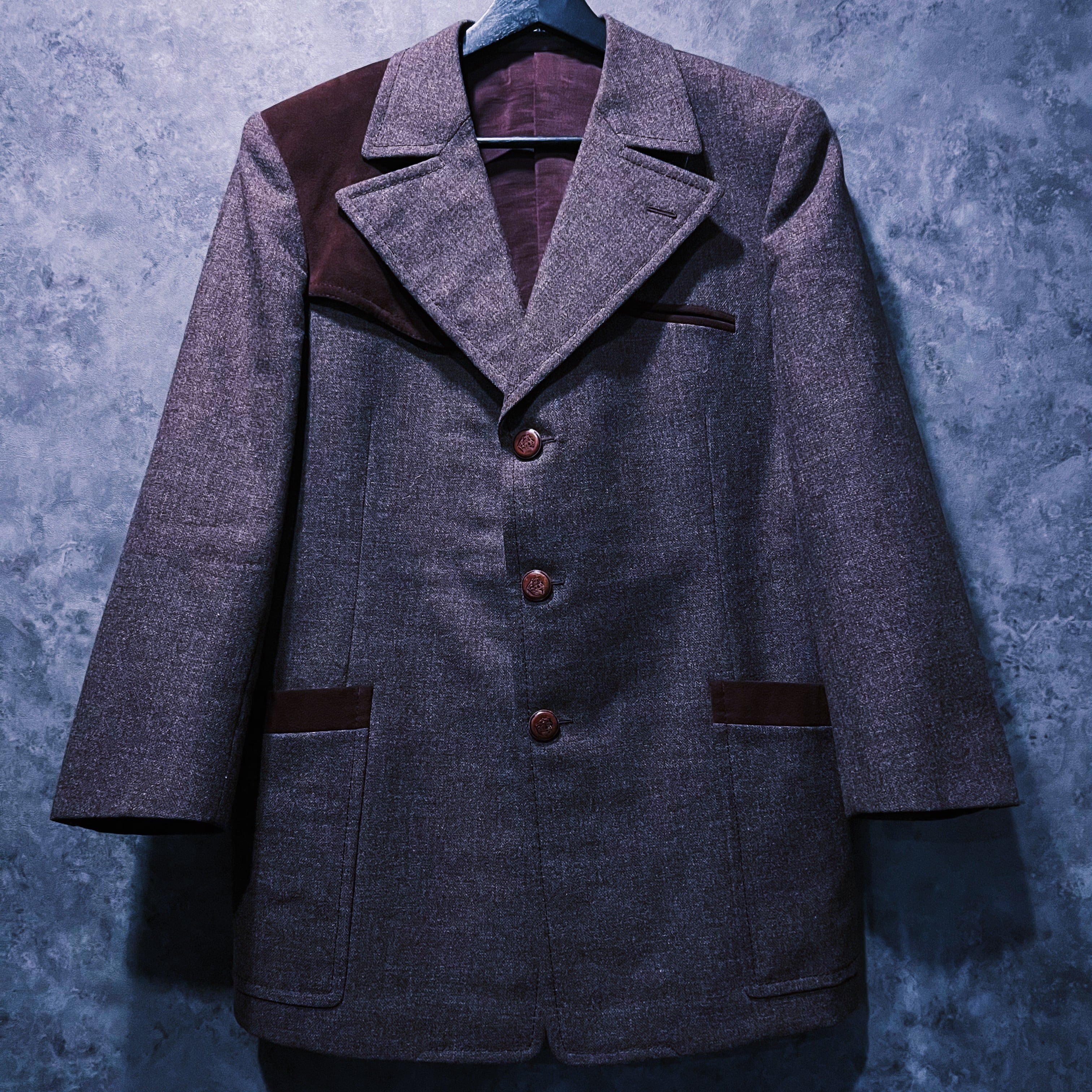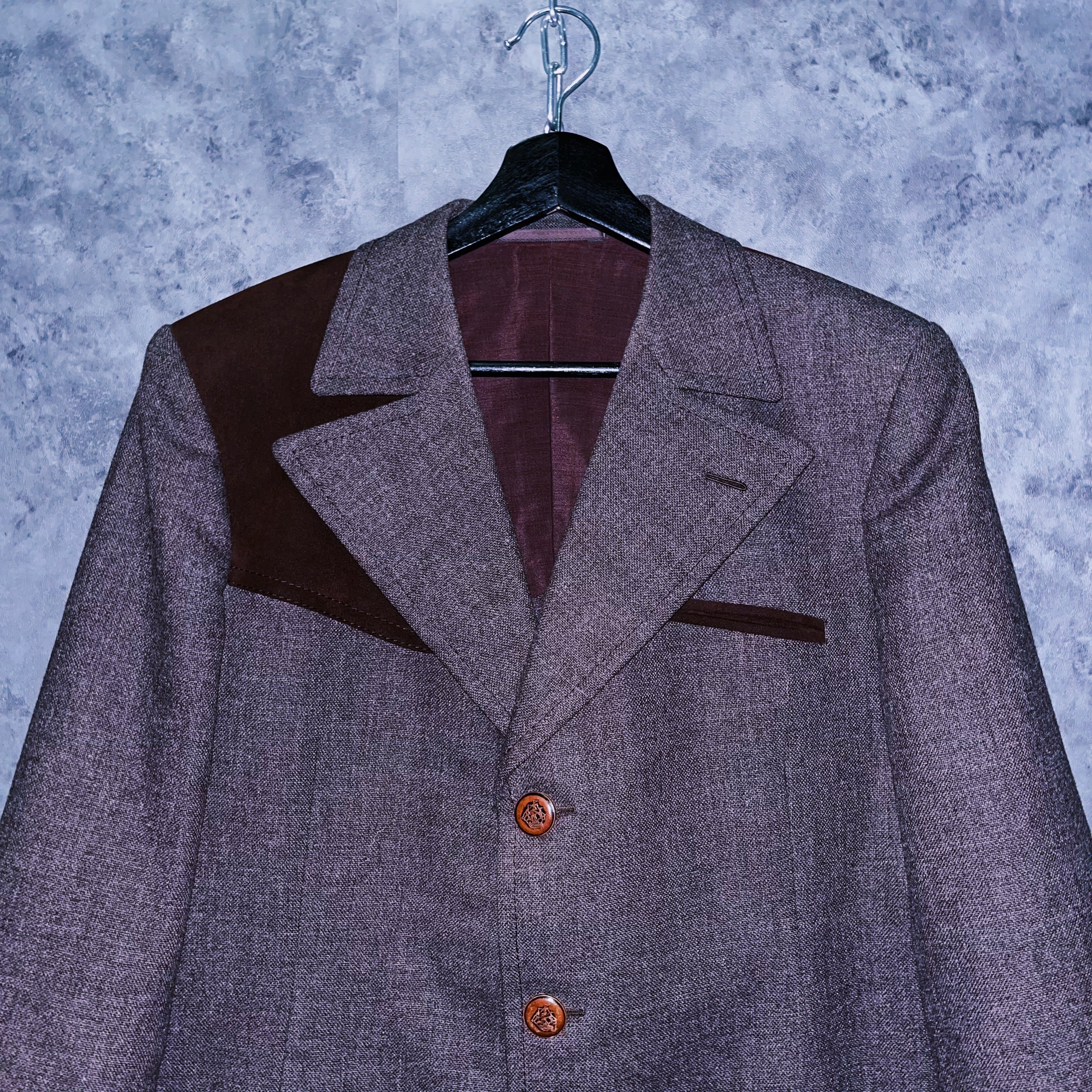 【 doppio】90’s vintage brown color wood botão single breasted set up