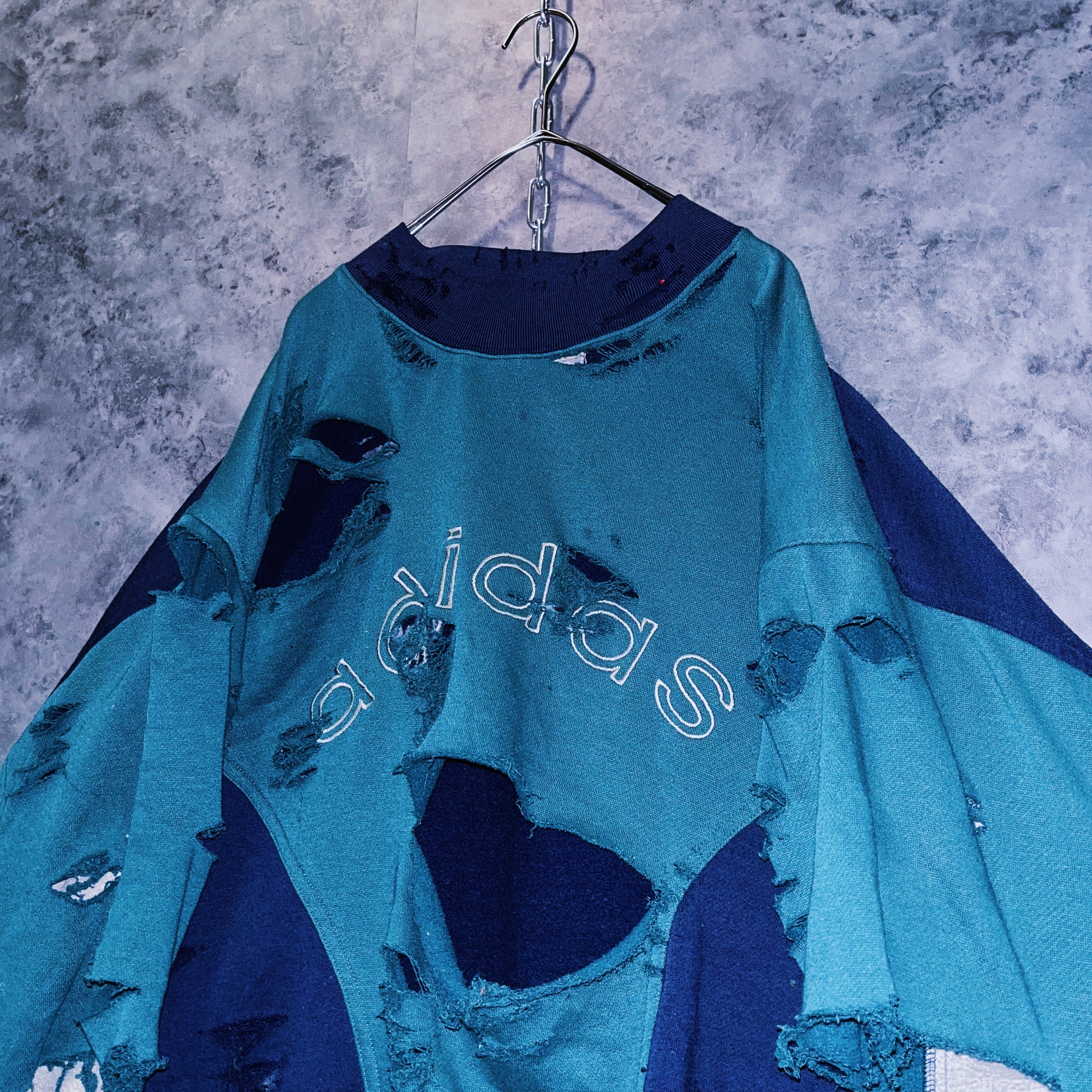 【doppio】vintage “adidas” logo embroidery design boro custom sweat pullover