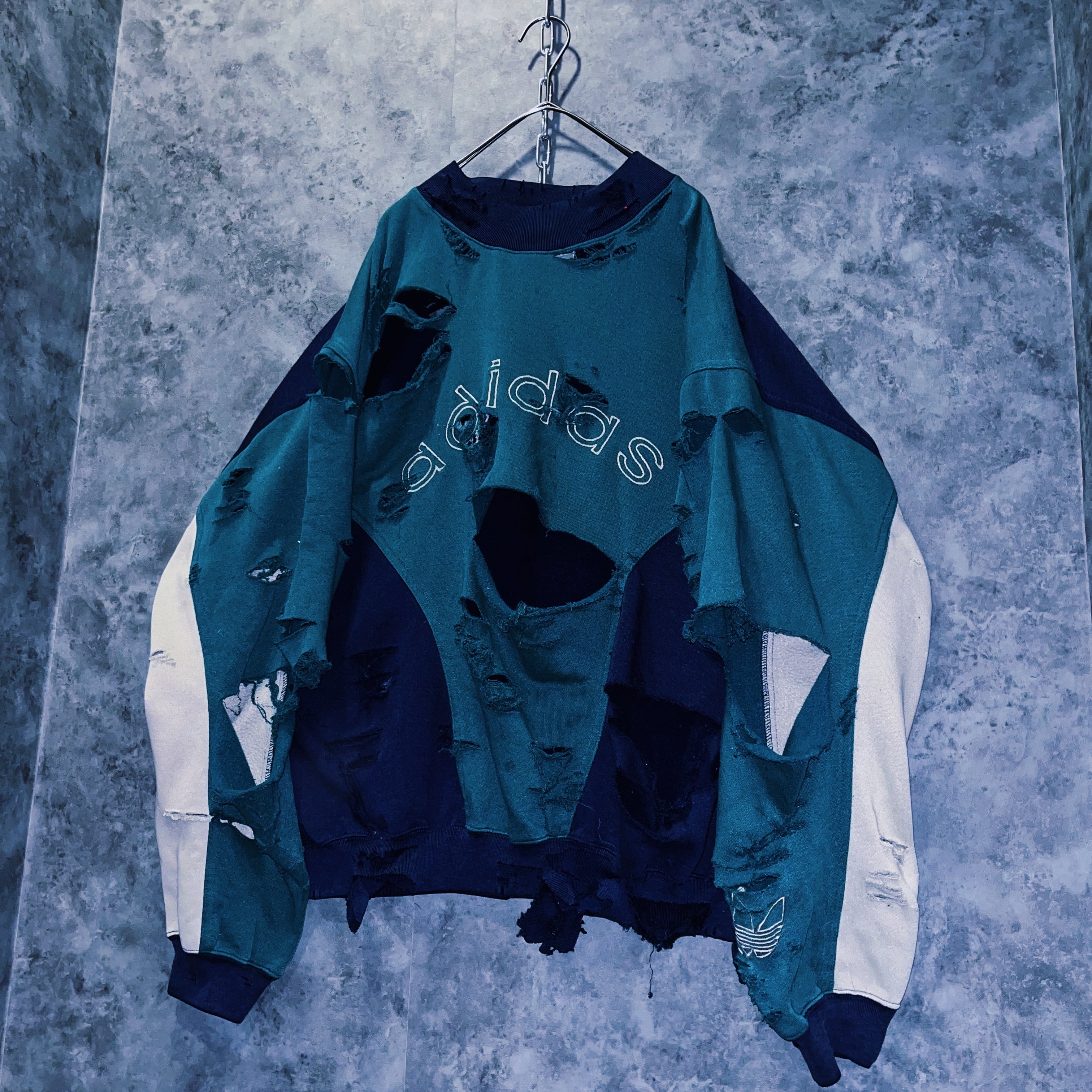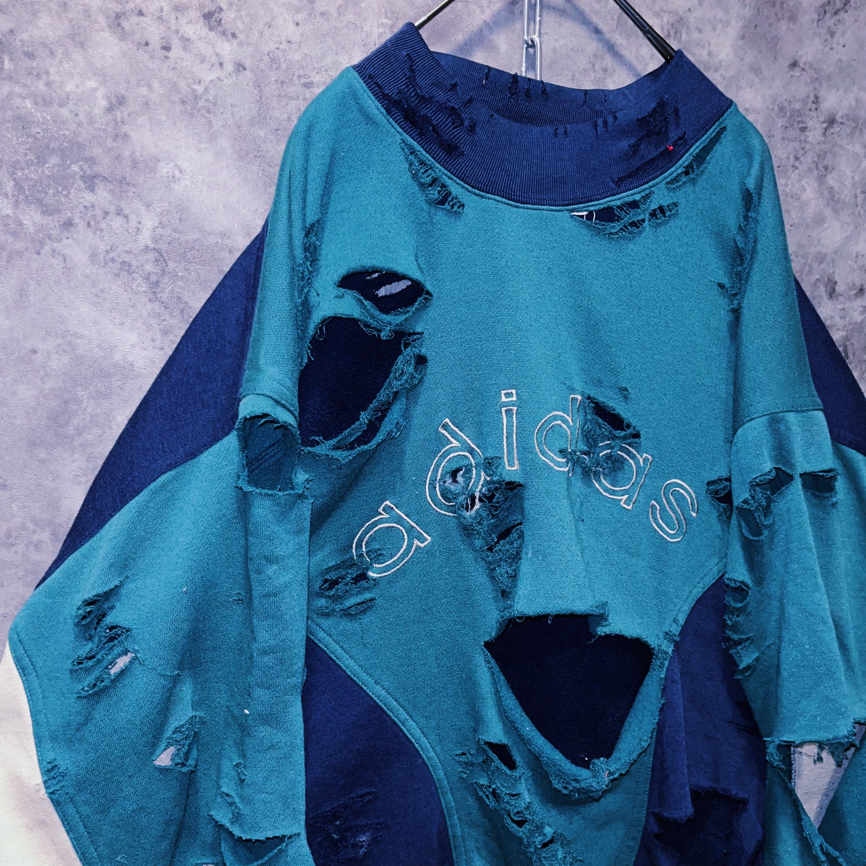 ヴィンテージ“adidas”ロゴエンブロイダリーデザインボロカスタムスウェットプルオーバー
