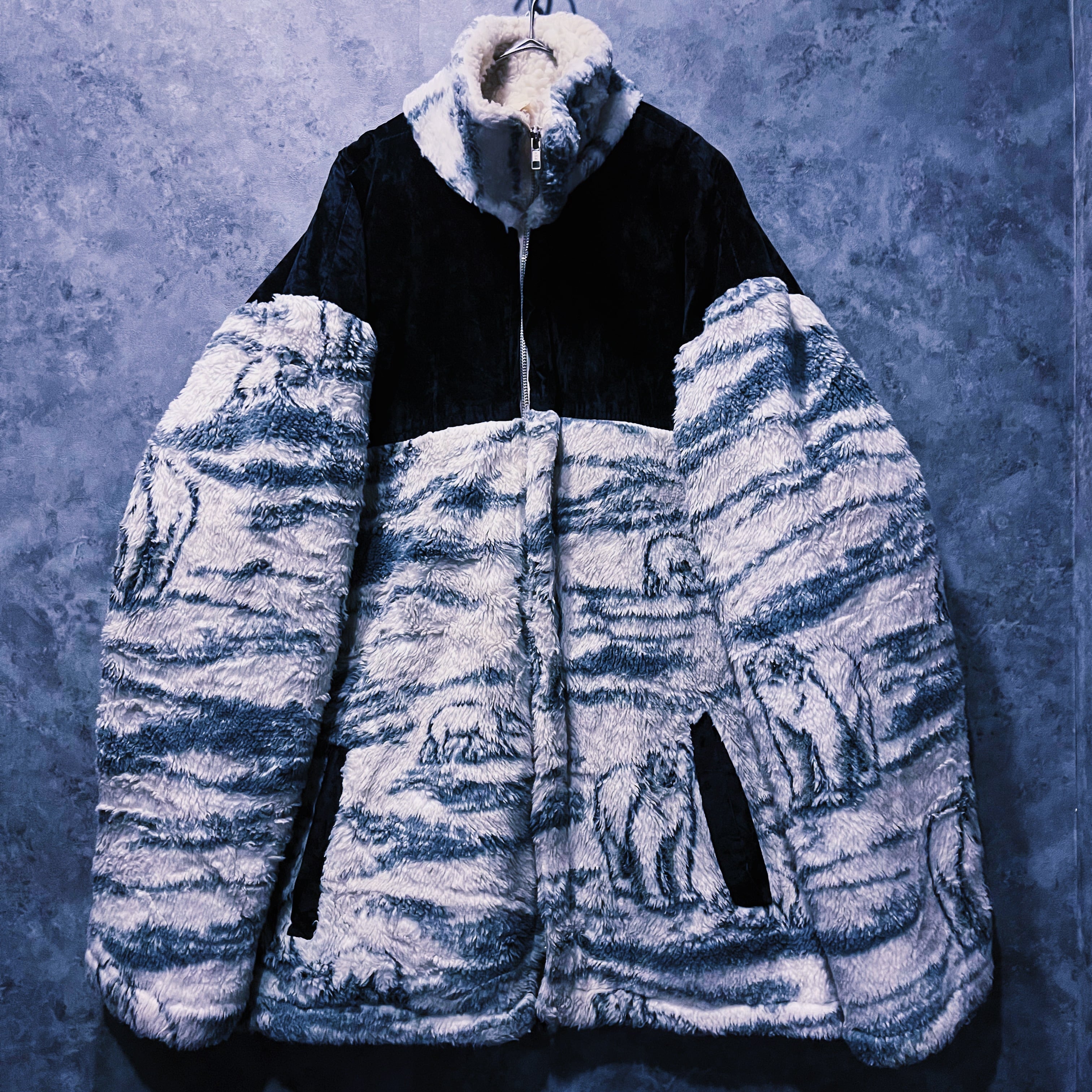 フワッフワの極上ボアを採用したボディにと 美しい北極熊の風景画を描いた古着らしく当店好みのアーティスティックなジャケット。