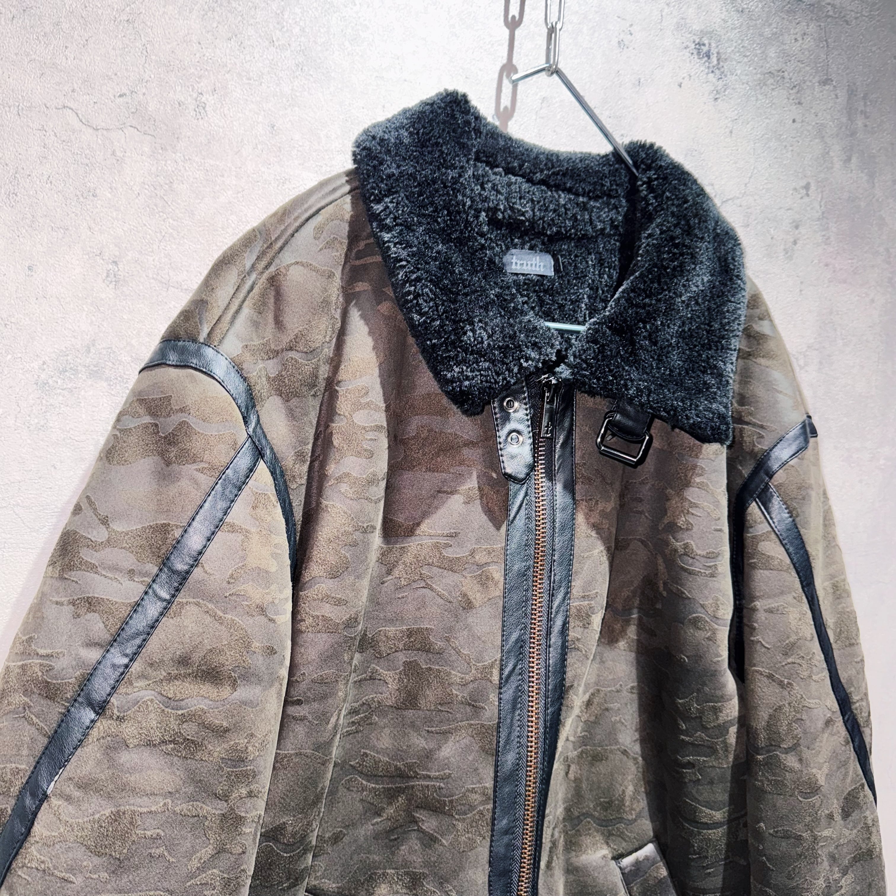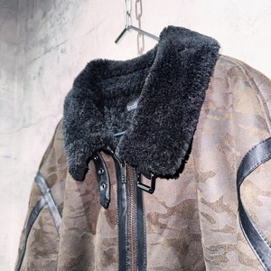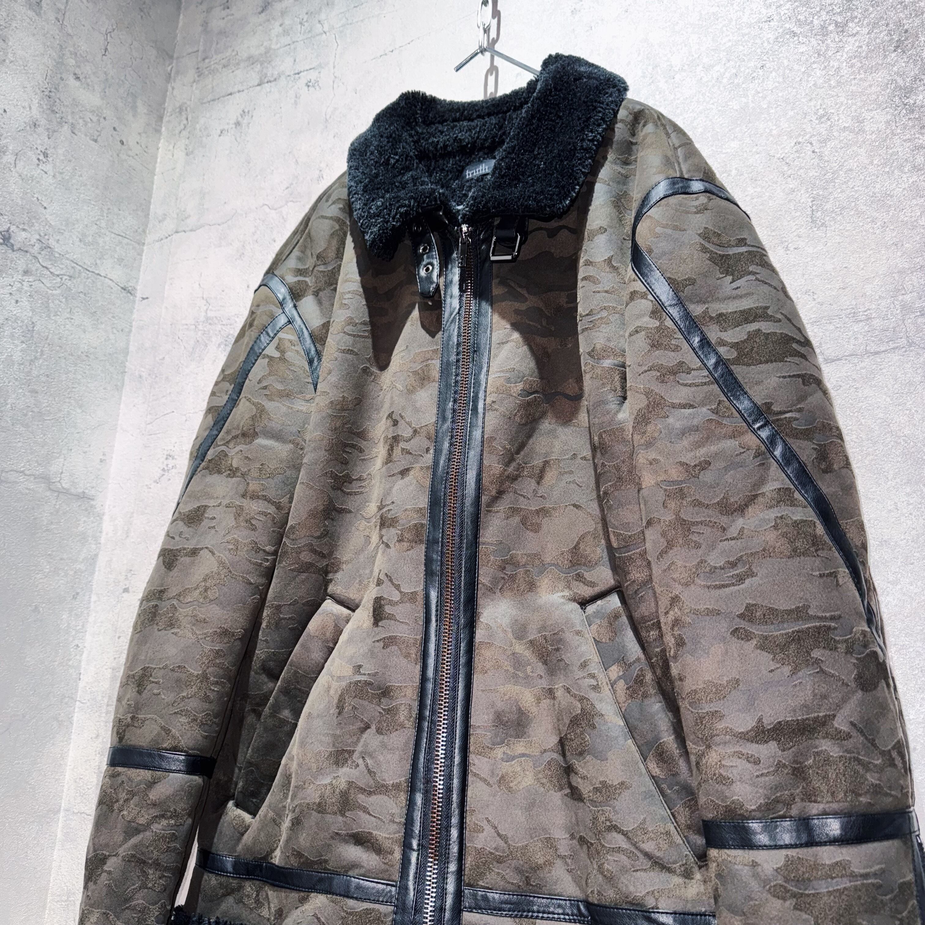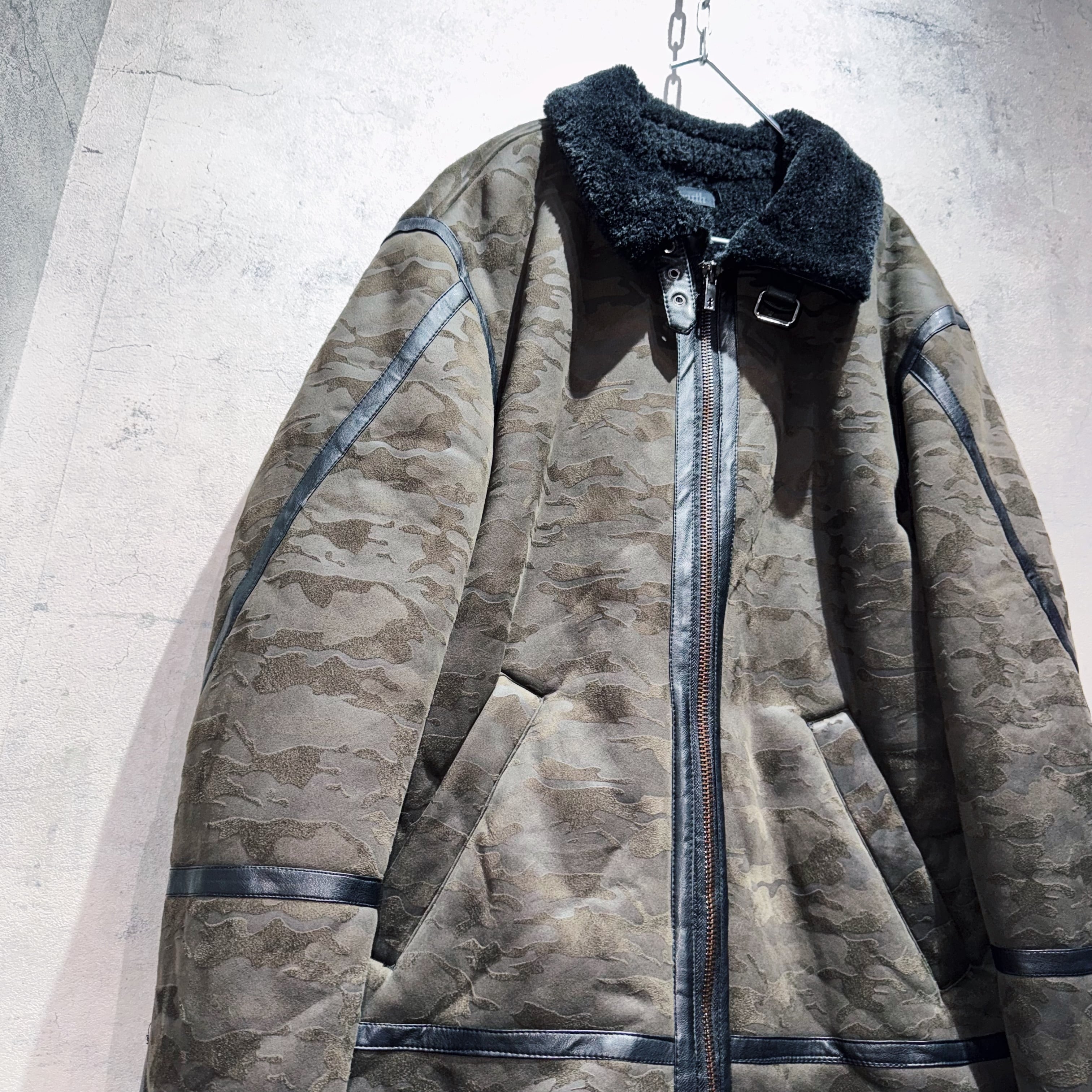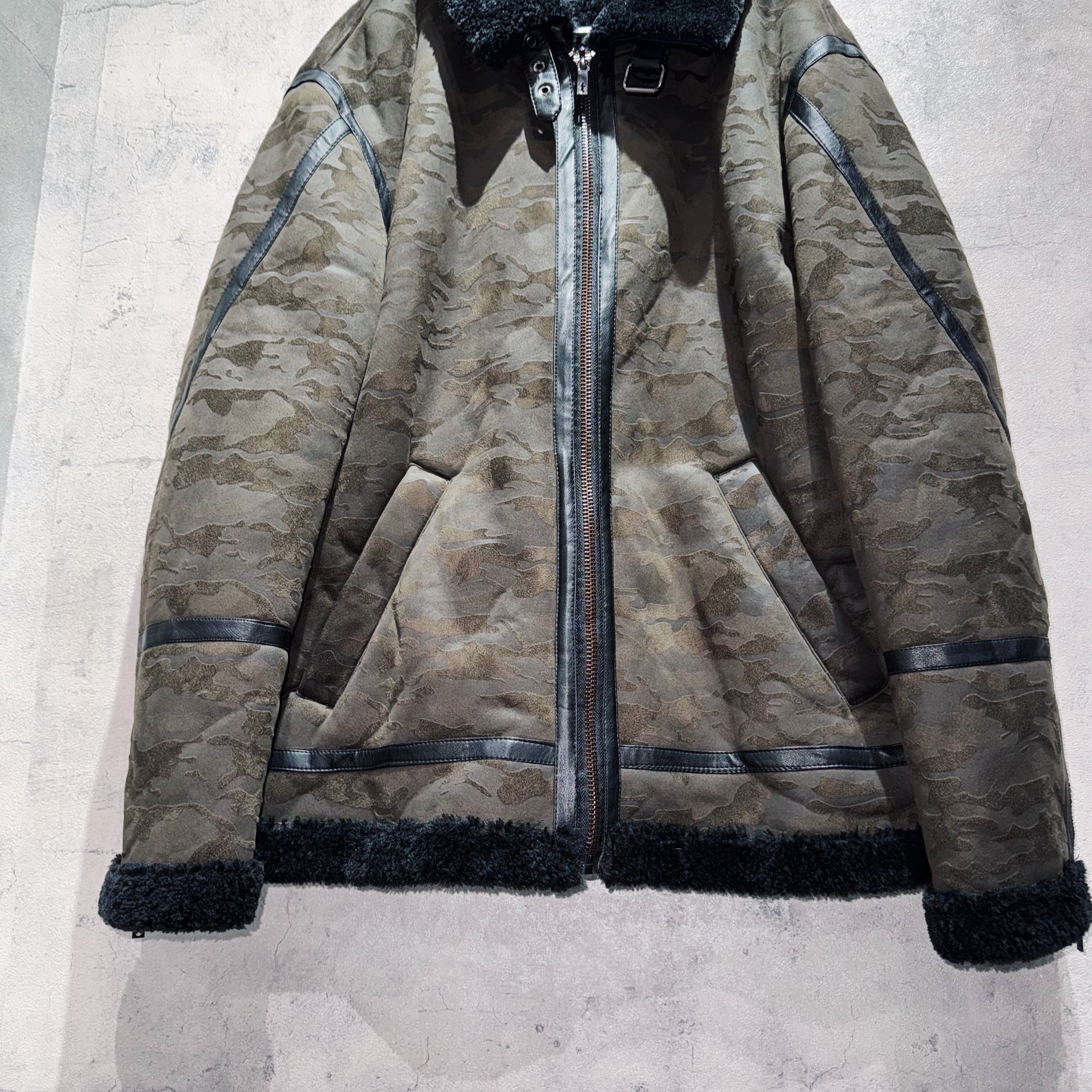 冬アウターの代表格である"B-3"タイプのムートンジャケット。そのボディにカモフラージュ柄を落とし込んだテクニカルな1着。