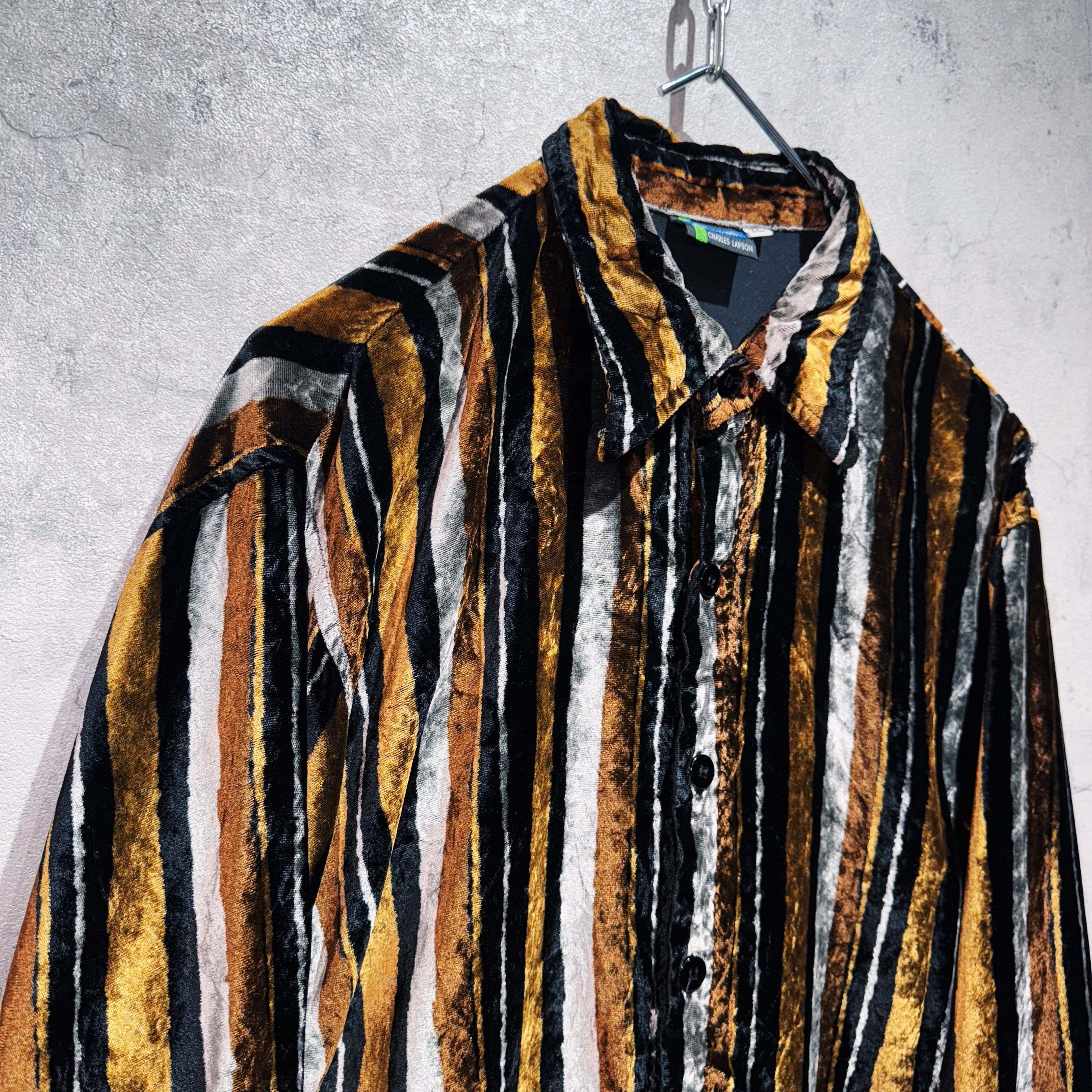 ヴィンテージベルベットマテリアルストライプパターンシャツ