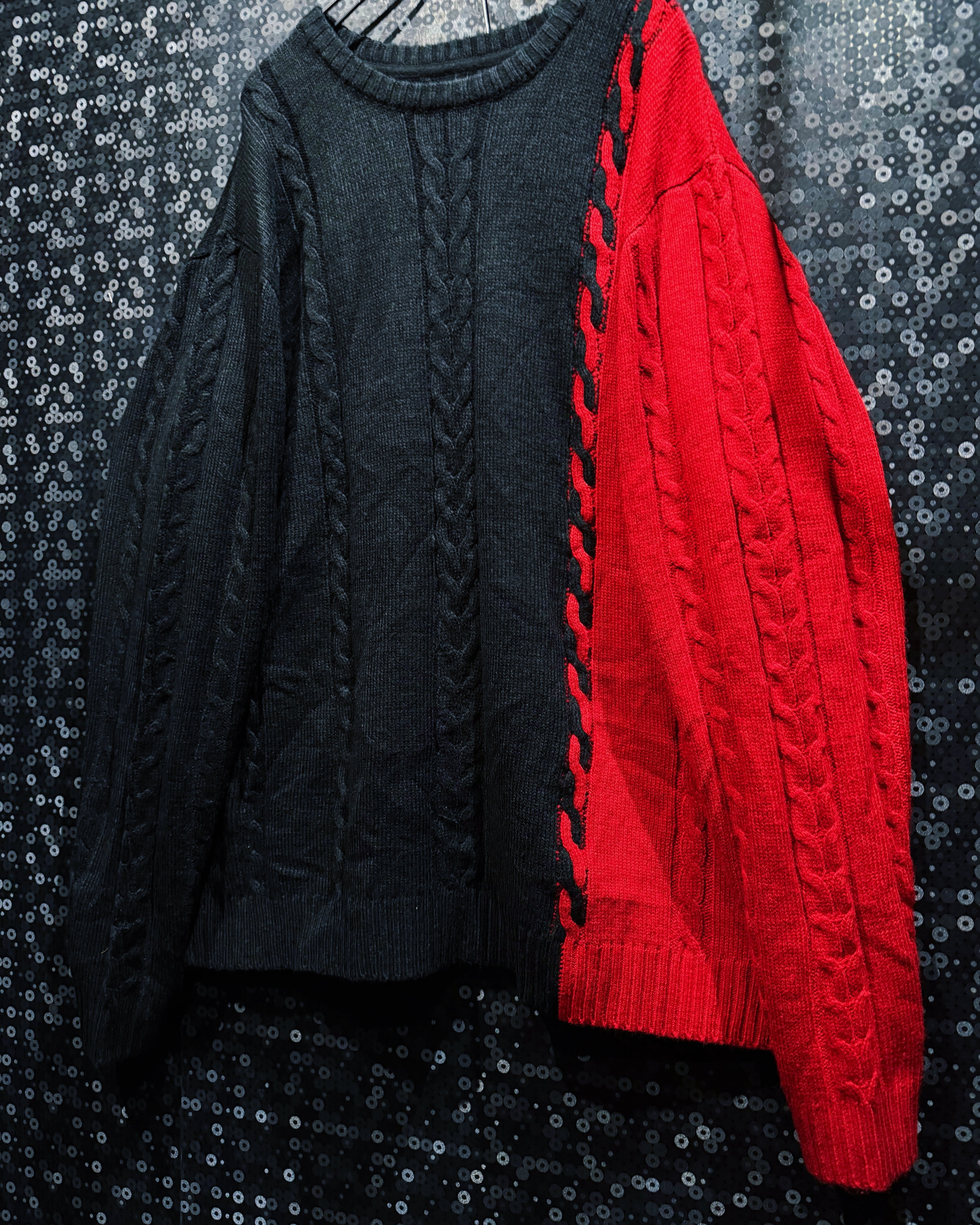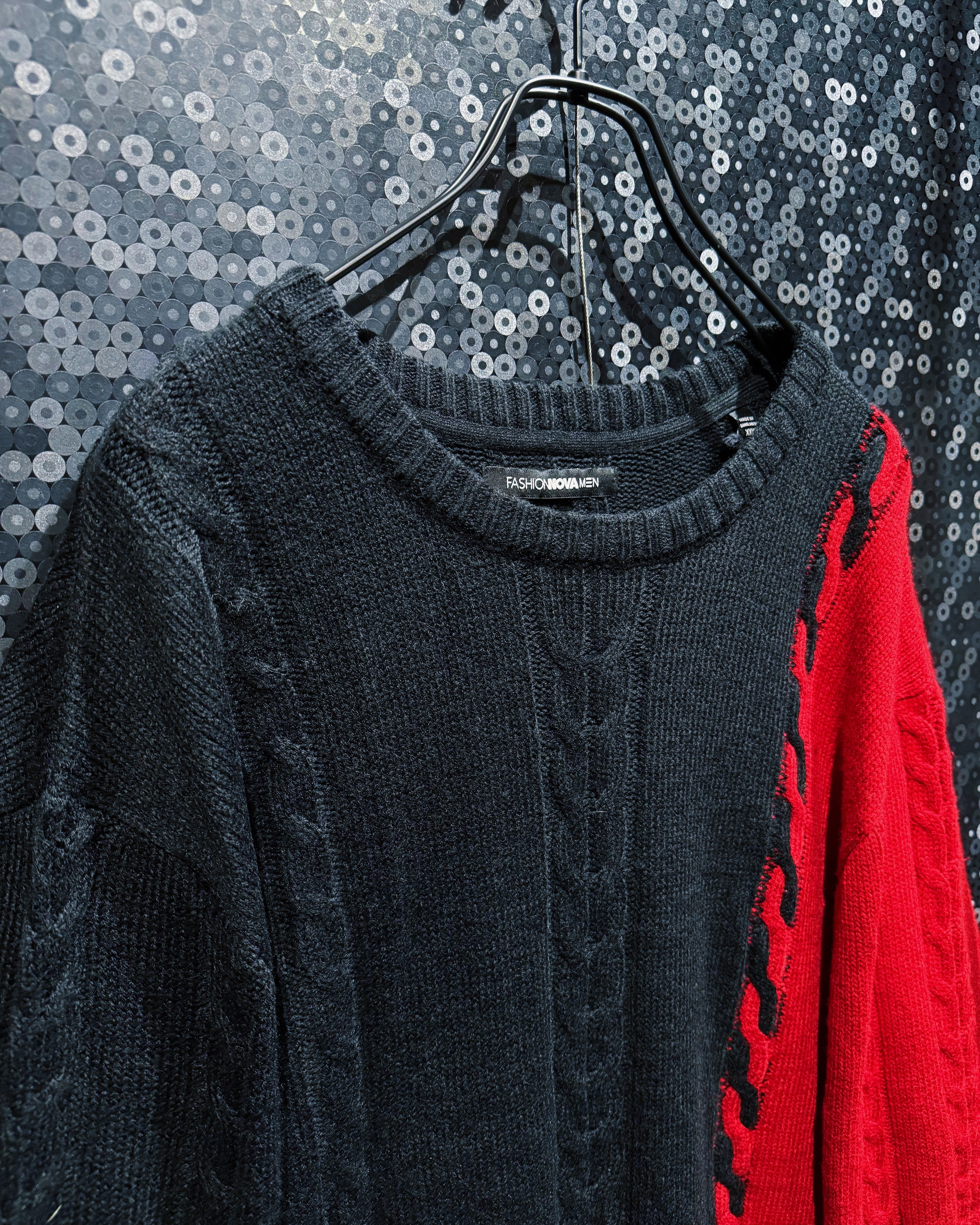 ブラック×レッドの大胆な切り替えが主役になった、FASHION NOVA MENによるツートーンケーブルニット。