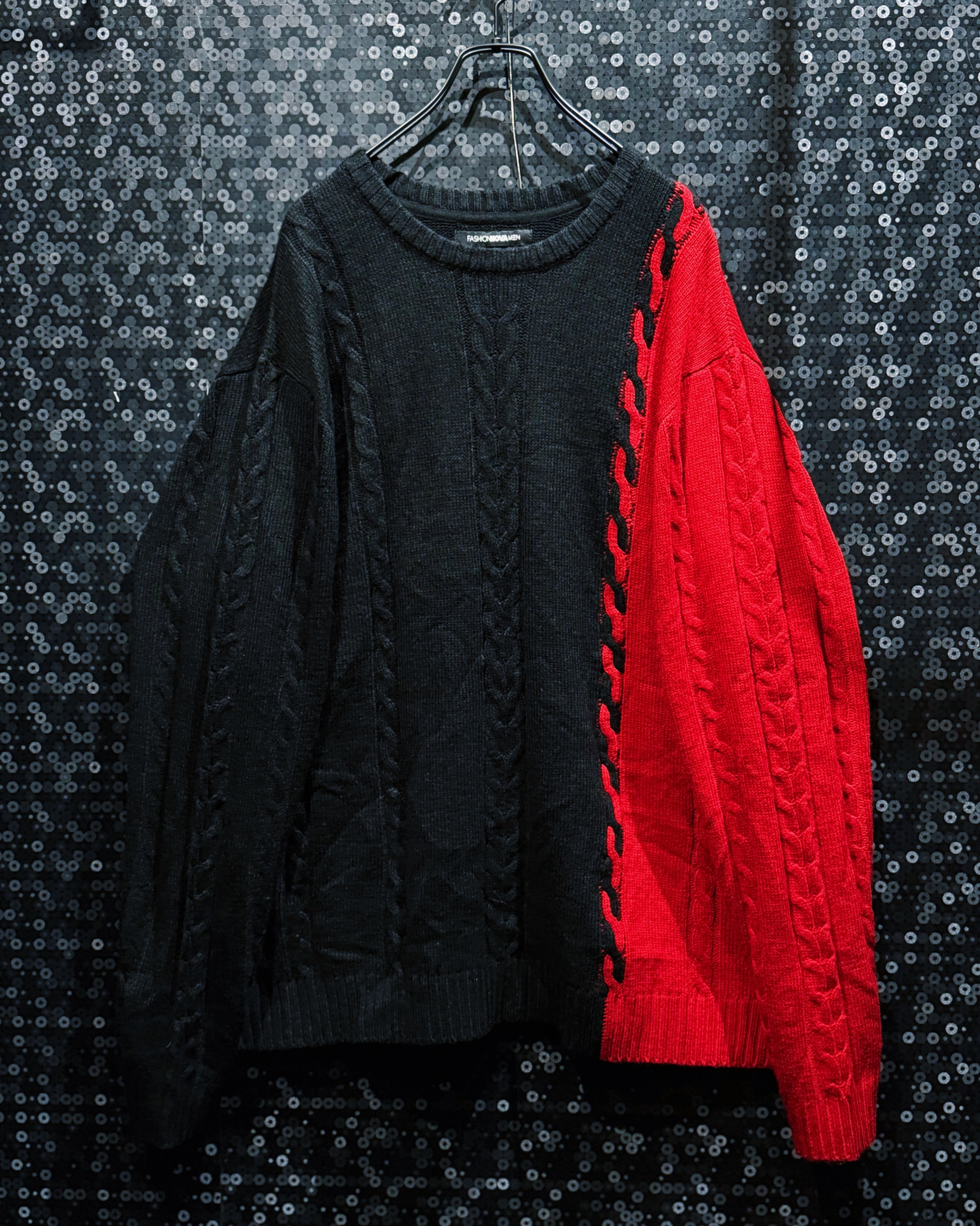 【ÆIEM】“FASHION NOVA MEN” vintage two-tone cable knit switching sweater