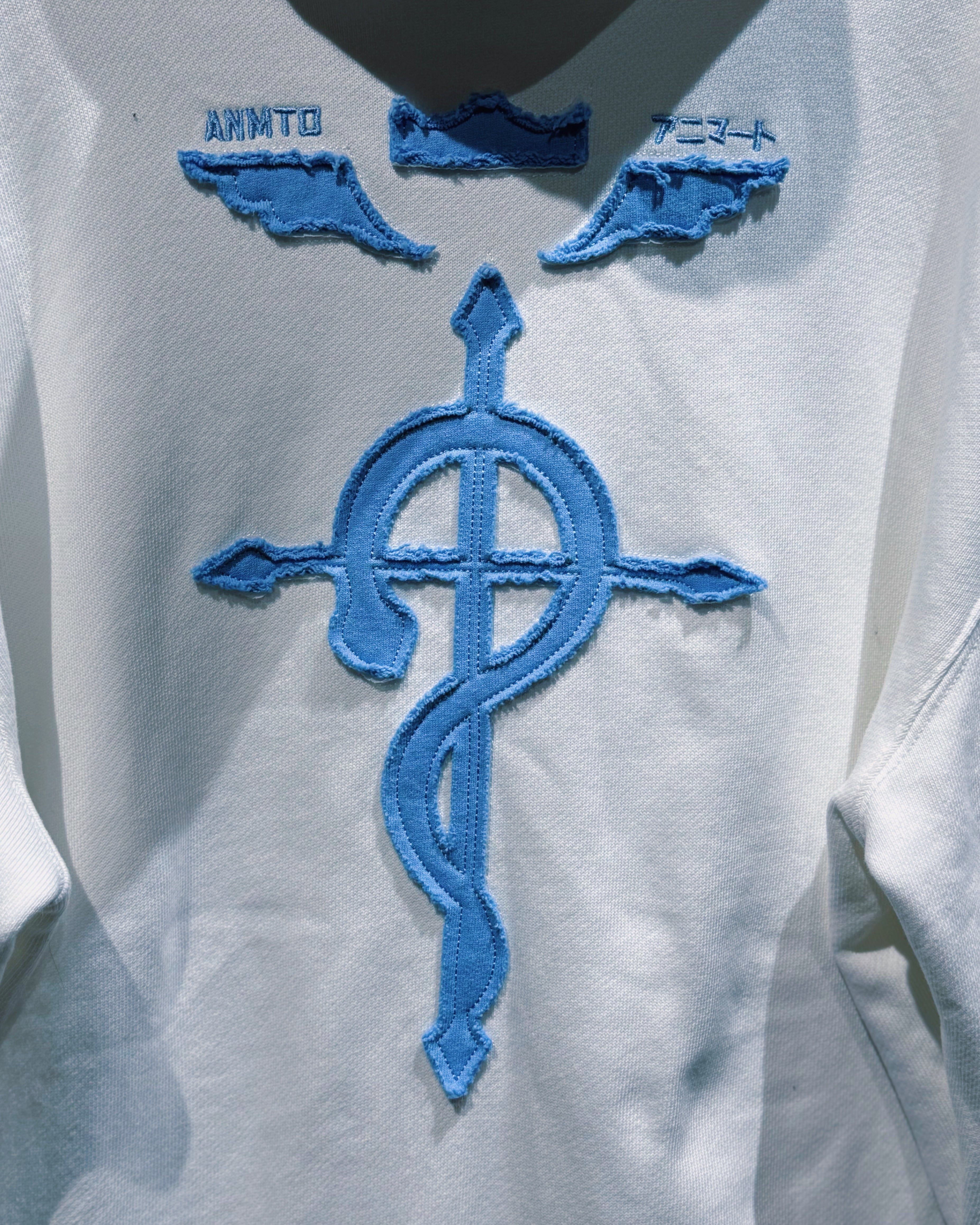 カナダ発のアニメカルチャーブランド〈ANIMATO / アニマート〉による、鋼の錬金術師ファン必見のスペシャルプルオーバーフーディー。フロント中央には、アルフォンスを中心に錬成陣を背景に構えた迫力ある刺繍グラフィックを配置。