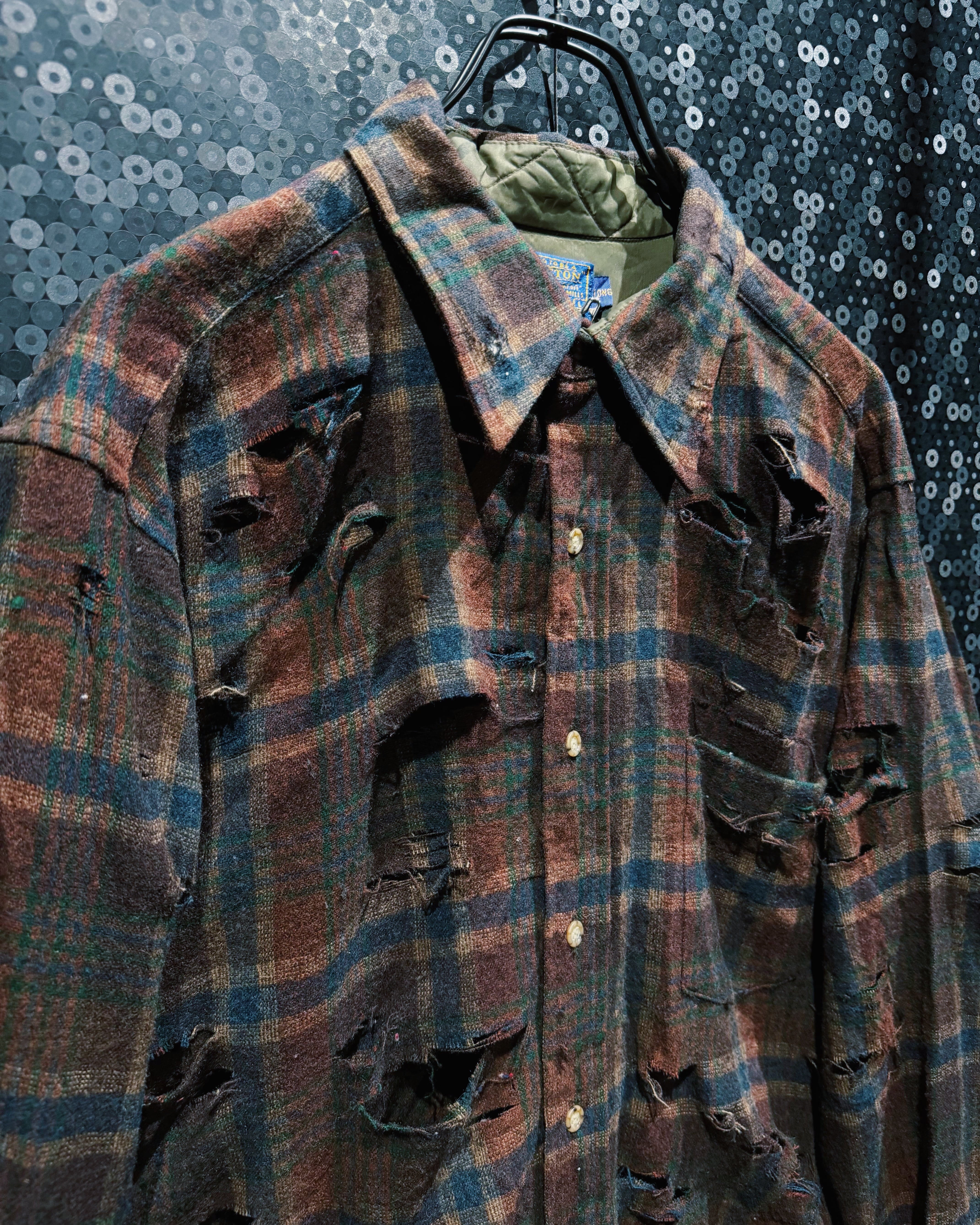 【ÆIEM】original “boro” re:make Pendleton Quilted Wool Check Destroyed Shirt