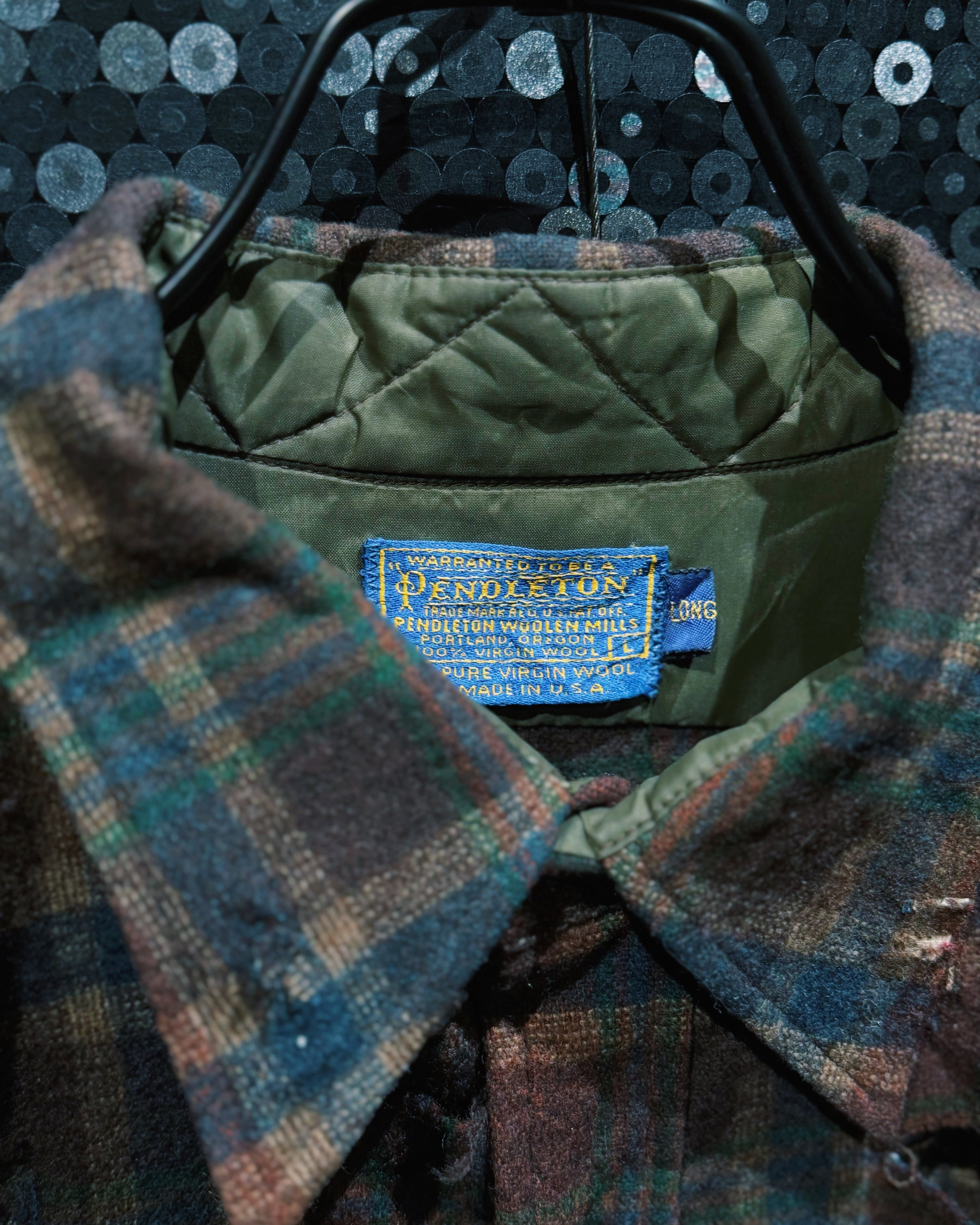 裏地にはオリーブのキルティングライナーを備え、ペンドルトンらしい温かみのある雰囲気とミリタリー由来の無骨さが同居。計算されたダメージと上質ウールの組み合わせが、唯一無二のグランジ感と深みを演出する。