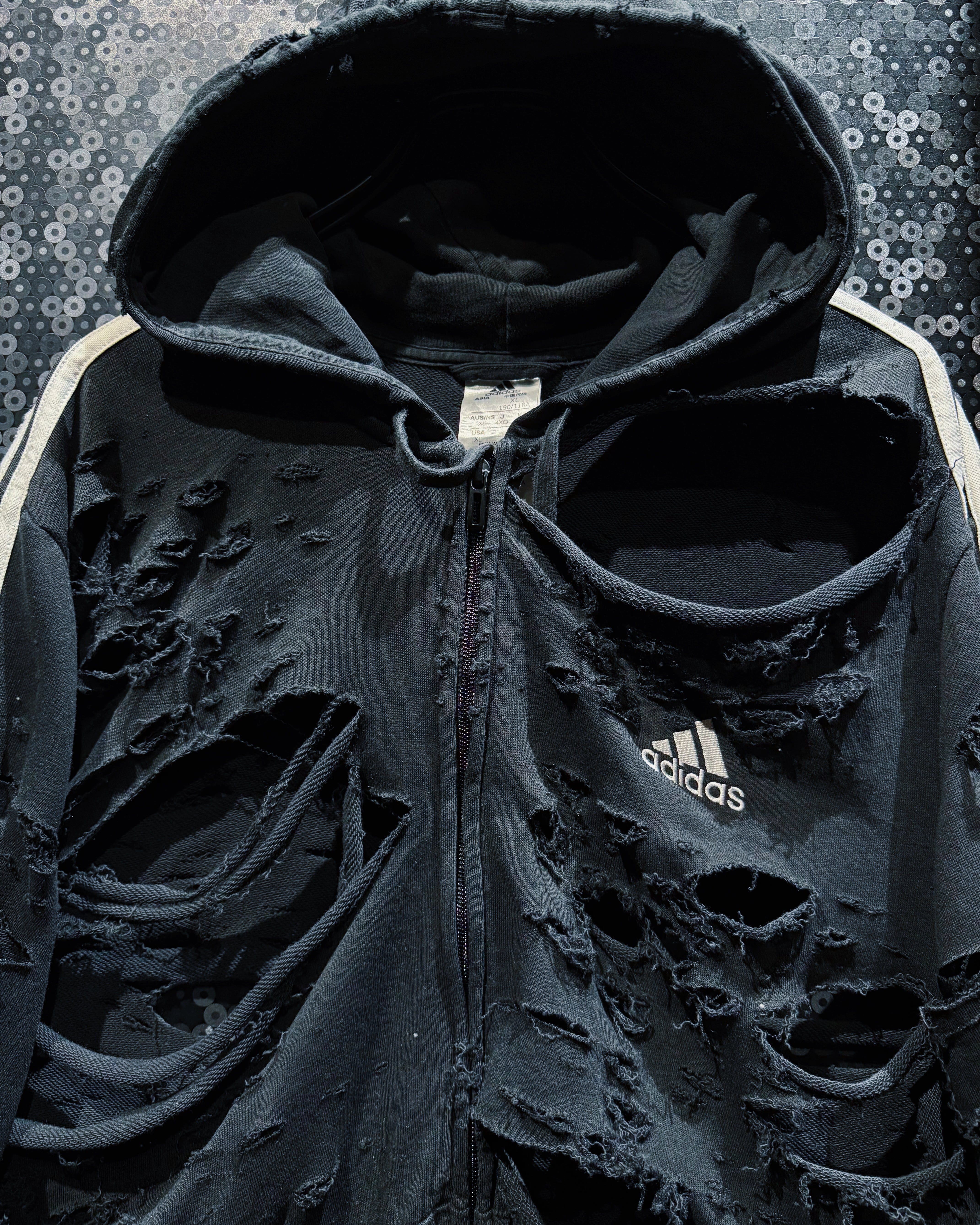 【ÆIEM】original"boro"remake"adidas vintage performance logo three stripe full zip hoodie
