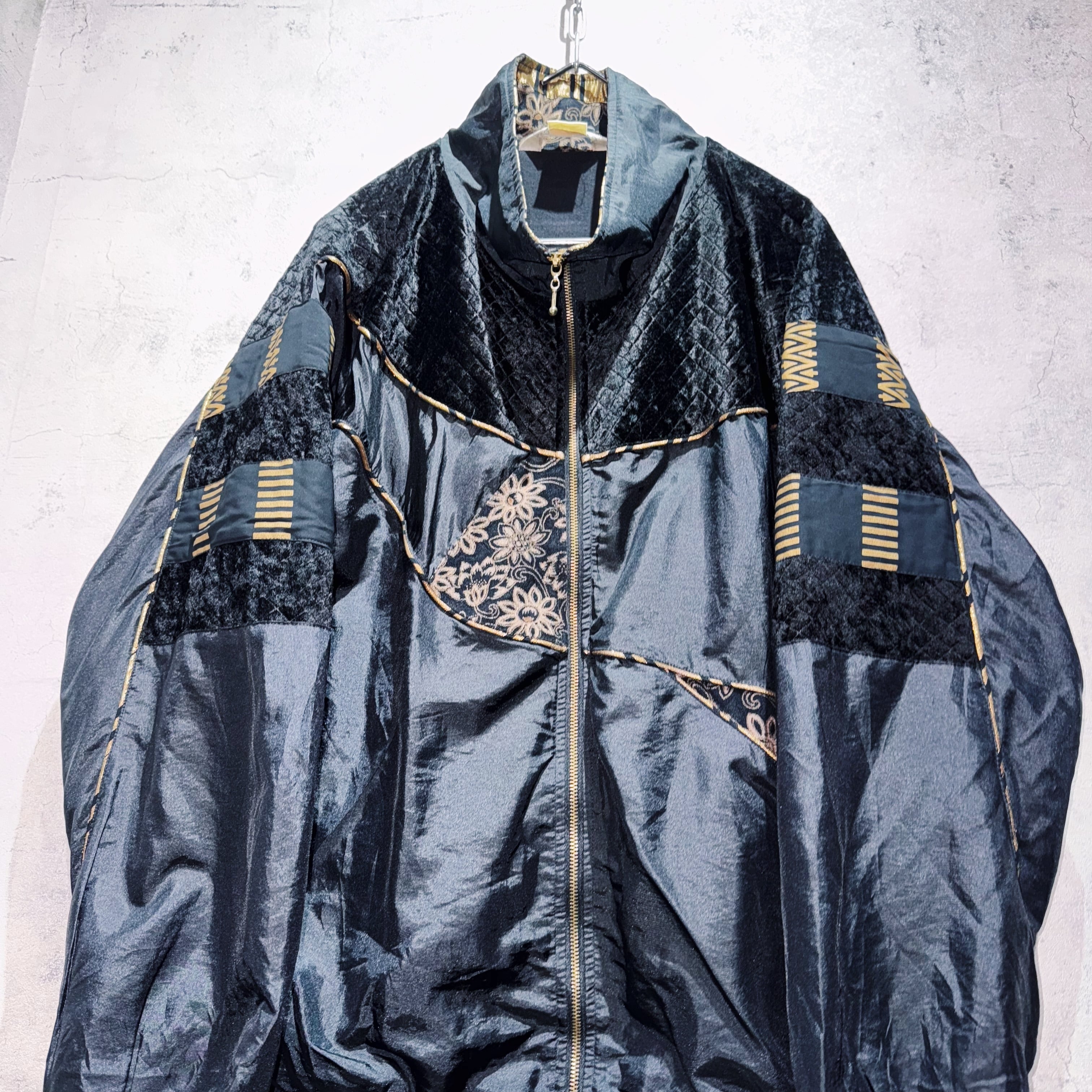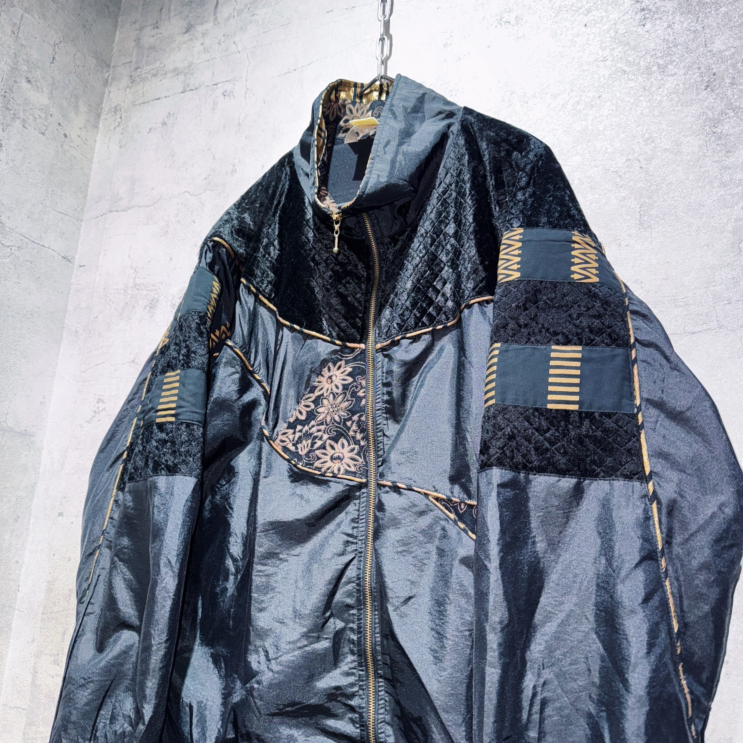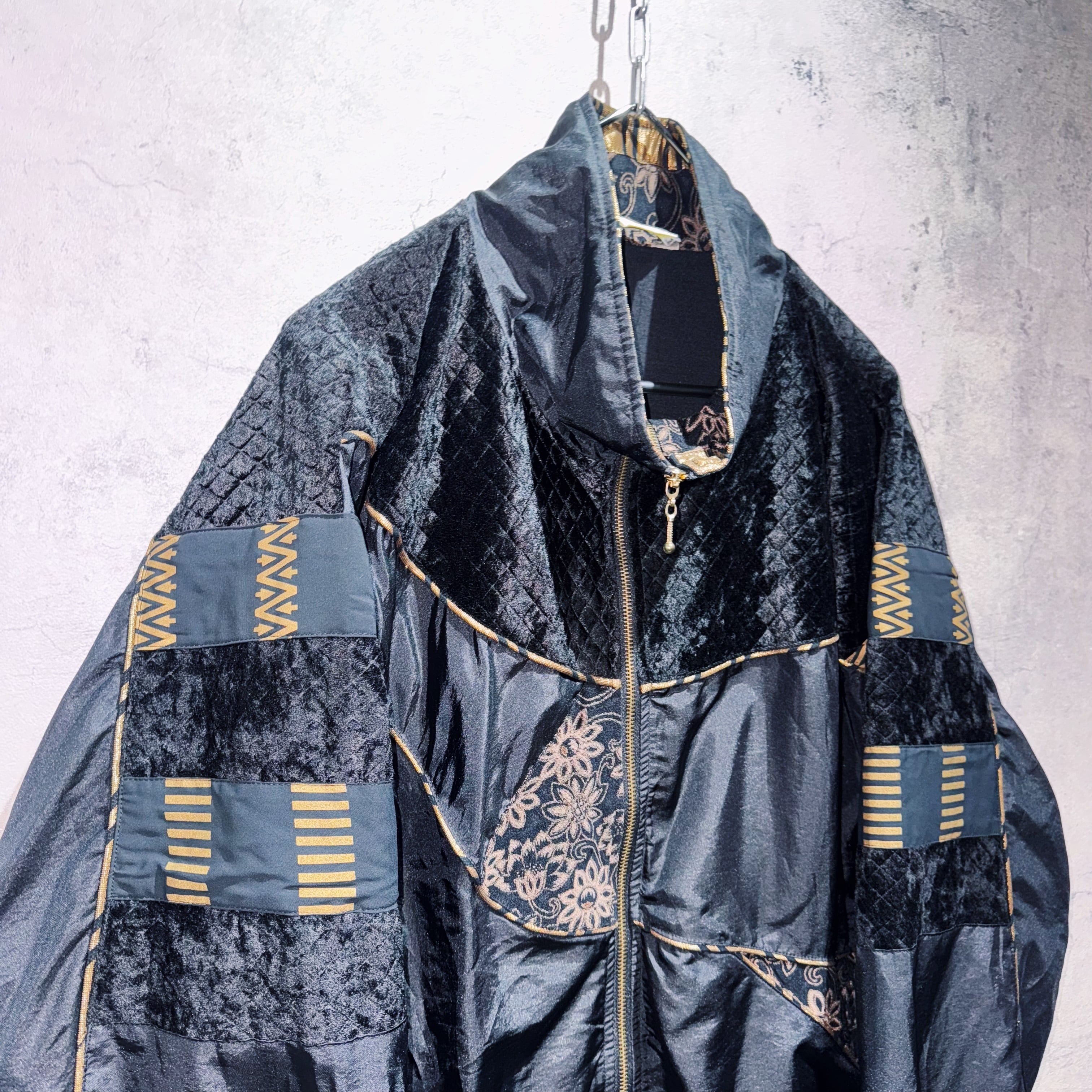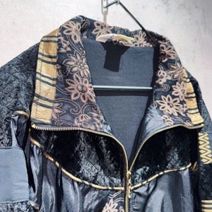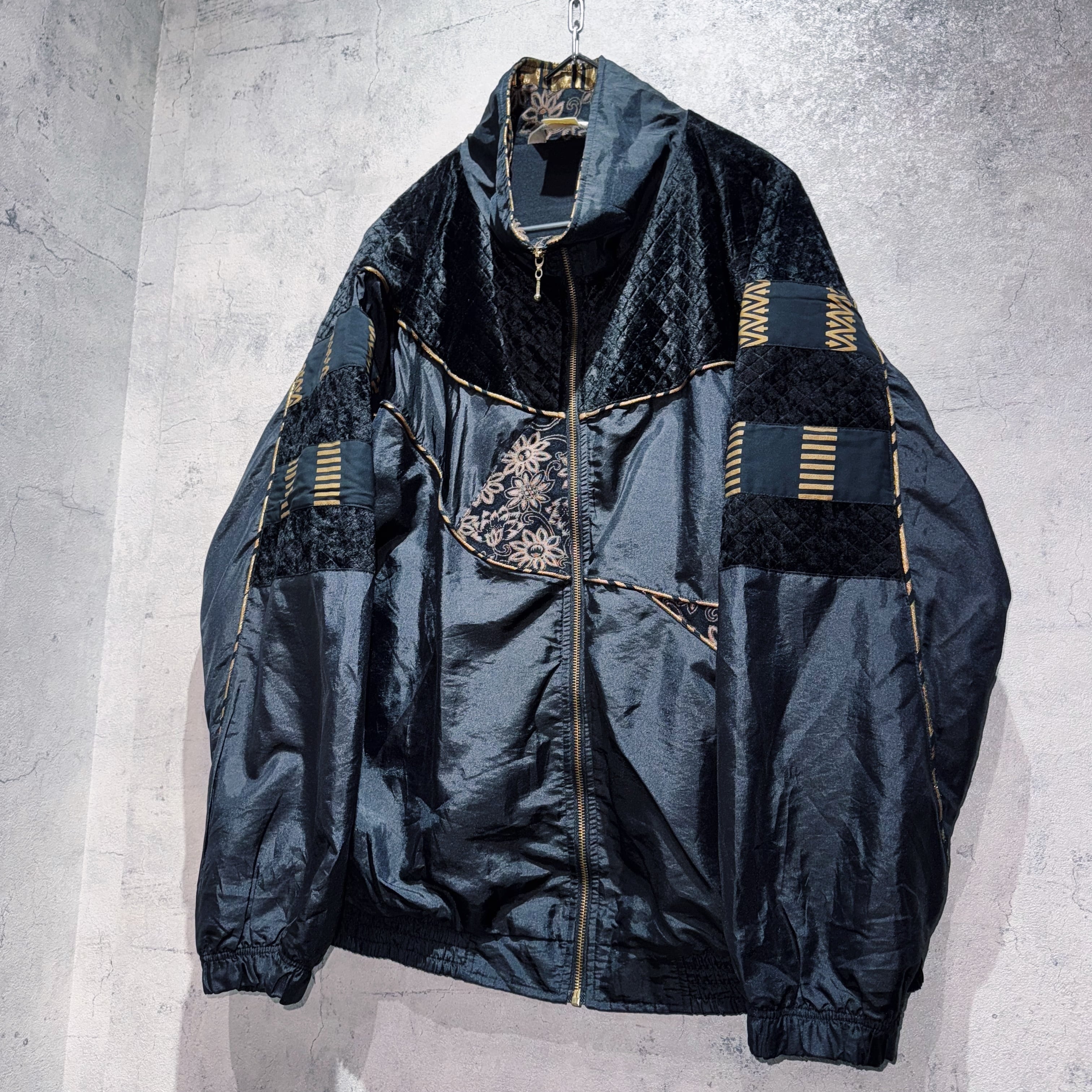 ヴィンテージボタニカルパターン×ベルベットマテリアルスイッチングジャケット