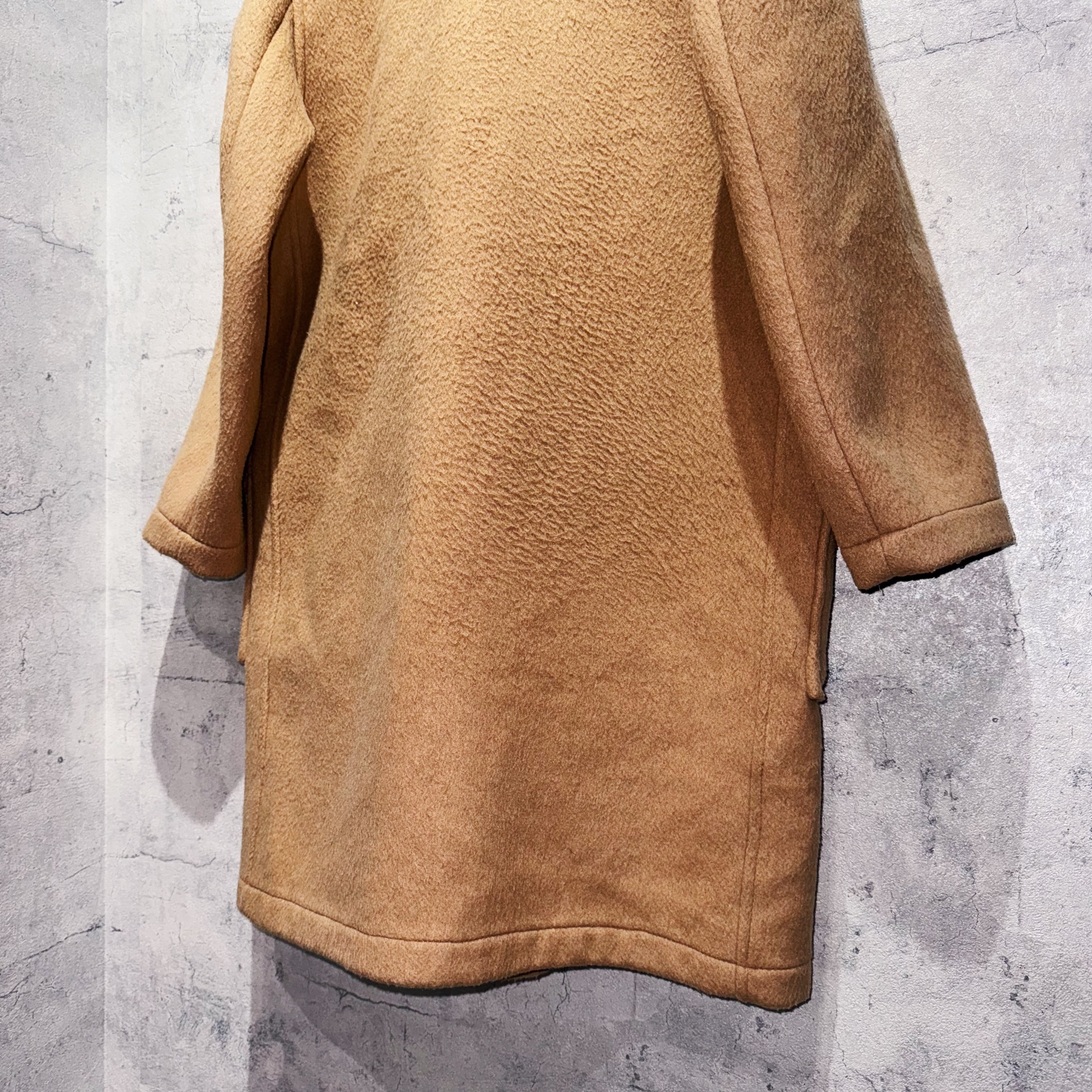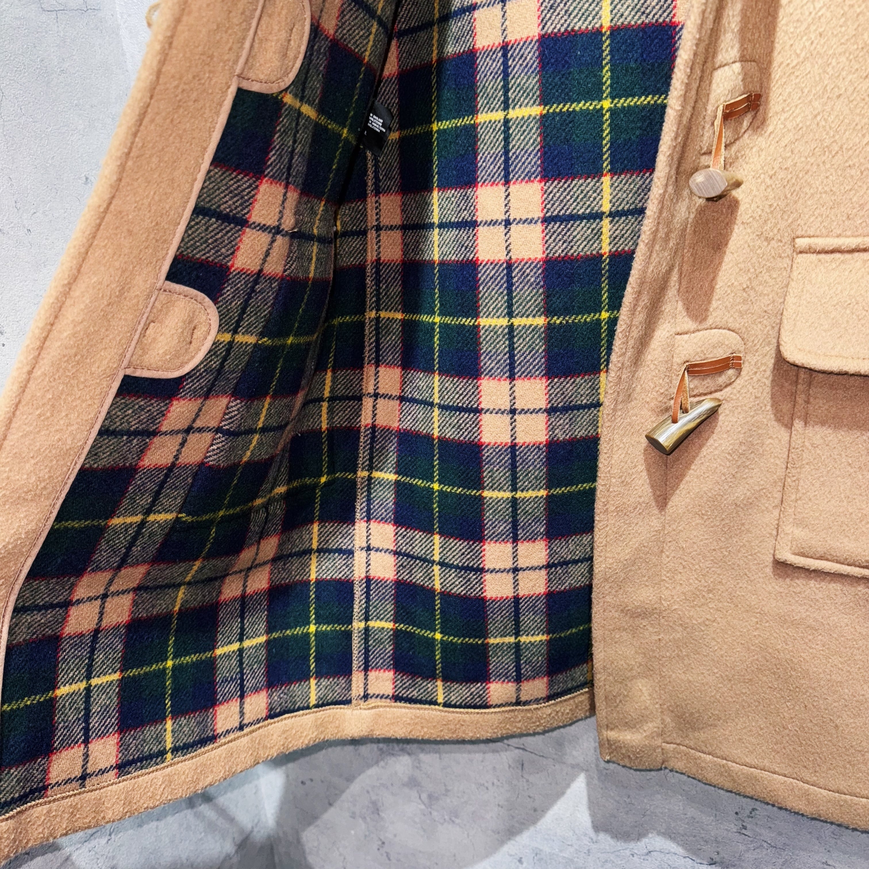 バーバリーといえばはトレンチコートでもありますが、もう一つのシグネチャーであるダッフルコートをご用意。非常に美しいクラシックベージュを身に纏い品格のある佇まい。