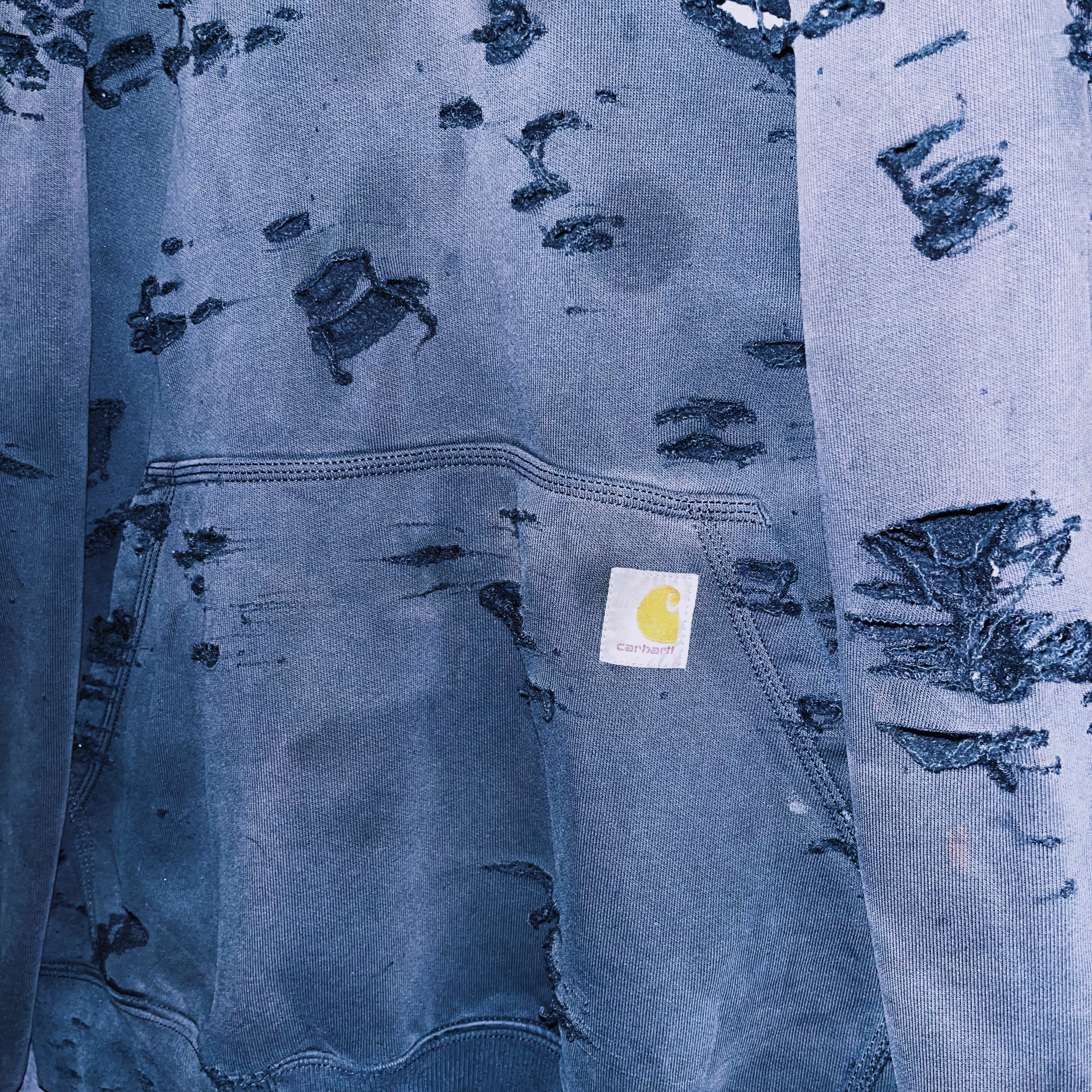 ヴィンテージ“Carhartt”フェードデザインボロカスタムハーフジップスウェットフーディ