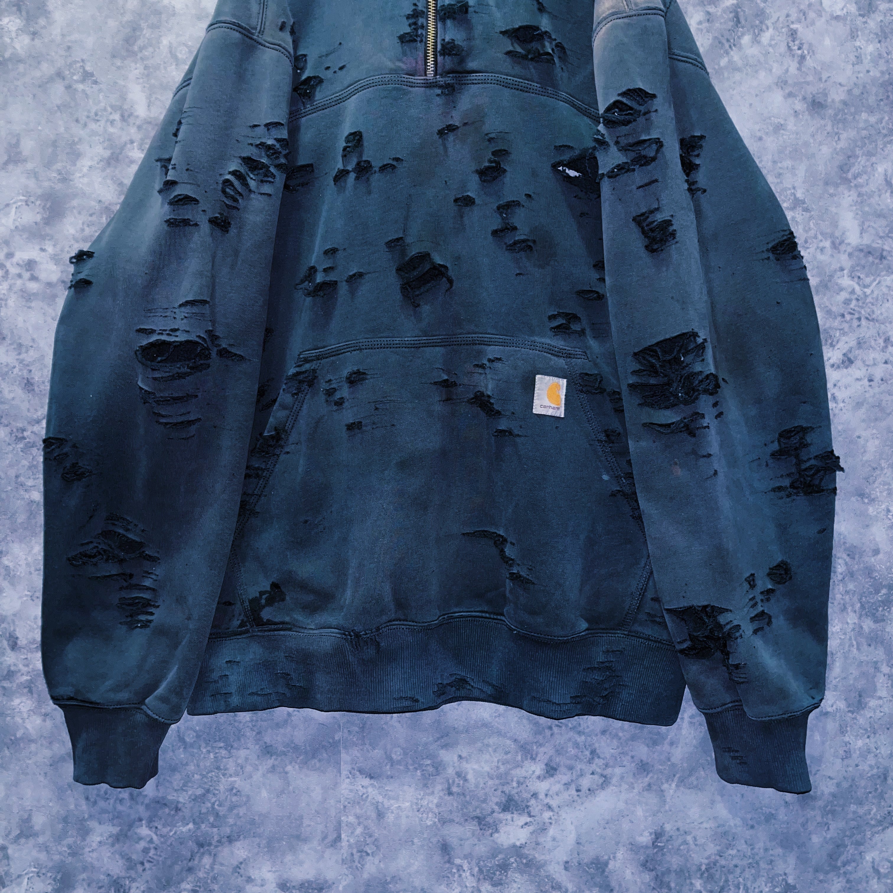 vintage “Carhartt” fade design boro custom half zip sweat hoodie