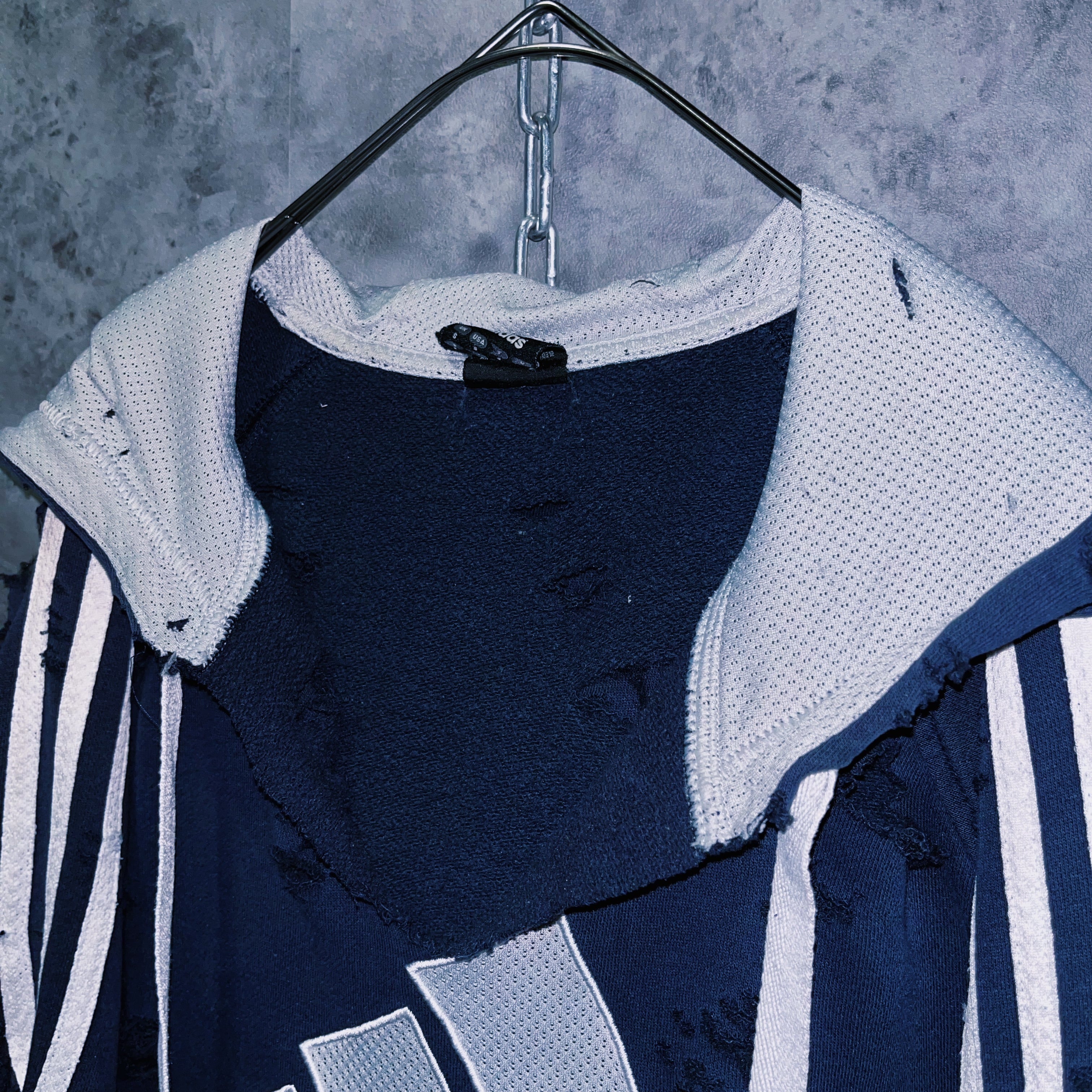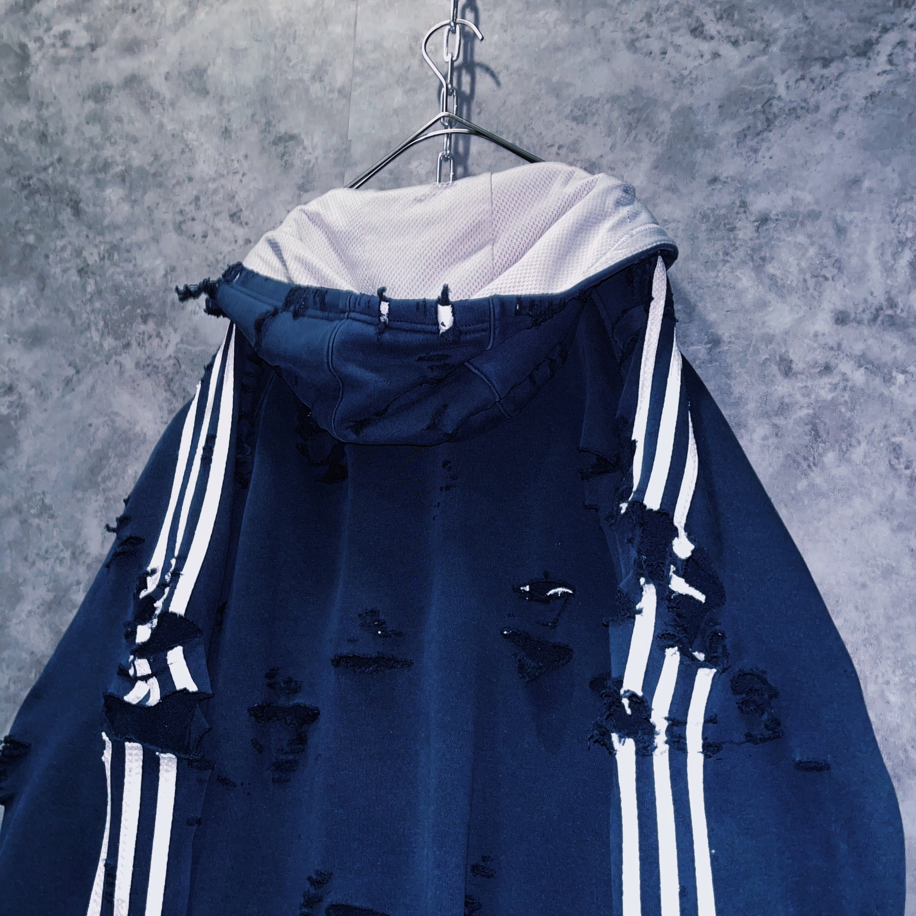 ヴィンテージ“adidas”スリーストライプデザインボロカスタムスウェットフーディ