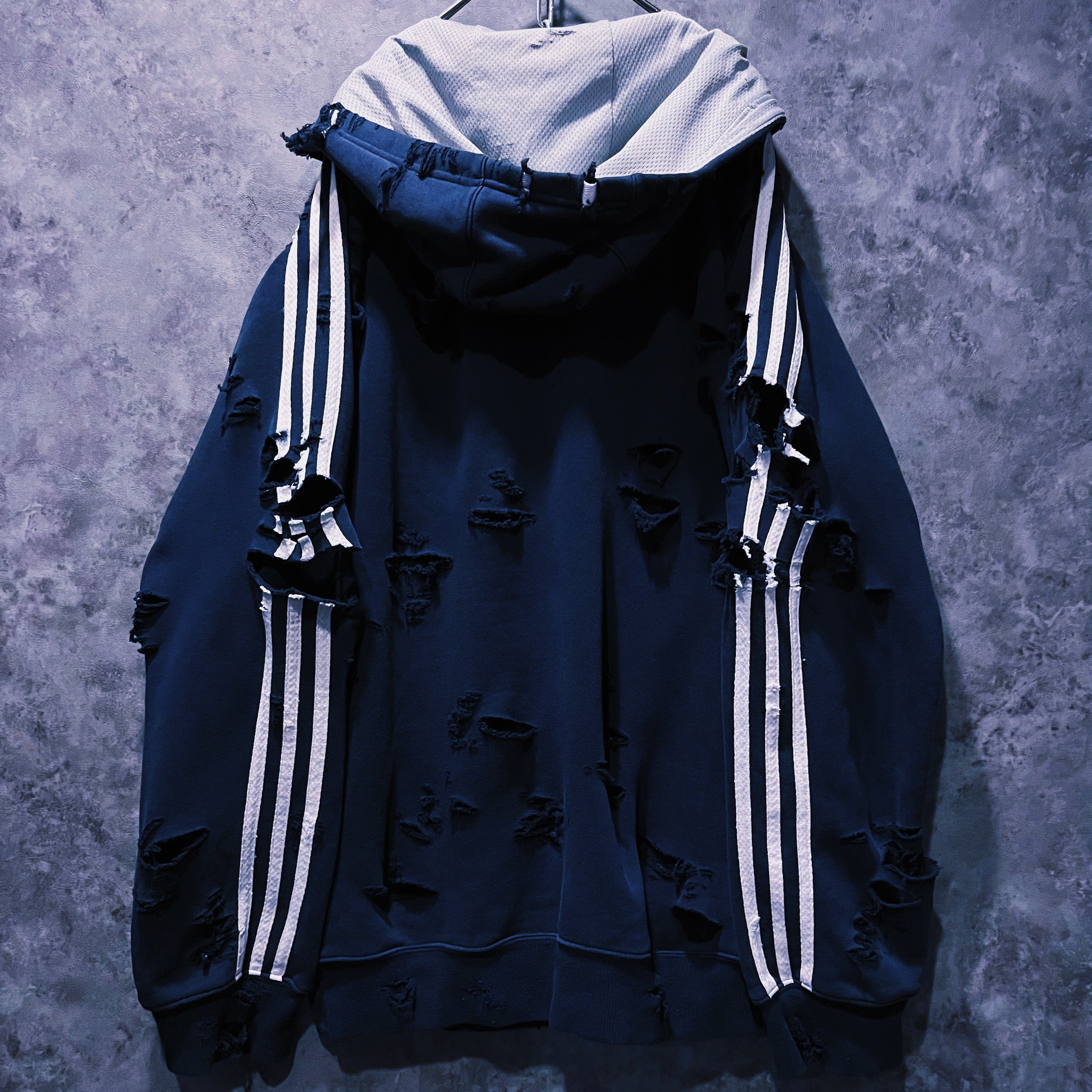 【doppio】vintage “adidas” three stripe design boro custom sweat hoodie