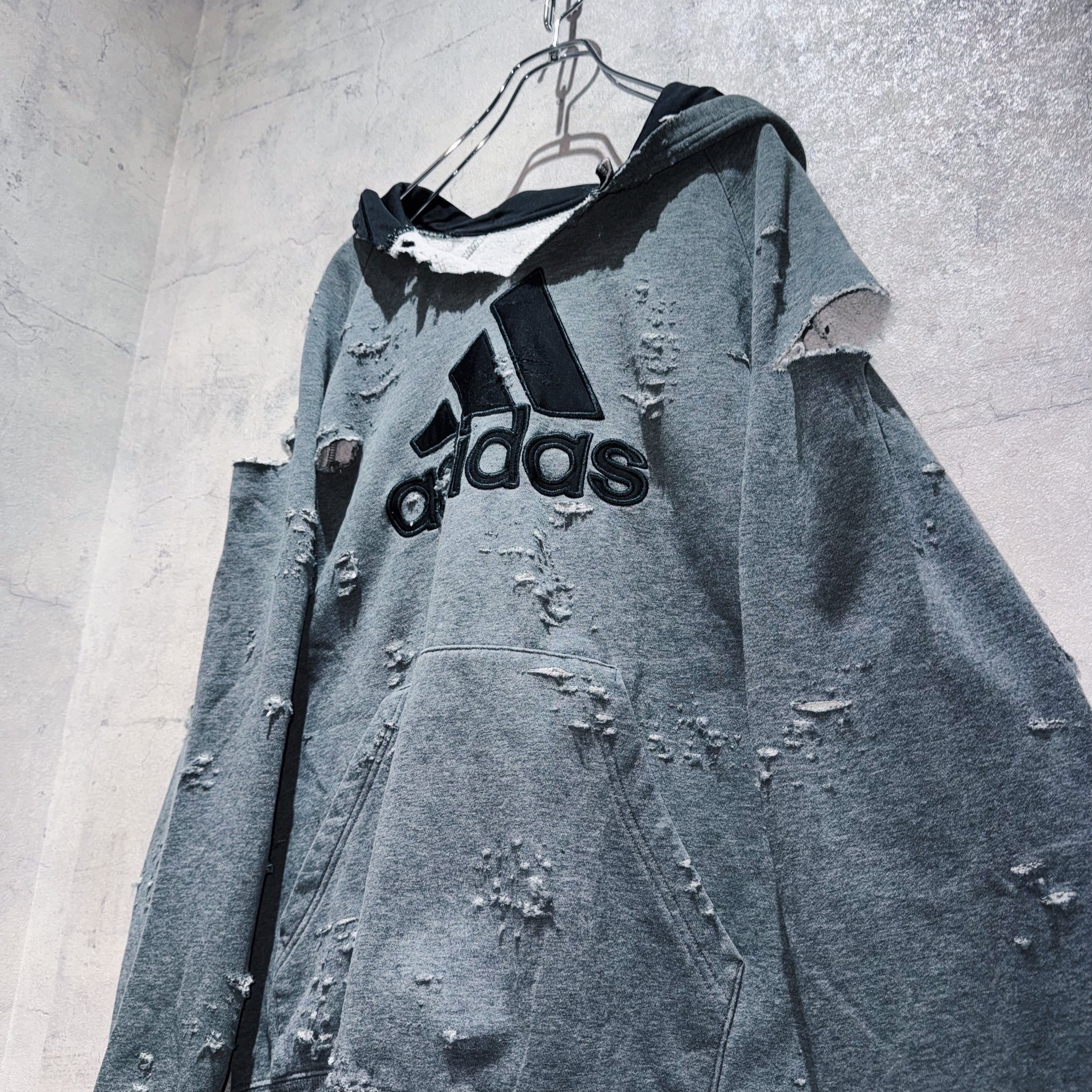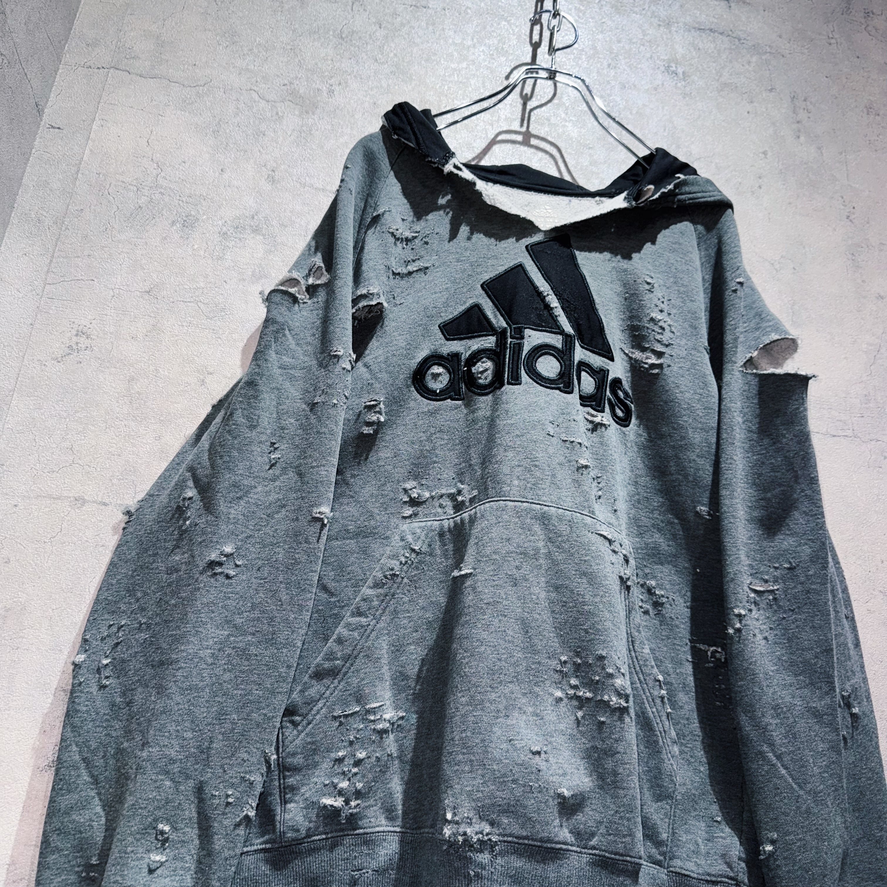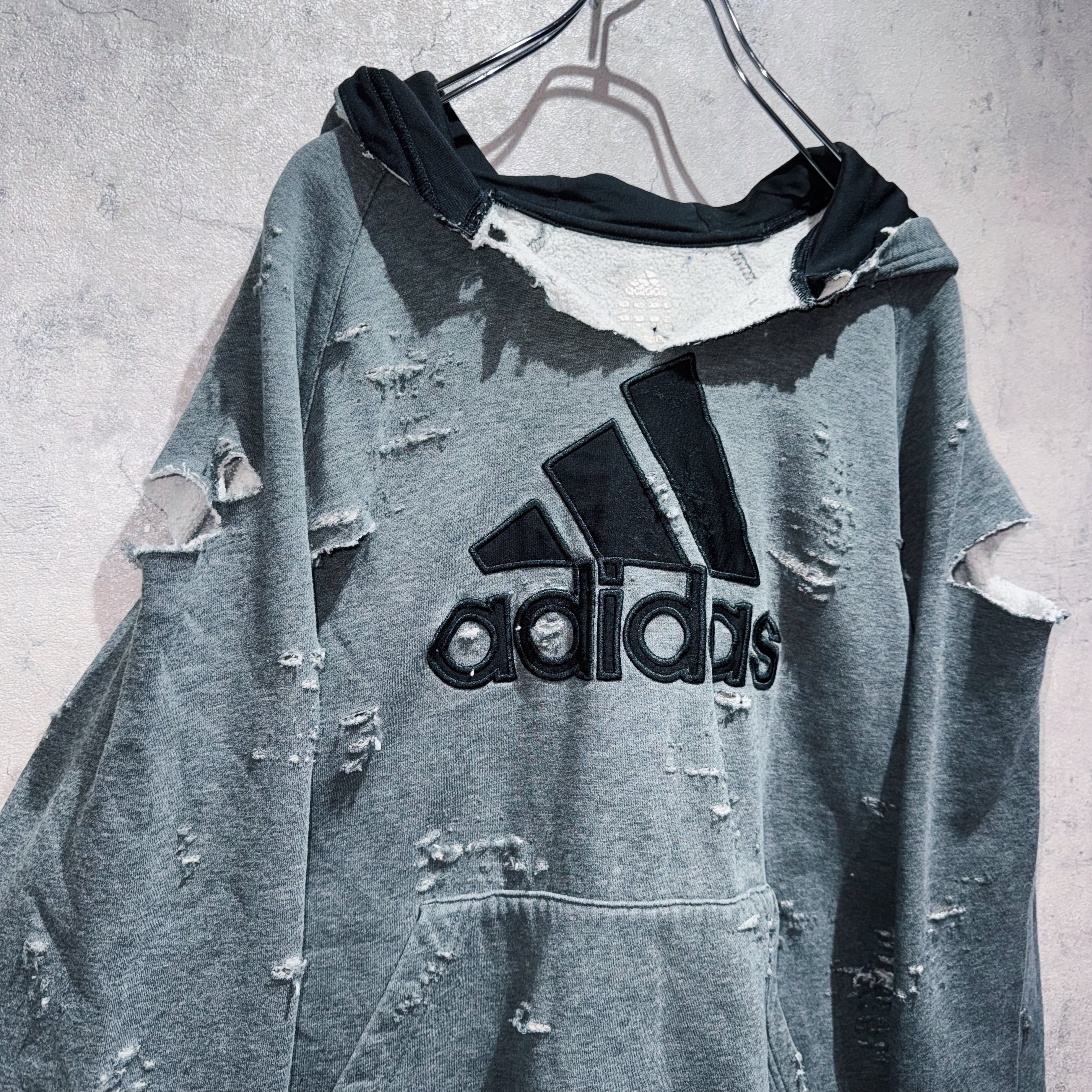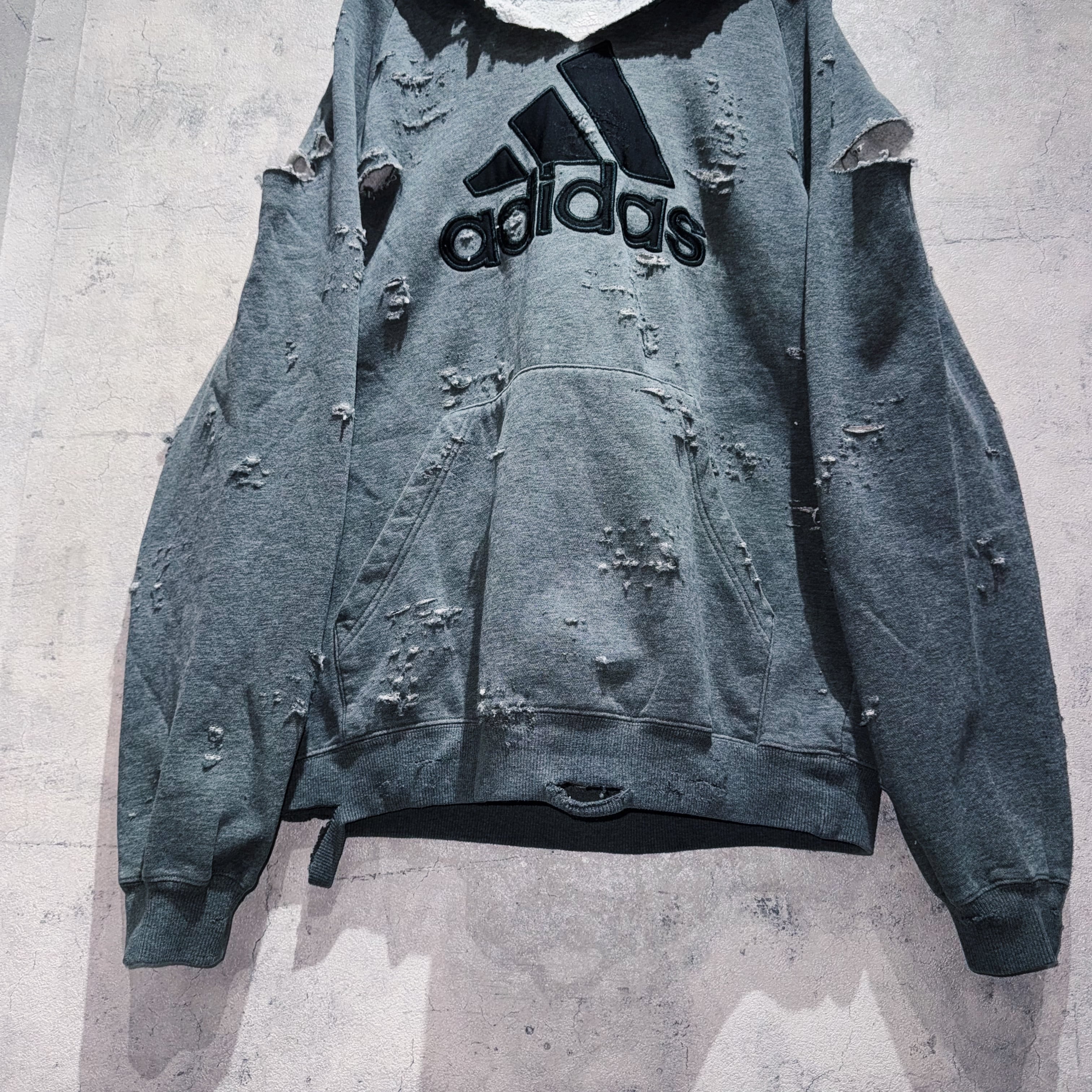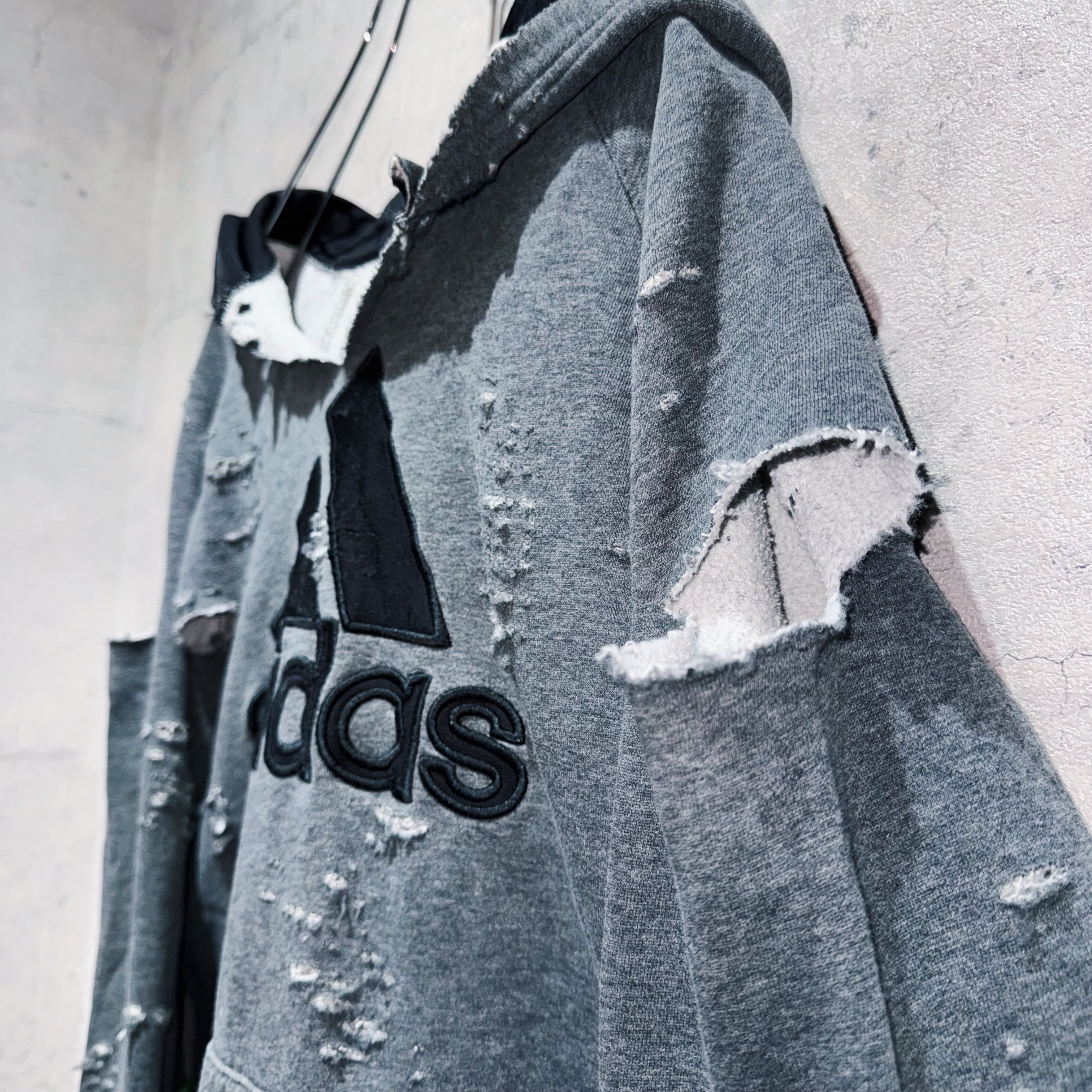 "ADIDAS"のボディを贅沢に採用したボロスウェット。デザイナーズブランドでもダメージアイテムが近年増えてきていますが、それに引けを取らない精密なダメージ技術は間違いなく一流。
