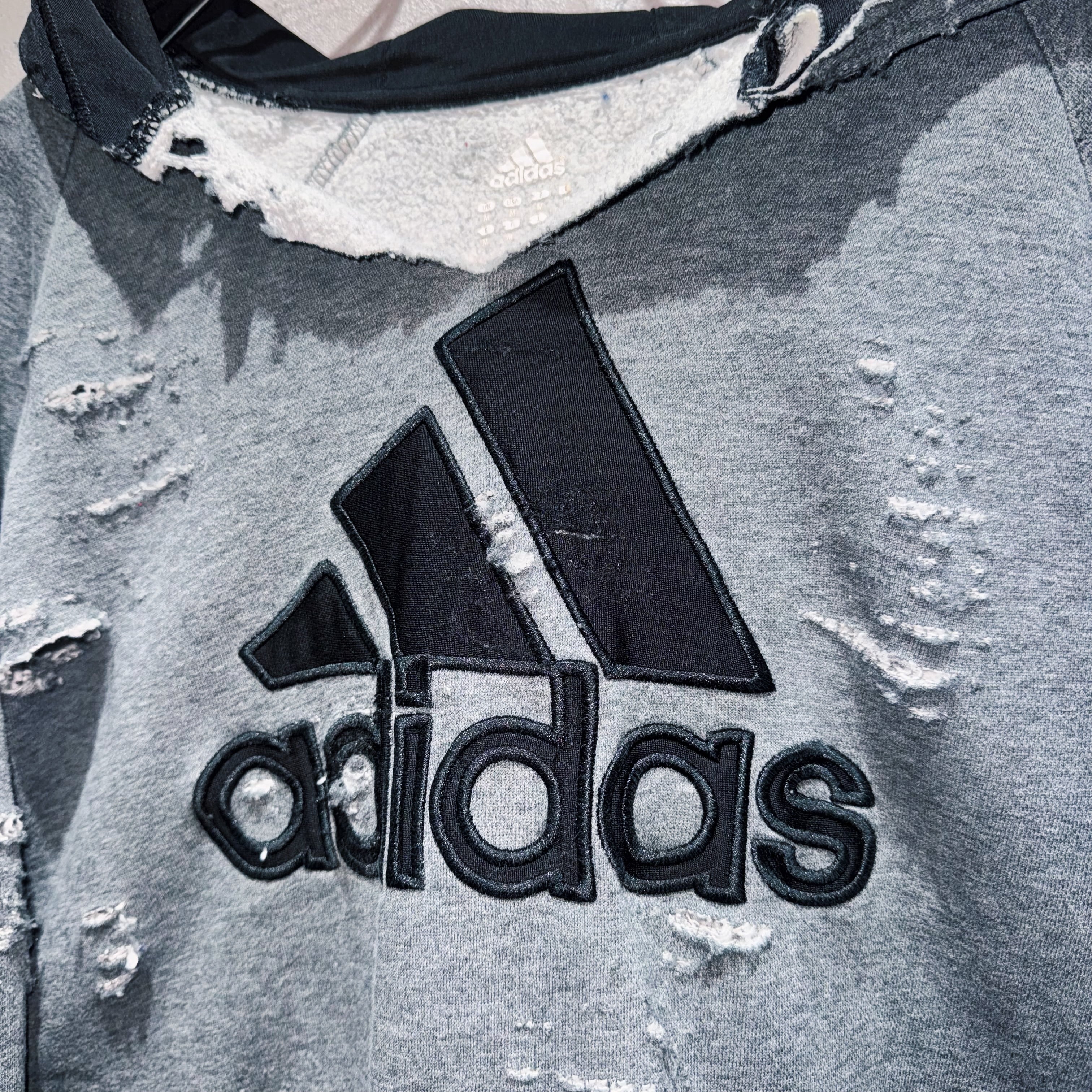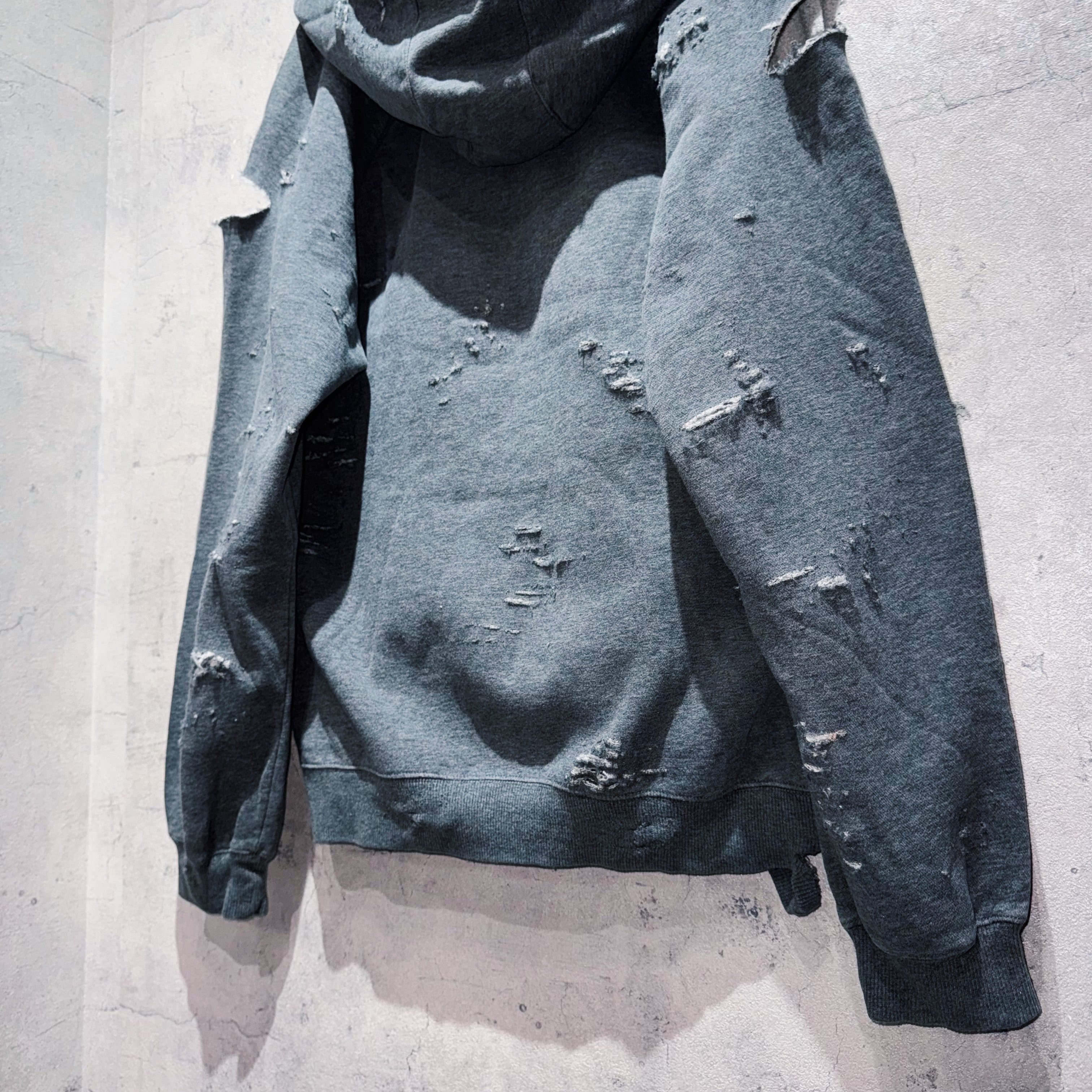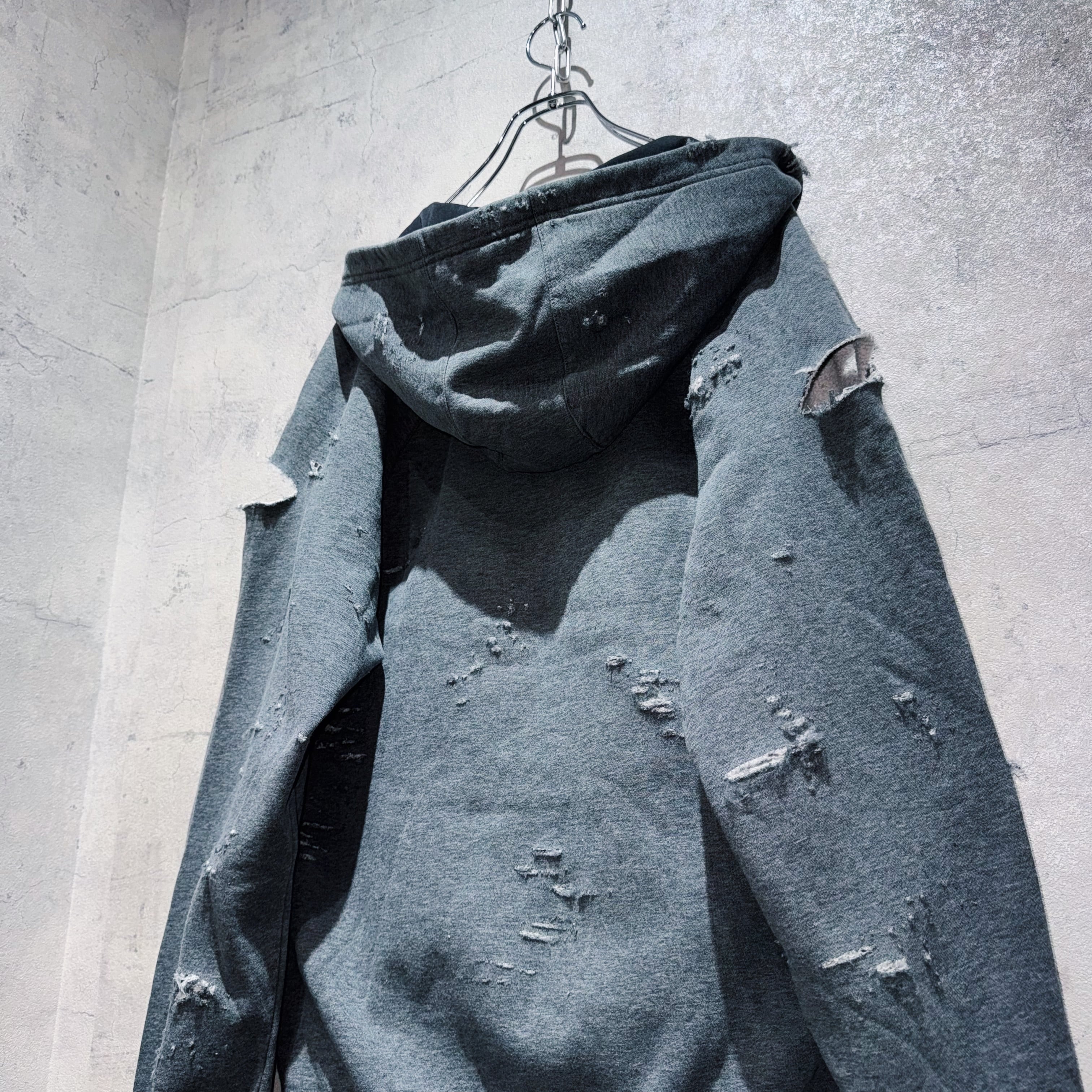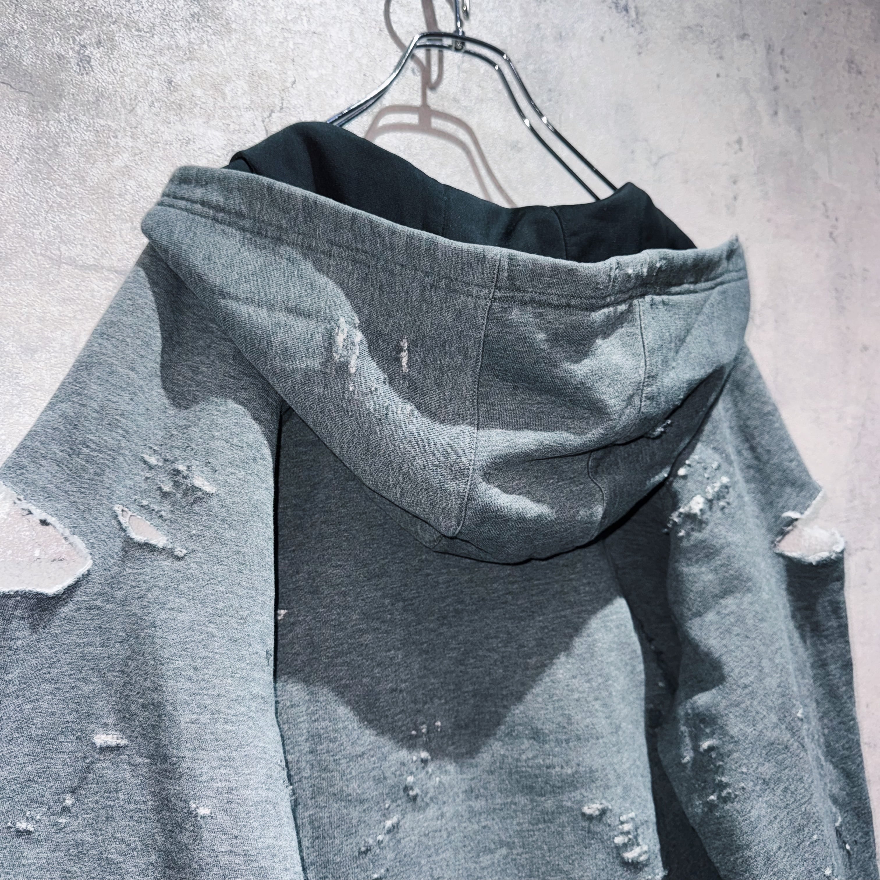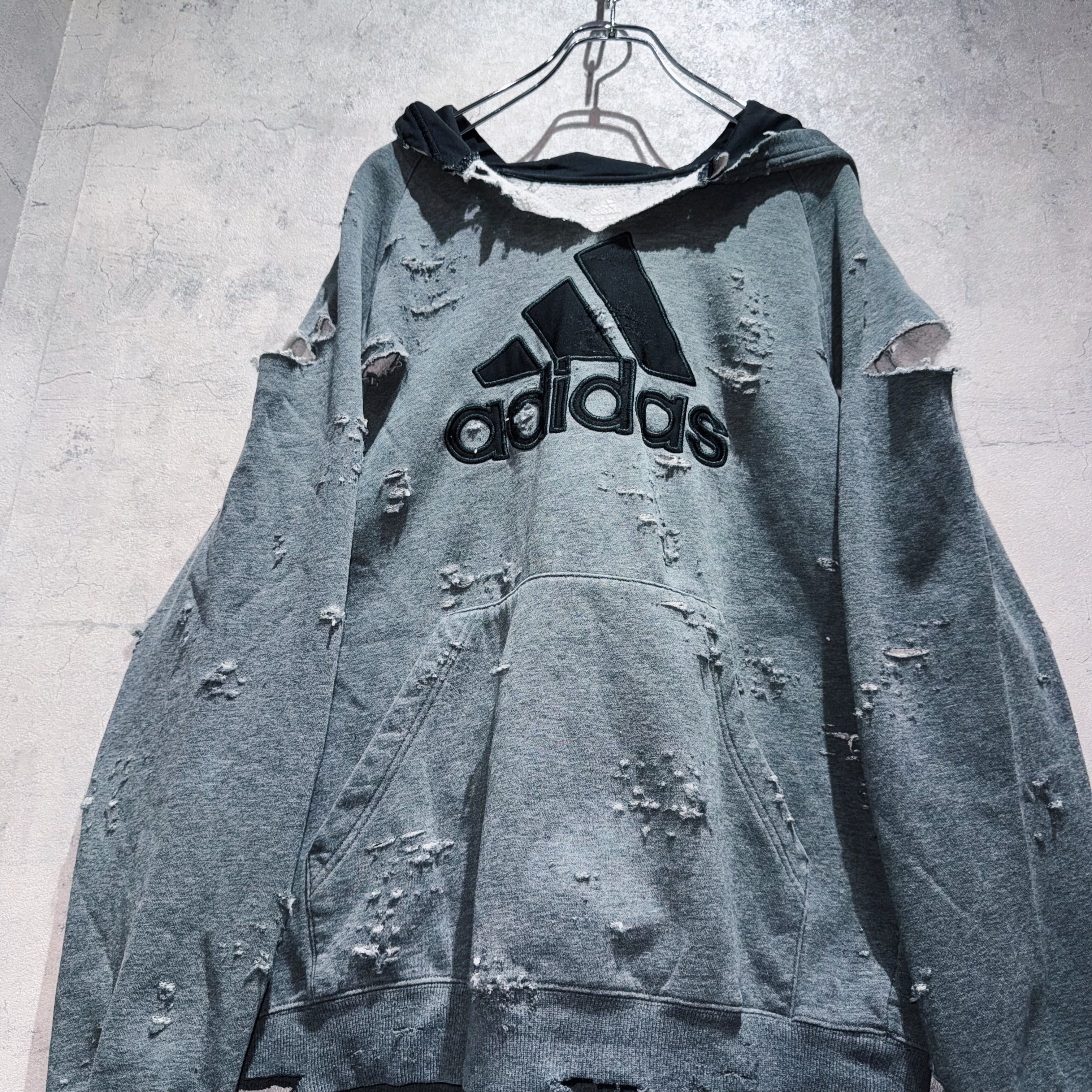 "ADIDAS"のボディを贅沢に採用したボロスウェット。デザイナーズブランドでもダメージアイテムが近年増えてきていますが、それに引けを取らない精密なダメージ技術は間違いなく一流。