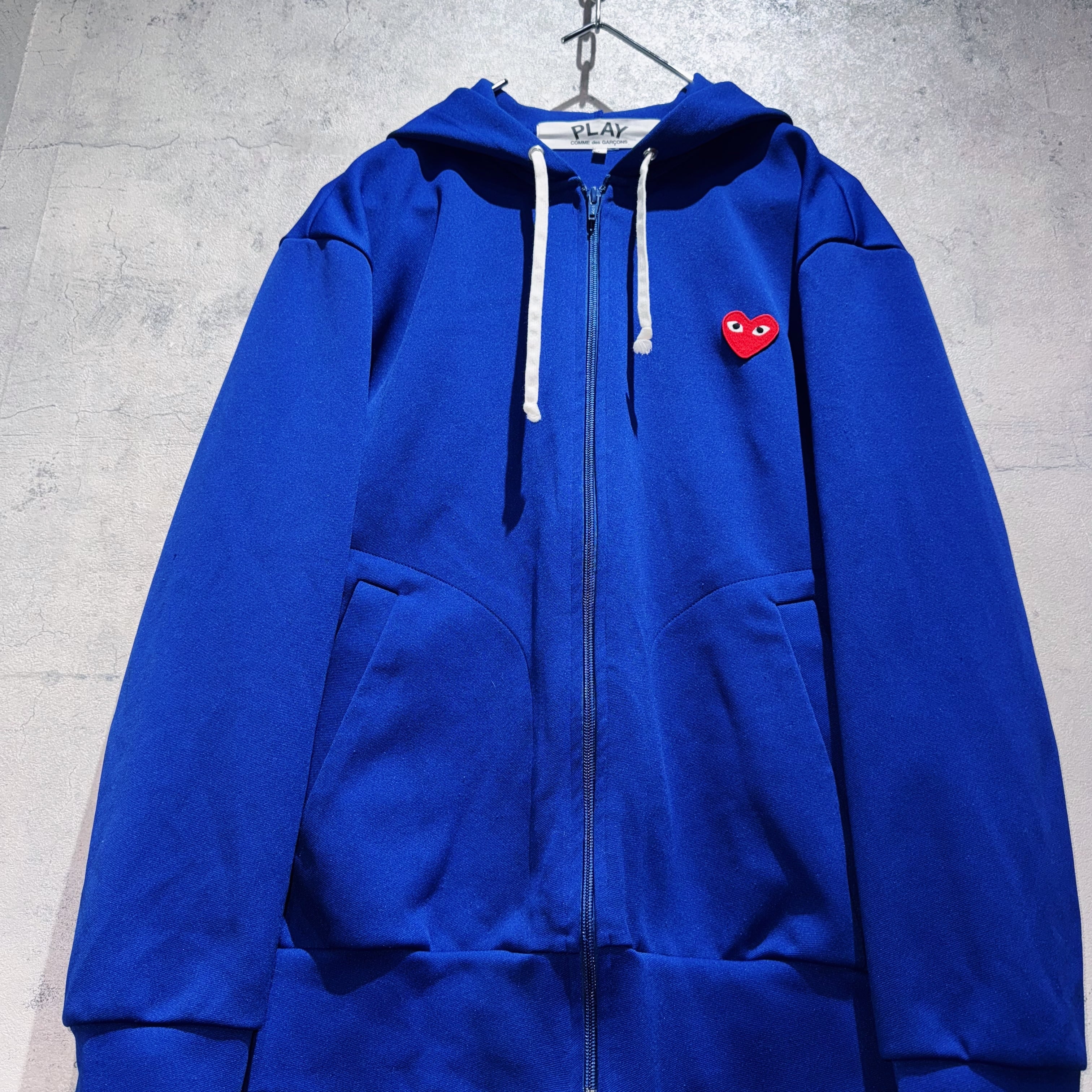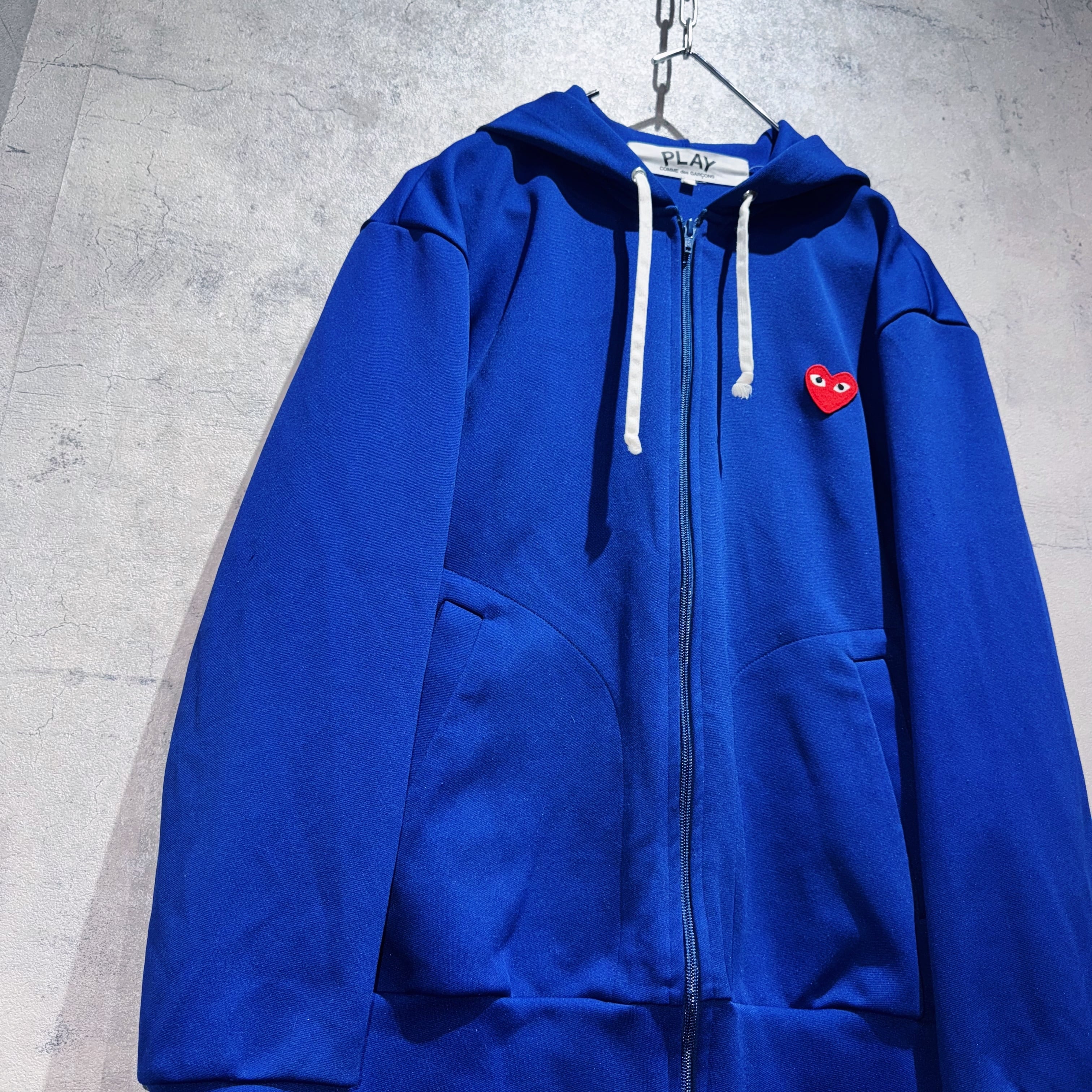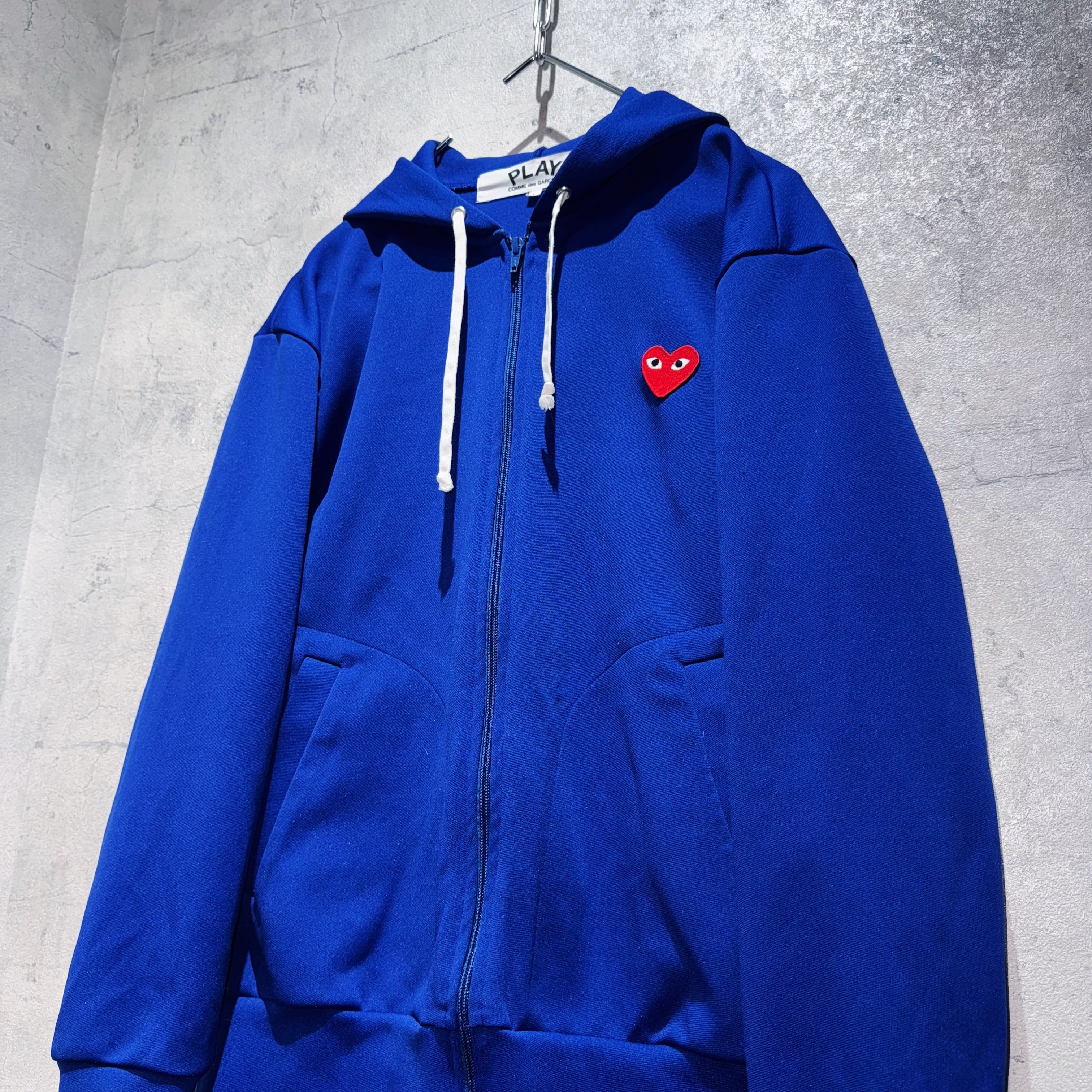 "プレイコムデギャルソン"ハートロゴワッペンエンブロイダリーデザインジップアップフーディー