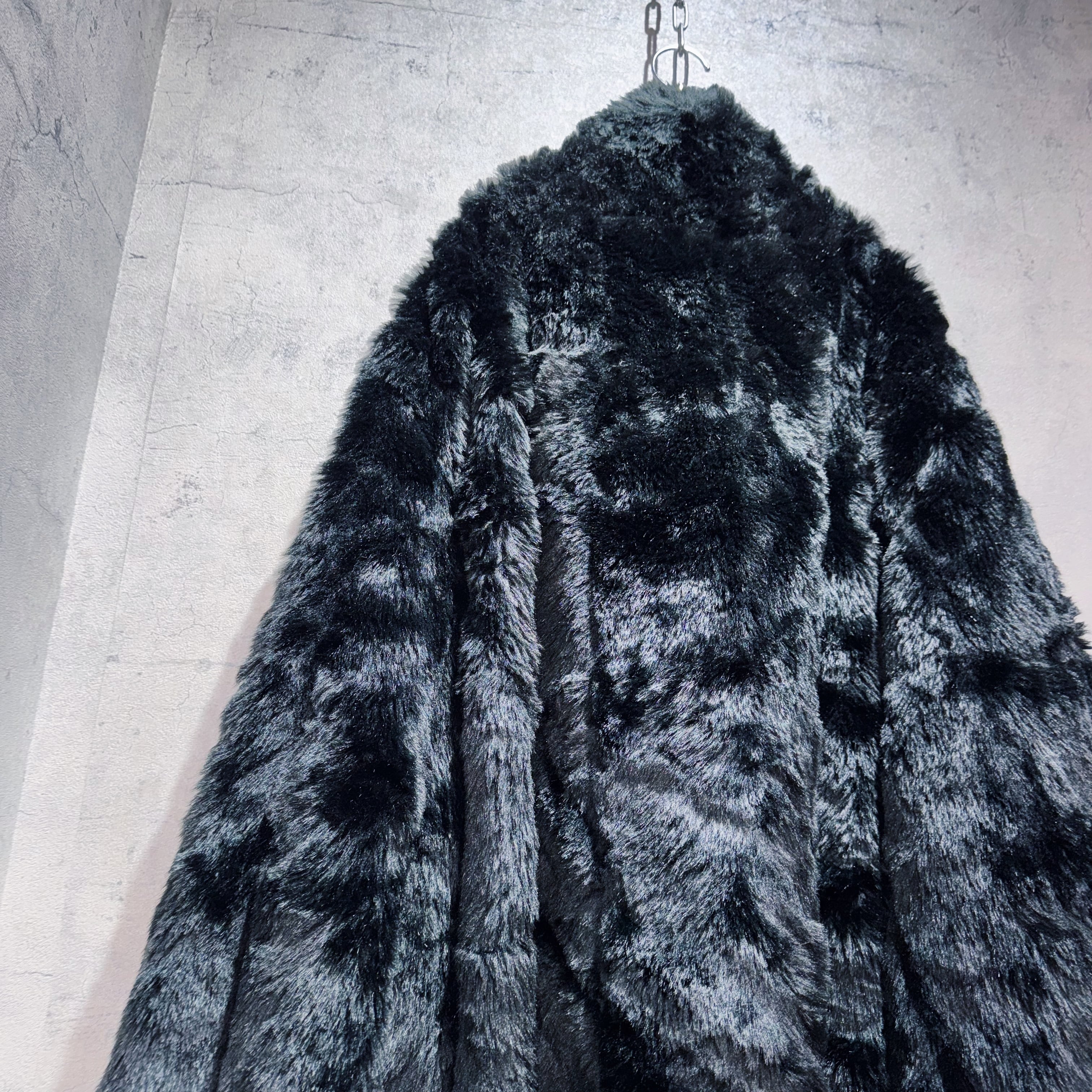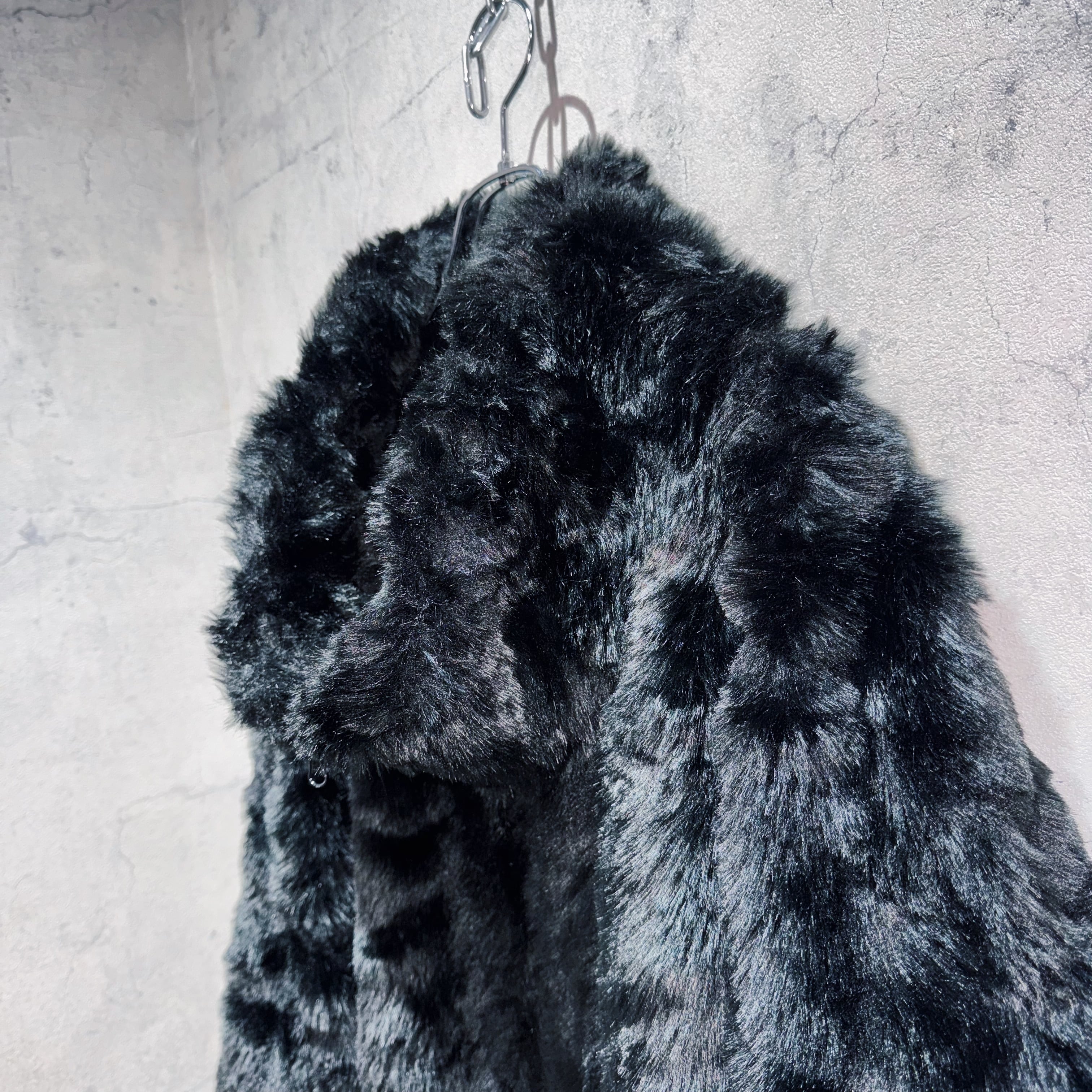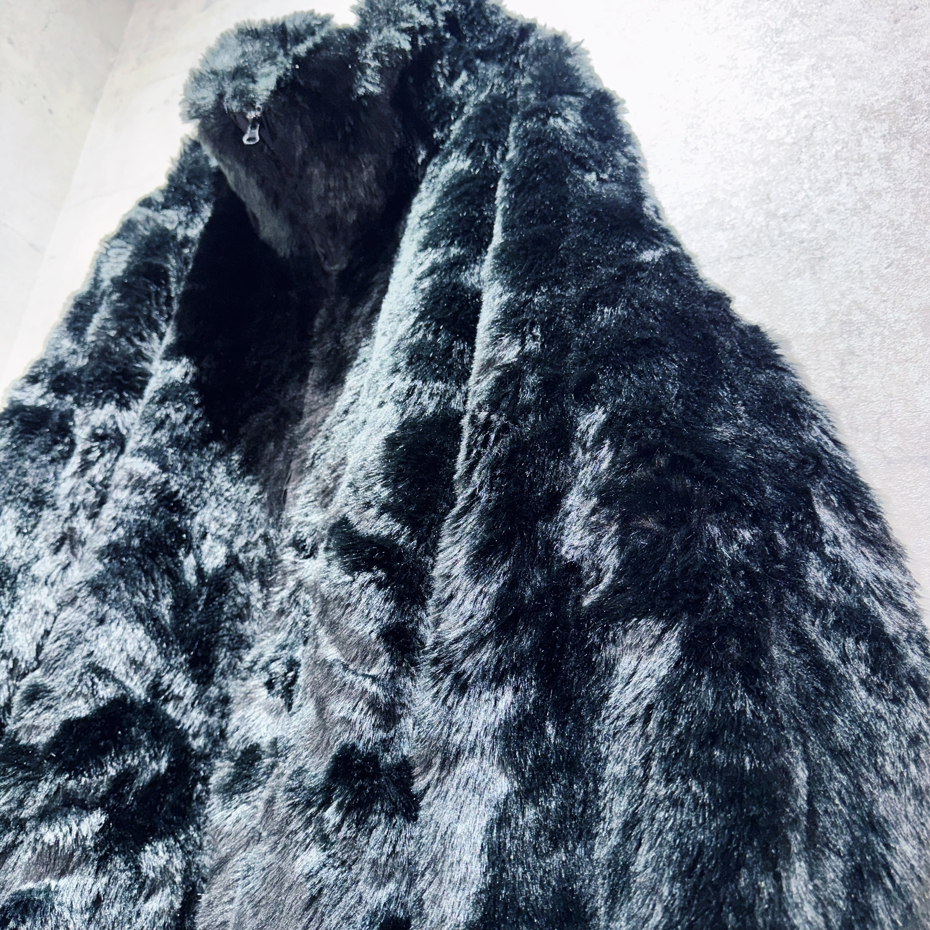 ヴィンテージヘビーブラックカラーフェイクファーコート